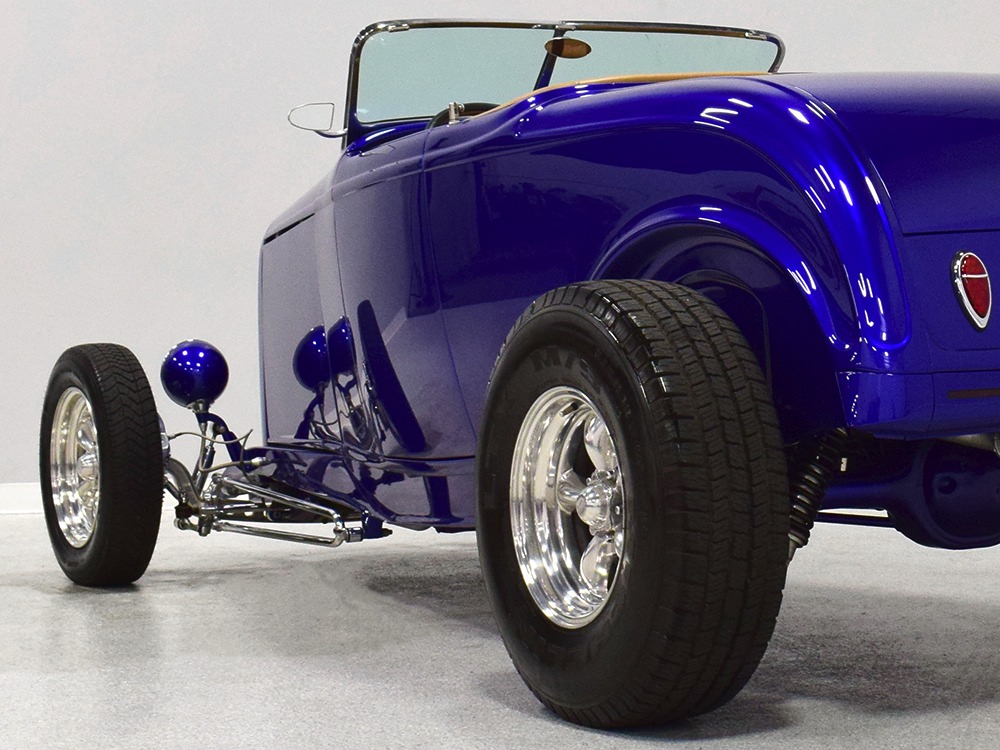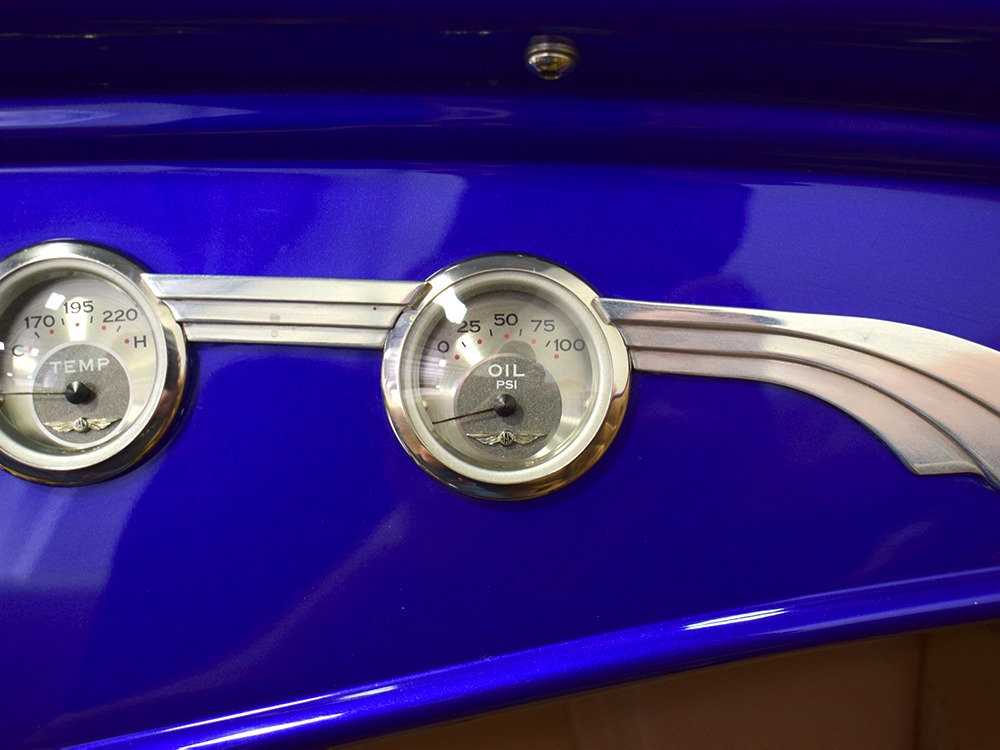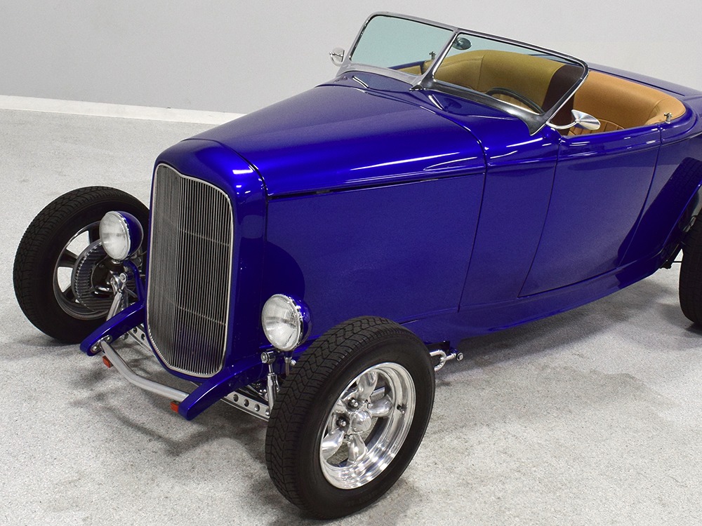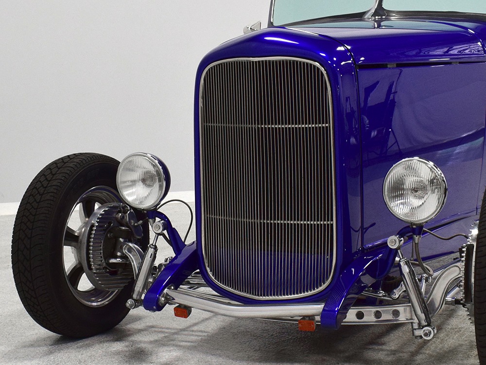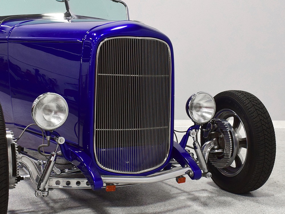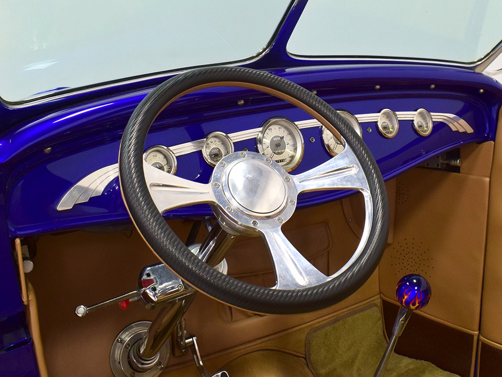 This beautiful electric blue ’32 Ford roadster nails the traditional look: low slung, minimalist, with enough style to attract attention wherever it goes. And the great thing about rods like this is that they cost a fraction as much as building one from scratch and let’s admit it: this is the car you’d build anyway. From the Brookville steel body to the rumbling 350 Chevy crate motor, it gets all the important stuff right. Starting with fresh sheetmetal right out of the press means there are zero problems under the skin—it’s new. It was built in Arizona, so the climate since it was finished was always friendly and there’s no sign of accident damage or other maladies anywhere on the car. Heck, with only 7839 miles since it was built, there hasn’t been much time for anything bad to happen to it. Panel gaps are excellent and the doors fit extremely well—better than Henry’s stuff to be sure. There’s also a steel 3-piece hood, a Vee’d windshield, and a painted radiator shell to give it a clean, no-nonsense look. They thankfully skipped any graphics, pinstripes, or other extraneous details so this sleek rod will look awesome 20 years from now when you’re still having fun with it.
