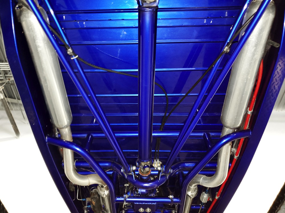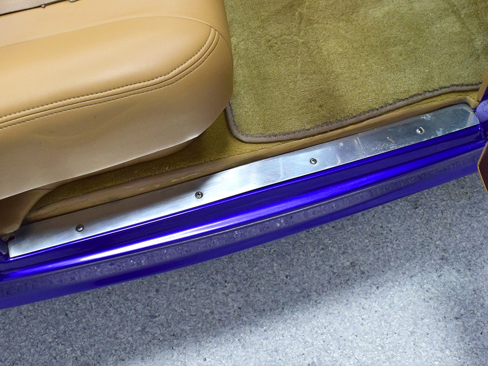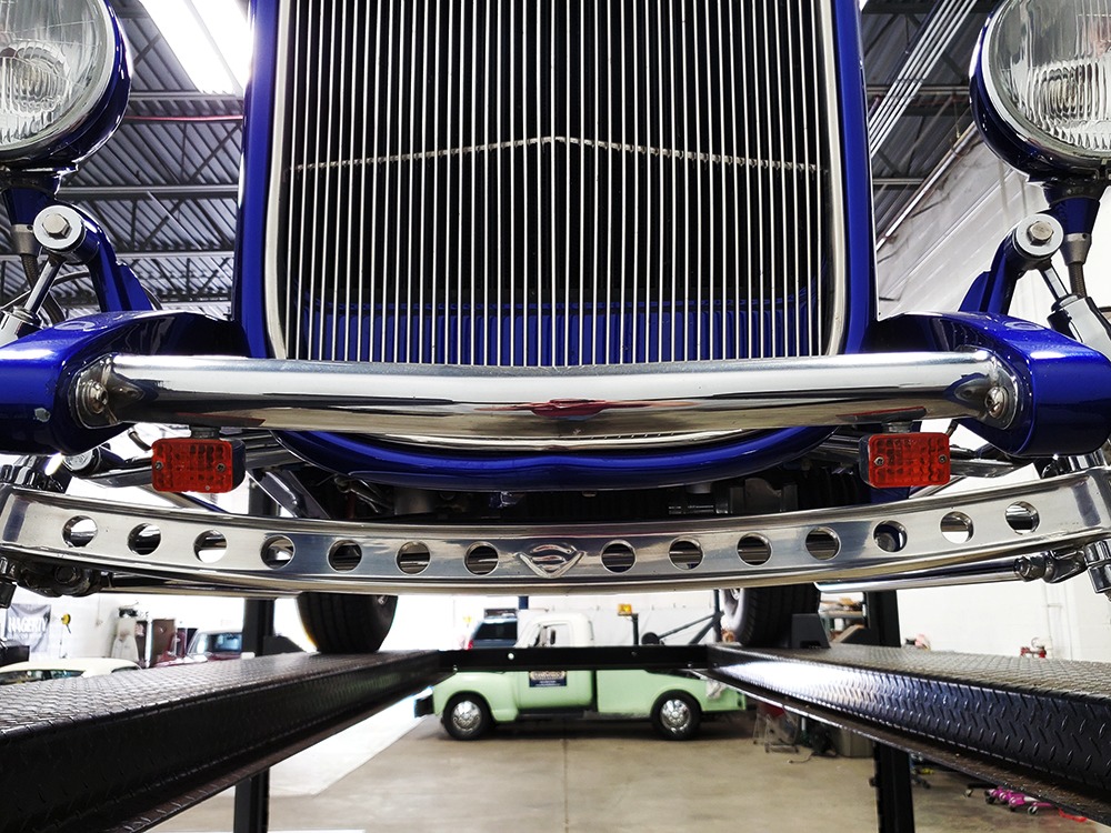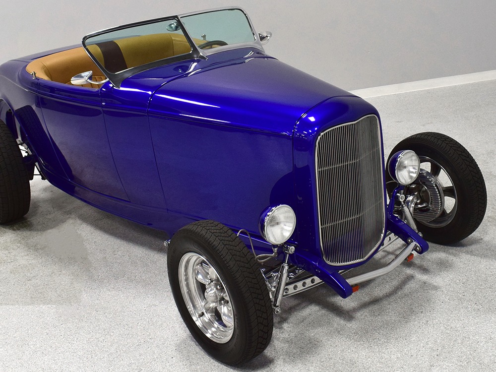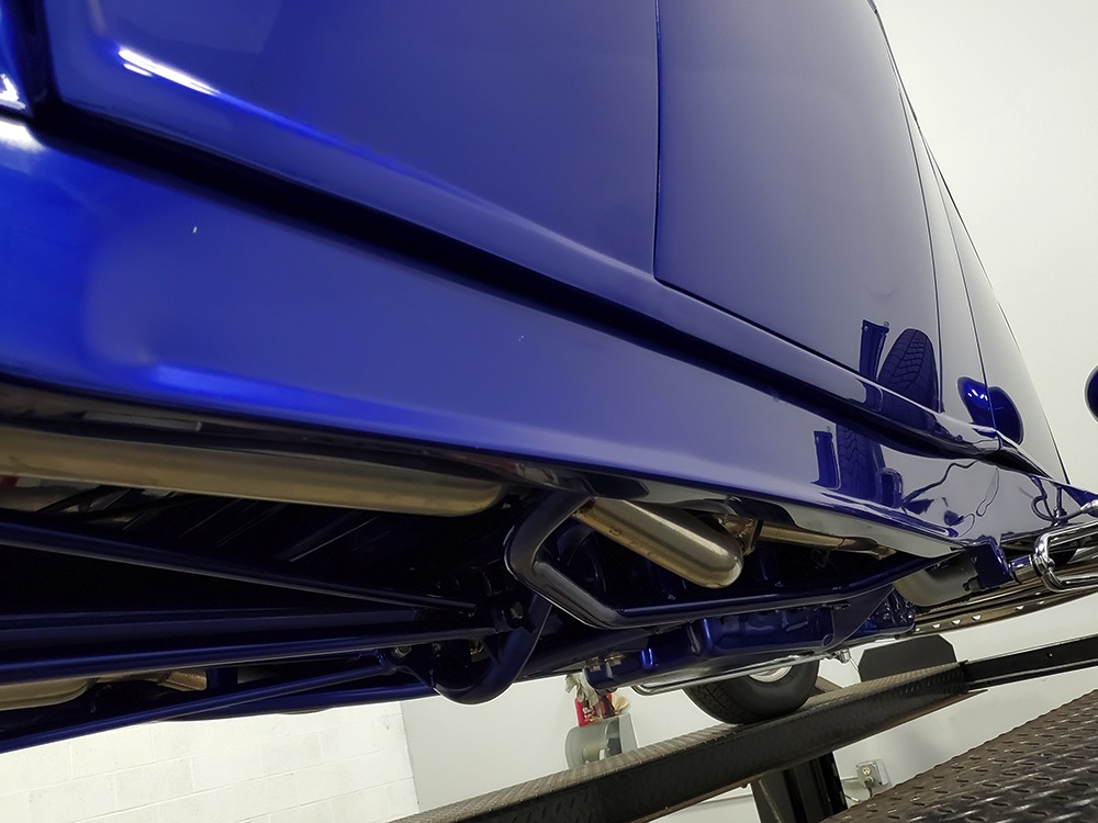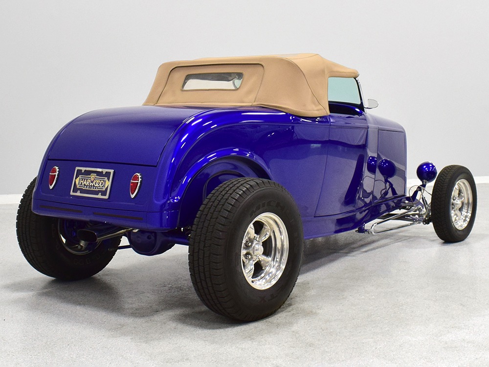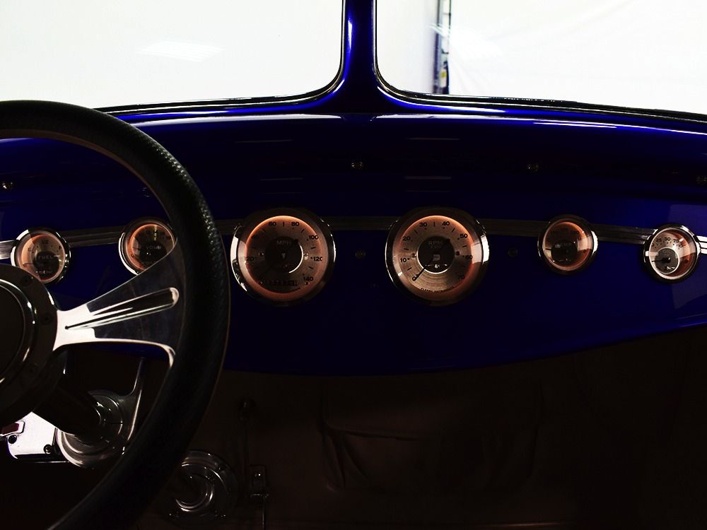 This beautiful electric blue ’32 Ford roadster nails the traditional look: low slung, minimalist, with enough style to attract attention wherever it goes. And the great thing about rods like this is that they cost a fraction as much as building one from scratch and let’s admit it: this is the car you’d build anyway. From the Brookville steel body to the rumbling 350 Chevy crate motor, it gets all the important stuff right. Starting with fresh sheetmetal right out of the press means there are zero problems under the skin—it’s new. It was built in Arizona, so the climate since it was finished was always friendly and there’s no sign of accident damage or other maladies anywhere on the car. Heck, with only 7839 miles since it was built, there hasn’t been much time for anything bad to happen to it. Panel gaps are excellent and the doors fit extremely well—better than Henry’s stuff to be sure. There’s also a steel 3-piece hood, a Vee’d windshield, and a painted radiator shell to give it a clean, no-nonsense look. They thankfully skipped any graphics, pinstripes, or other extraneous details so this sleek rod will look awesome 20 years from now when you’re still having fun with it.