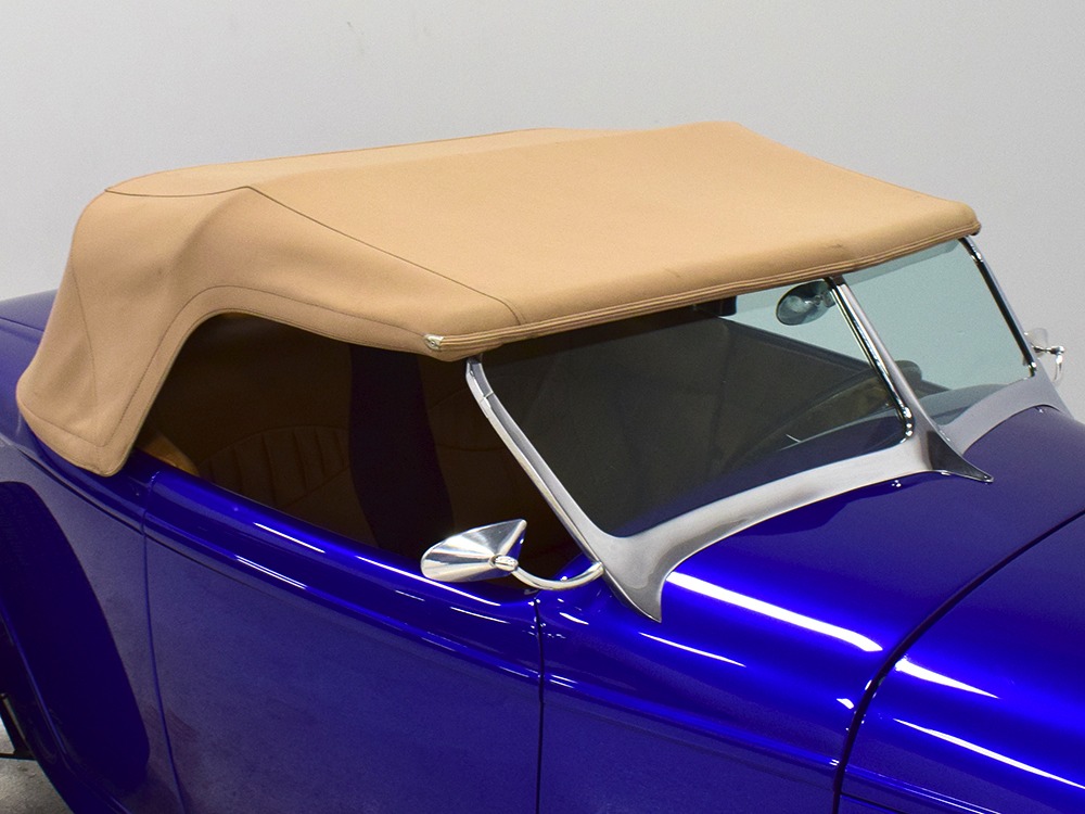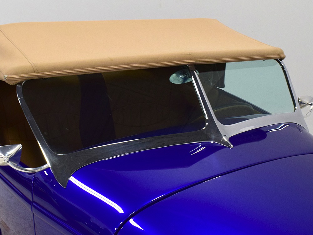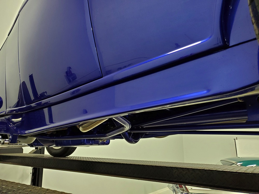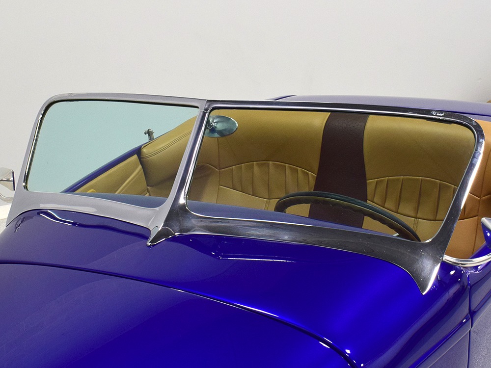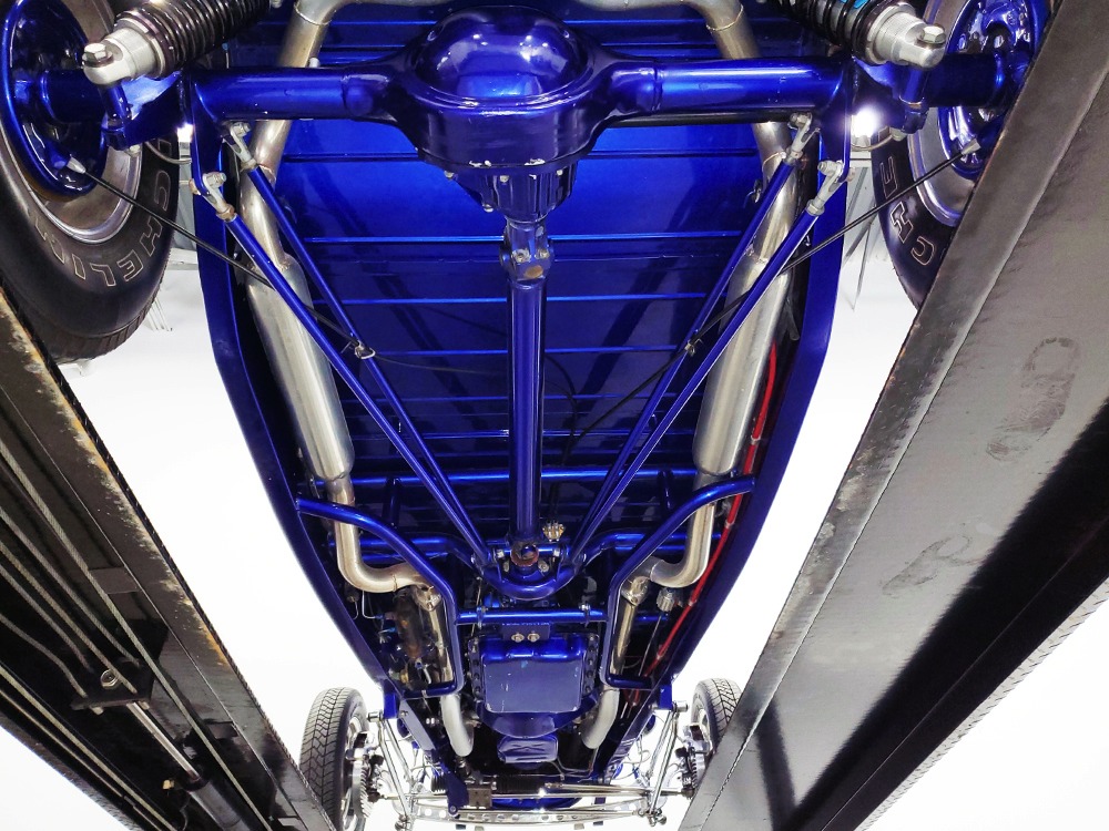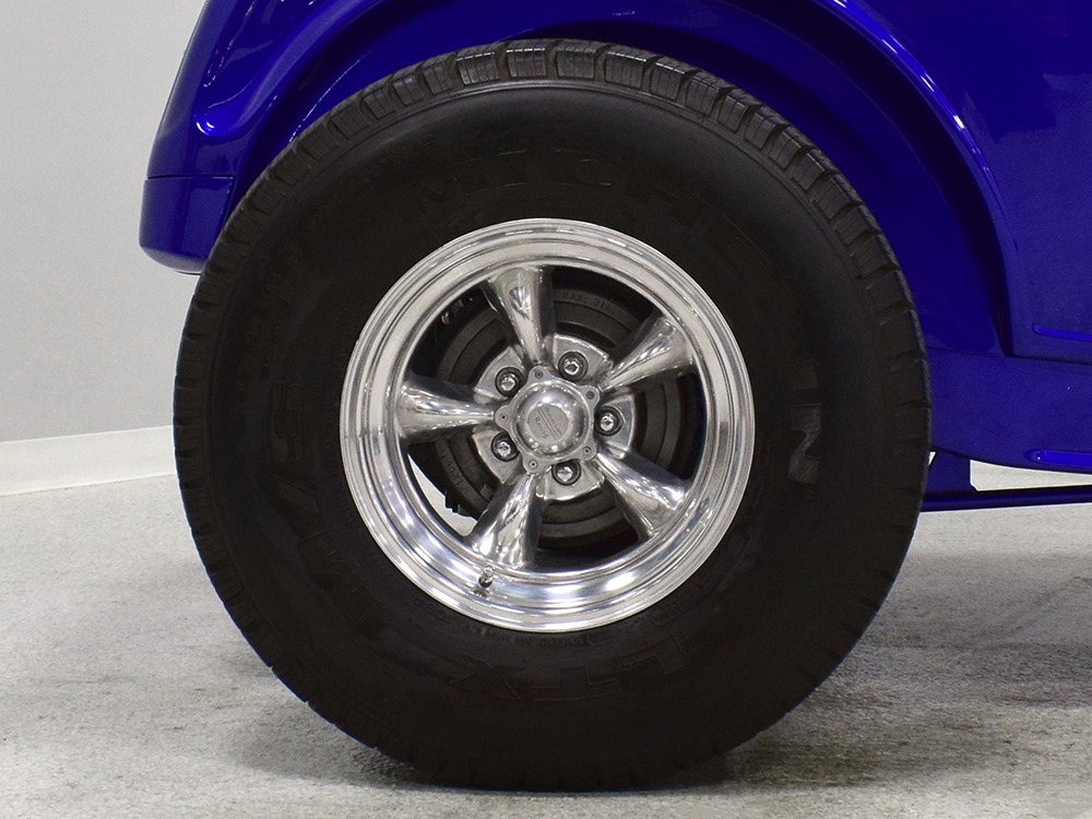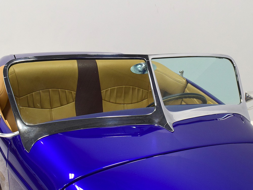 The powertrain doesn’t break any new ground, but it’s powerful, reliable, and easy to maintain. The 350 cubic inch Chevrolet V8 is a mainstay of hot rod building, and it’s topped by an Edelbrock 4-barrel carburetor on an aluminum intake manifold. Reliable GM HEI ignition handle the spark and there’s plenty of chrome and polished aluminum to make it worthwhile to open the hood. It starts easily, idles nicely, and pulls the featherweight roadster around with enough enthusiasm to scare most drivers. It’s downright quick! There’s also a giant radiator up front, so feel free to cruise on hot days, and there’s a heater for cooler spring and fall evenings when you’re just taking it easy with a friend. The transmission is a 700R4 4-speed automatic with overdrive, so it’s relaxed at speed, and there are 3.50 gears out back in the Ford rear end. The chassis is all new and includes a traditional dropped I-beam front axle on a leaf spring, while the rear is supported by a 4-link on coil-overs. A full stainless exhaust sounds awesome and has a trick single outlet in the center, and with rack-and-pinion steering and front disc brakes, it’s competent and easy to manage without feeling crude. 15-inch Torque Thrust wheels are the right choice for a period rod and carry staggered 165R15 front and 31x10.50R15 rear Michelin radials.