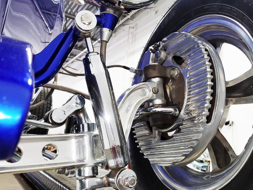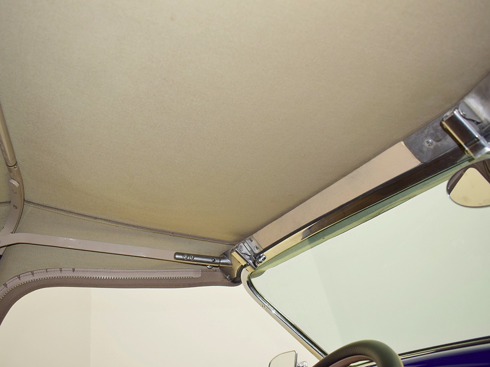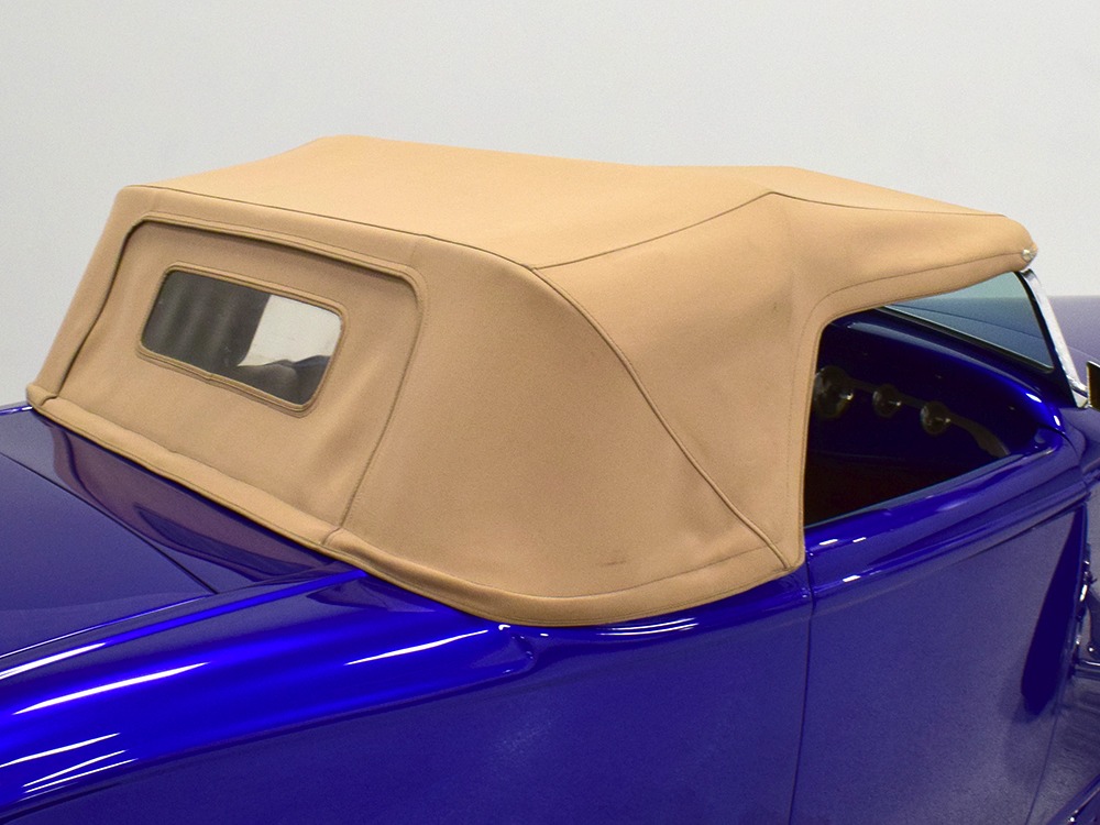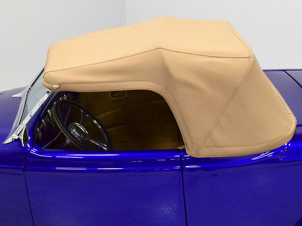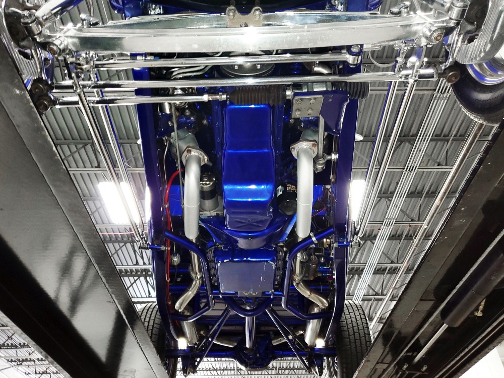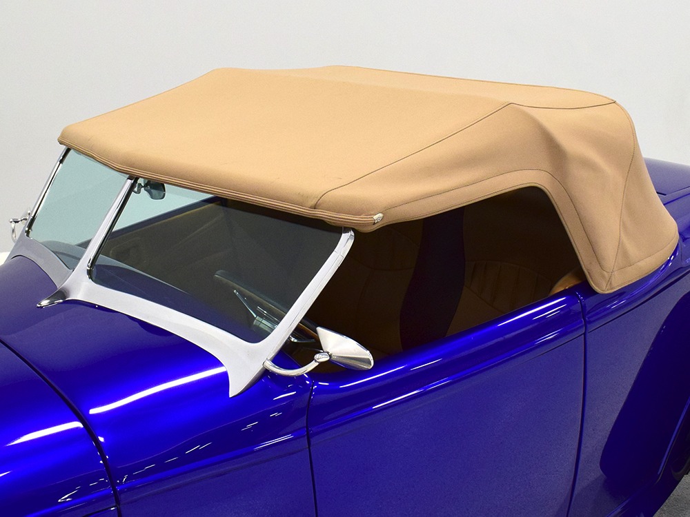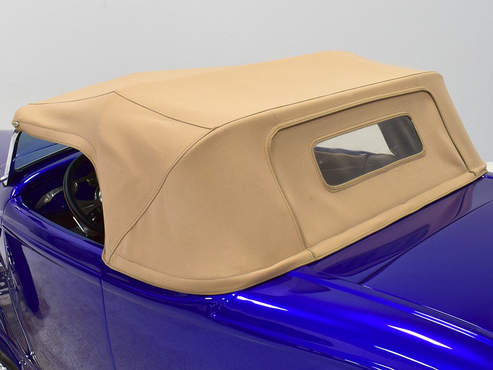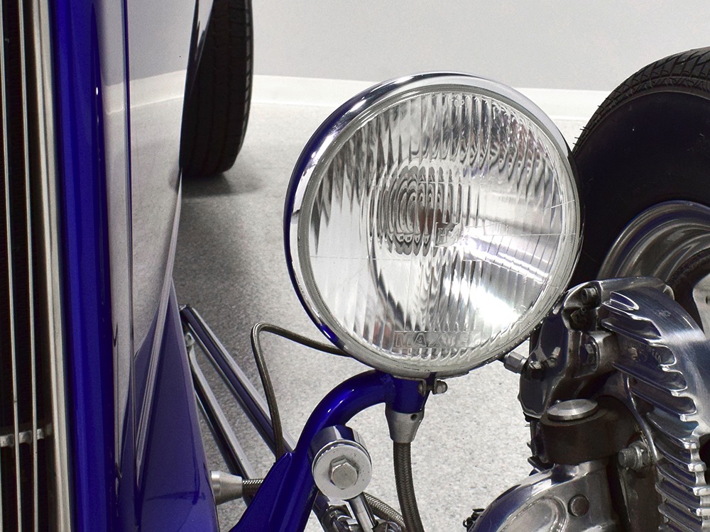 The powertrain doesn’t break any new ground, but it’s powerful, reliable, and easy to maintain. The 350 cubic inch Chevrolet V8 is a mainstay of hot rod building, and it’s topped by an Edelbrock 4-barrel carburetor on an aluminum intake manifold. Reliable GM HEI ignition handle the spark and there’s plenty of chrome and polished aluminum to make it worthwhile to open the hood. It starts easily, idles nicely, and pulls the featherweight roadster around with enough enthusiasm to scare most drivers. It’s downright quick! There’s also a giant radiator up front, so feel free to cruise on hot days, and there’s a heater for cooler spring and fall evenings when you’re just taking it easy with a friend. The transmission is a 700R4 4-speed automatic with overdrive, so it’s relaxed at speed, and there are 3.50 gears out back in the Ford rear end. The chassis is all new and includes a traditional dropped I-beam front axle on a leaf spring, while the rear is supported by a 4-link on coil-overs. A full stainless exhaust sounds awesome and has a trick single outlet in the center, and with rack-and-pinion steering and front disc brakes, it’s competent and easy to manage without feeling crude. 15-inch Torque Thrust wheels are the right choice for a period rod and carry staggered 165R15 front and 31x10.50R15 rear Michelin radials.