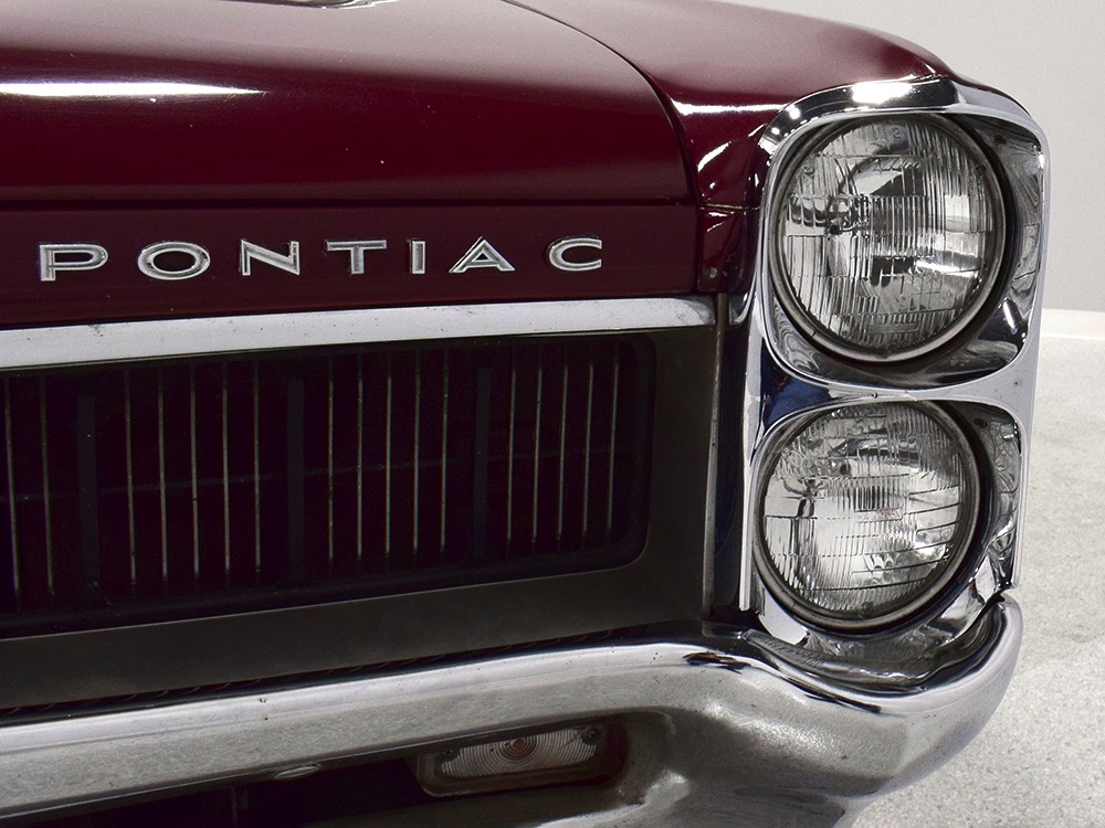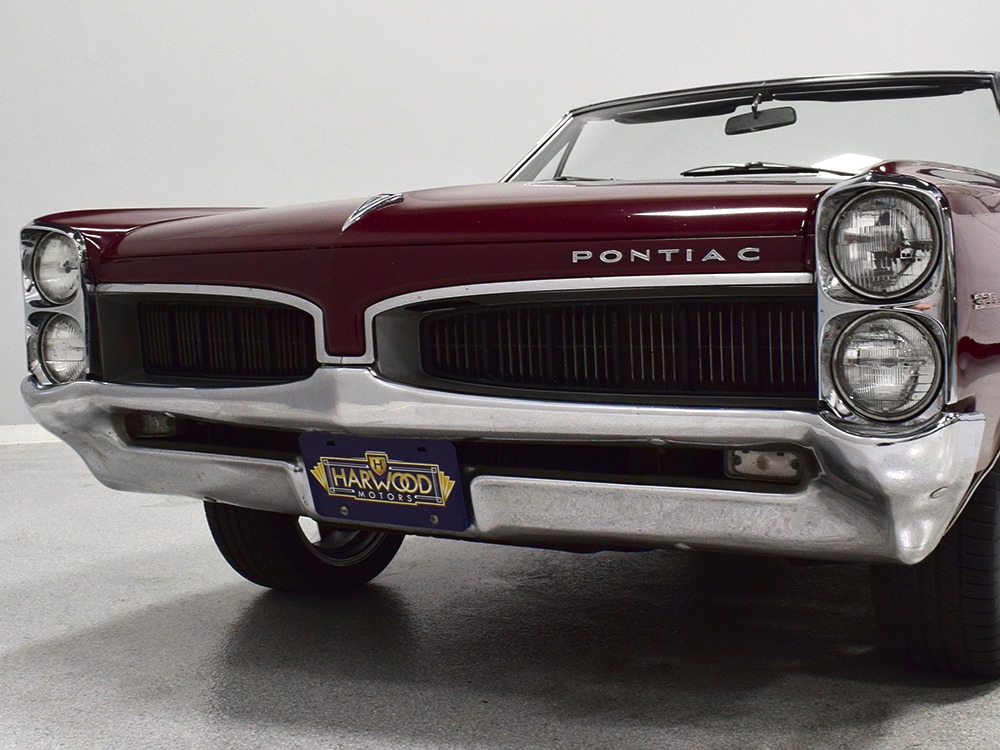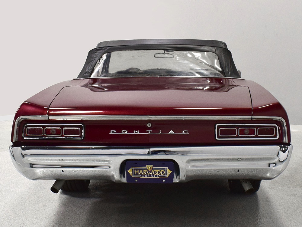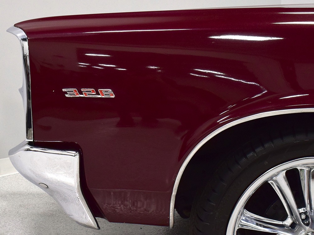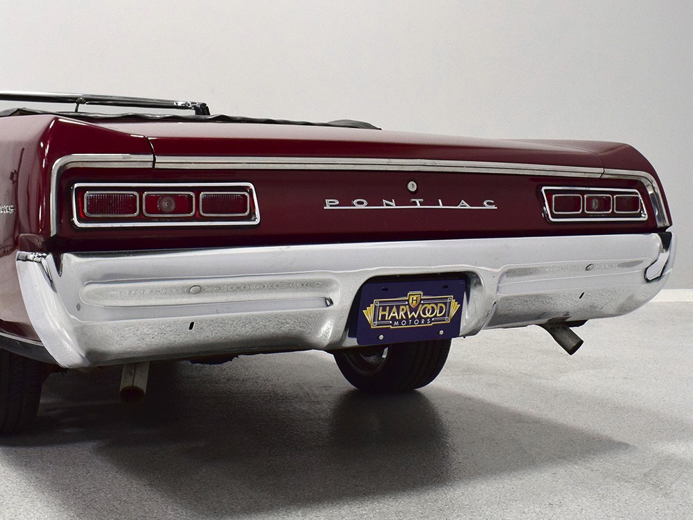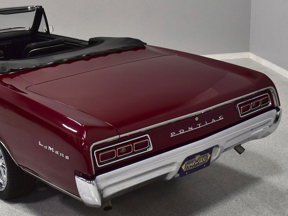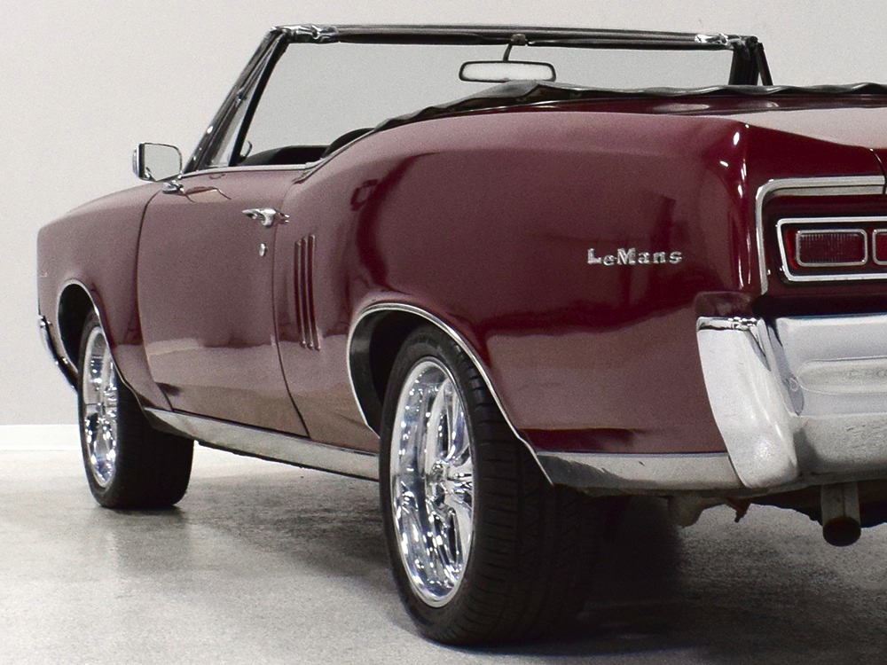 The remarkable thing about this Lemans ragtop is that it hasn’t been converted into yet another fake GTO. Instead, it proudly wears its Lemans badges and prefers to let the stout 400 cubic inch V8 under the hood do all the talking. The subtle color combination works rather well, with handsome Madeira Maroon paint that was applied perhaps 20 years ago. There’s a nice shine that could probably be pulled up a notch with a professional cut and buff, but even as it sits, it’s the kind of car that gets a lot of attention out on the road. Pontiac’s styling was a home-run in 1967, featuring stacked headlights, gracefully curved quarter panels, and neat details like the “gills” just behind the doors, and the only real way to tell the difference between a Lemans and a GTO are things like the grilles, badges and taillights—most folks will never notice. Panel fit is quite good and we don’t believe the car has any replacement panels, so it feels more substantial than a car that’s been cut apart and reassembled. You’ll note the car is still wearing ‘326’ emblems on the front fenders, but we’ll get to that in a moment.