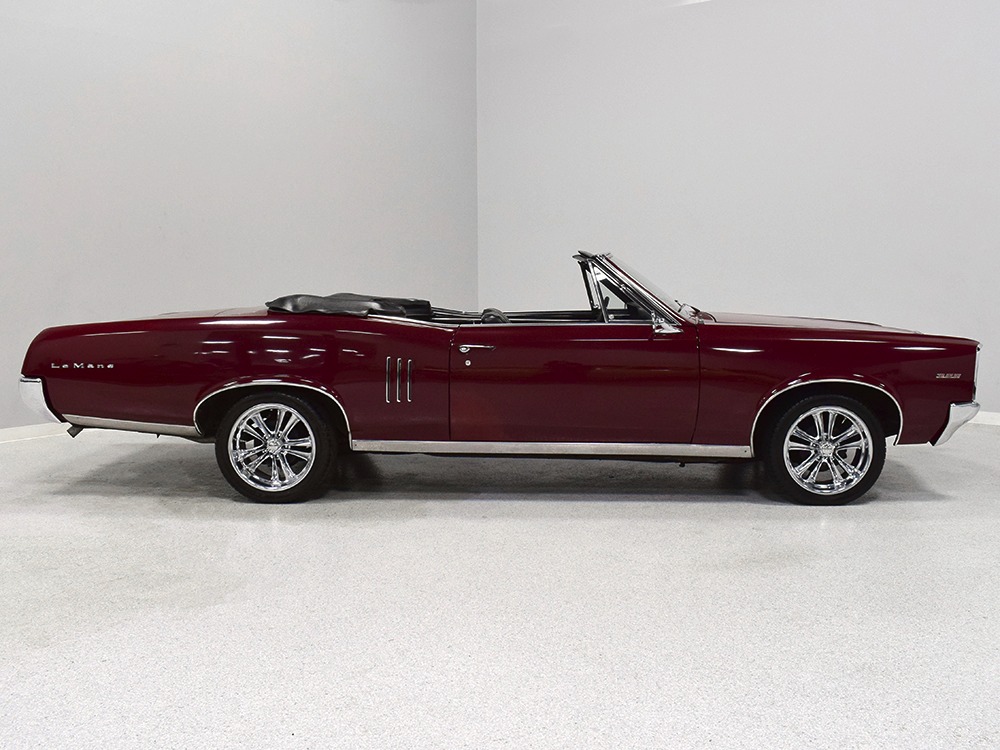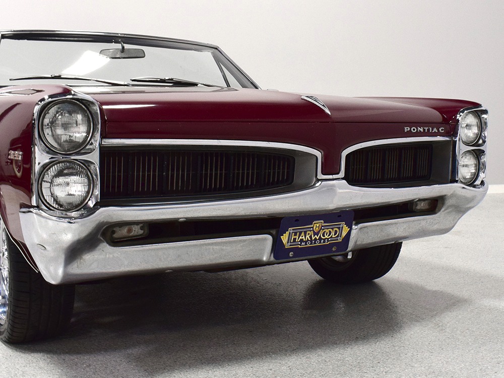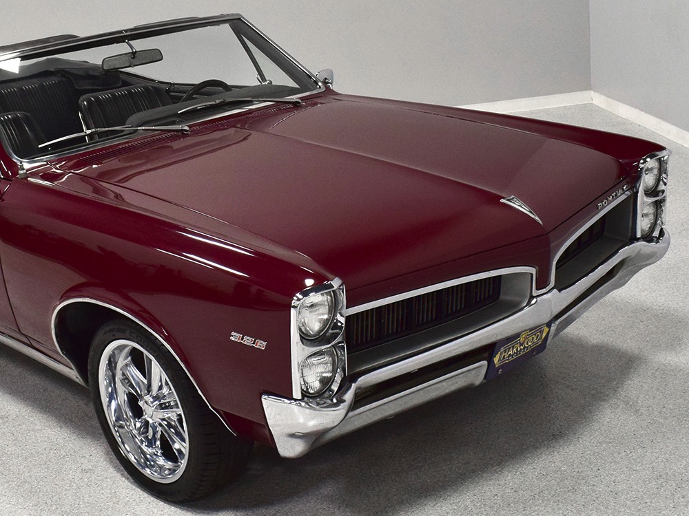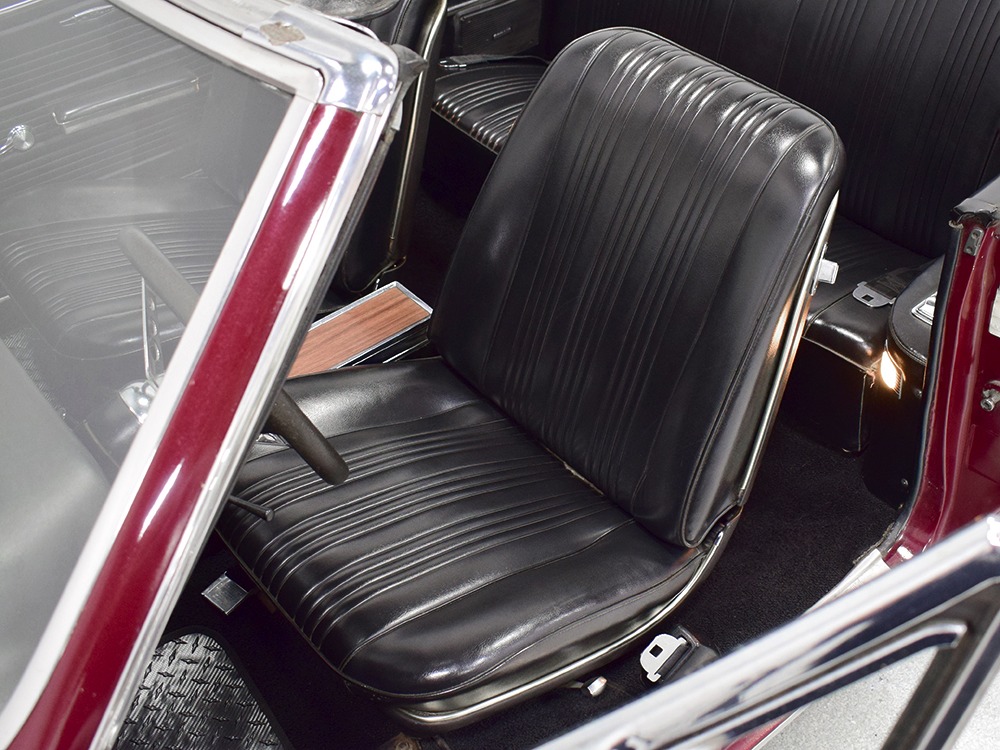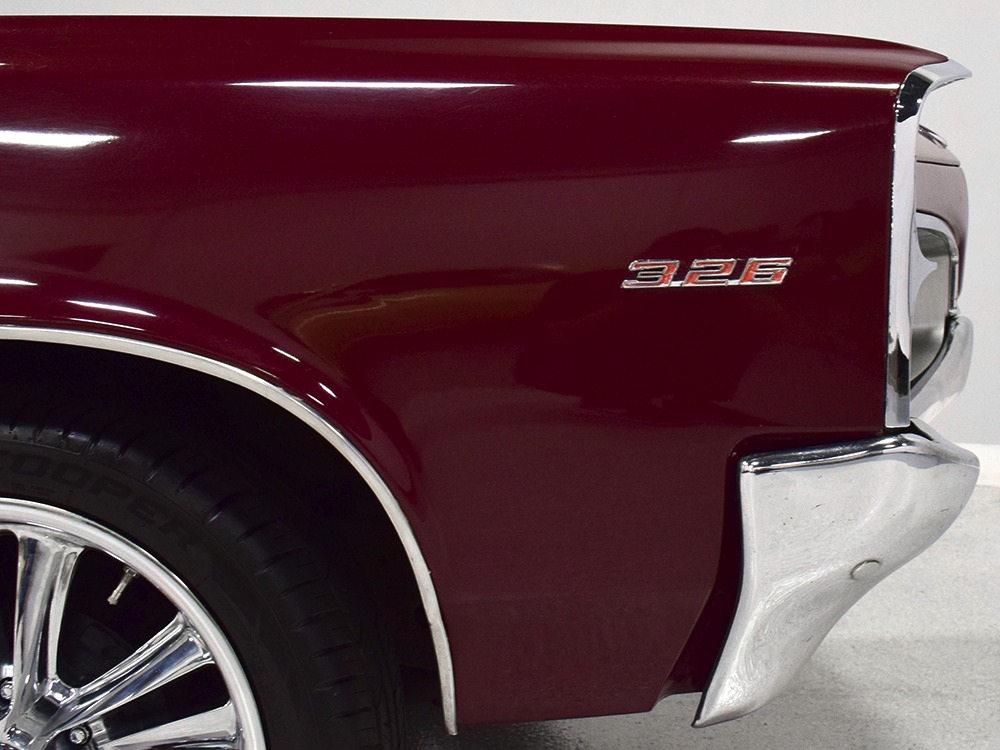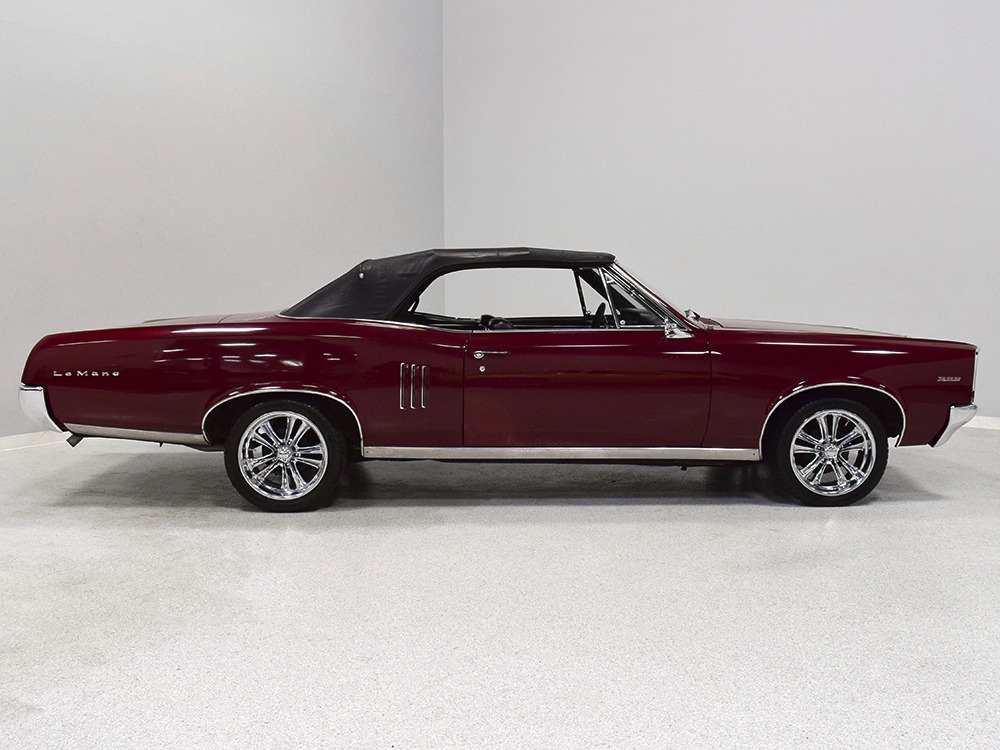 The remarkable thing about this Lemans ragtop is that it hasn’t been converted into yet another fake GTO. Instead, it proudly wears its Lemans badges and prefers to let the stout 400 cubic inch V8 under the hood do all the talking. The subtle color combination works rather well, with handsome Madeira Maroon paint that was applied perhaps 20 years ago. There’s a nice shine that could probably be pulled up a notch with a professional cut and buff, but even as it sits, it’s the kind of car that gets a lot of attention out on the road. Pontiac’s styling was a home-run in 1967, featuring stacked headlights, gracefully curved quarter panels, and neat details like the “gills” just behind the doors, and the only real way to tell the difference between a Lemans and a GTO are things like the grilles, badges and taillights—most folks will never notice. Panel fit is quite good and we don’t believe the car has any replacement panels, so it feels more substantial than a car that’s been cut apart and reassembled. You’ll note the car is still wearing ‘326’ emblems on the front fenders, but we’ll get to that in a moment.