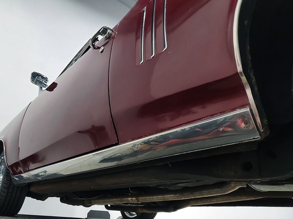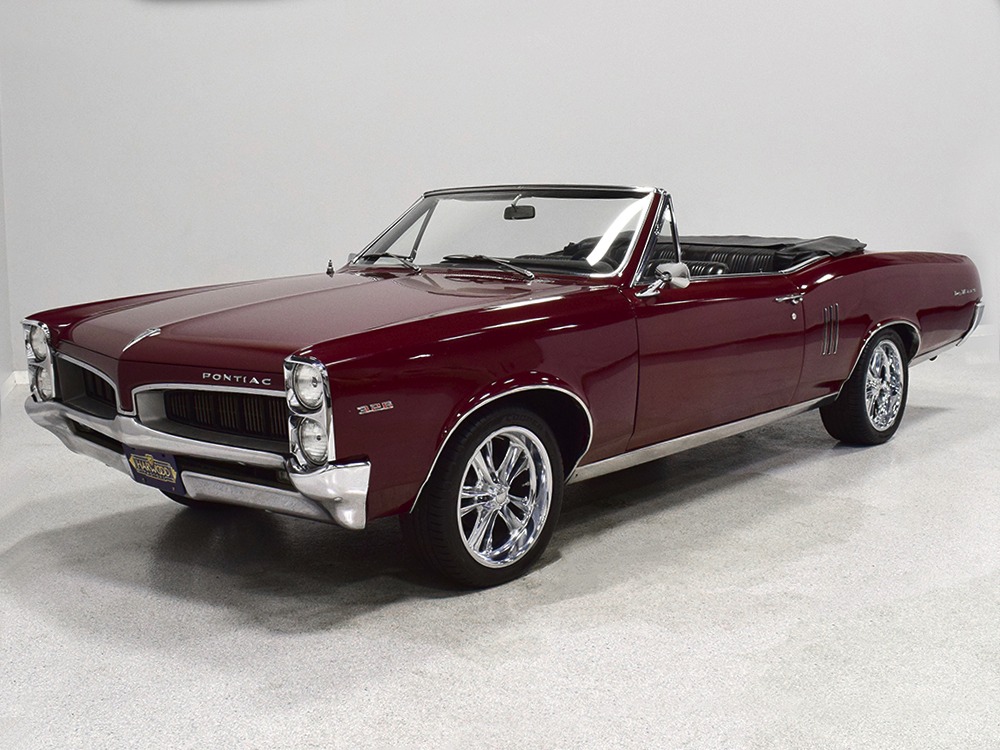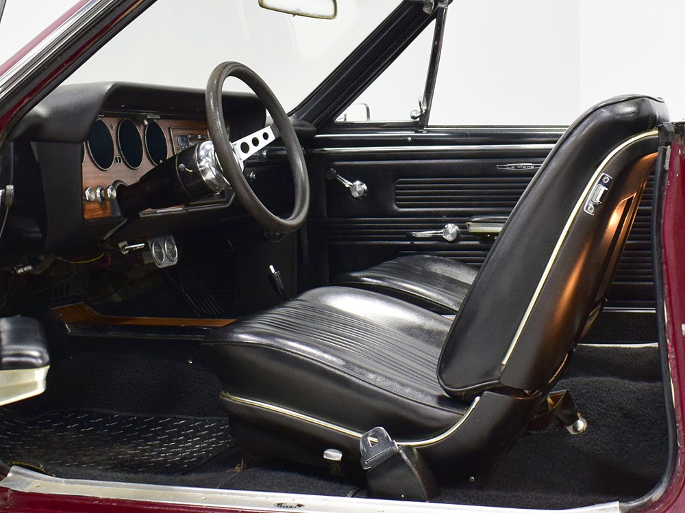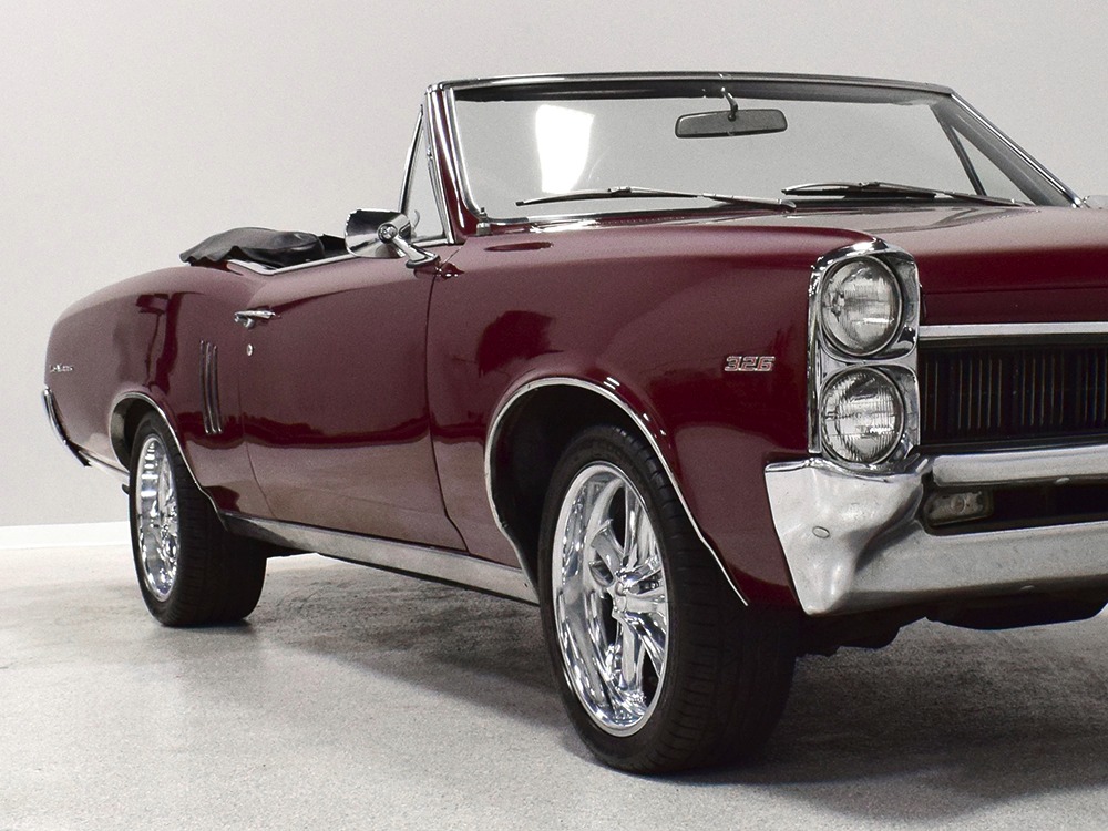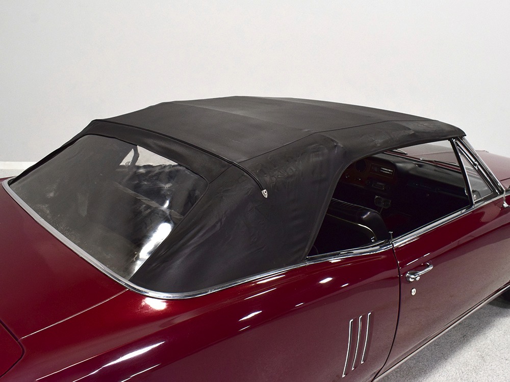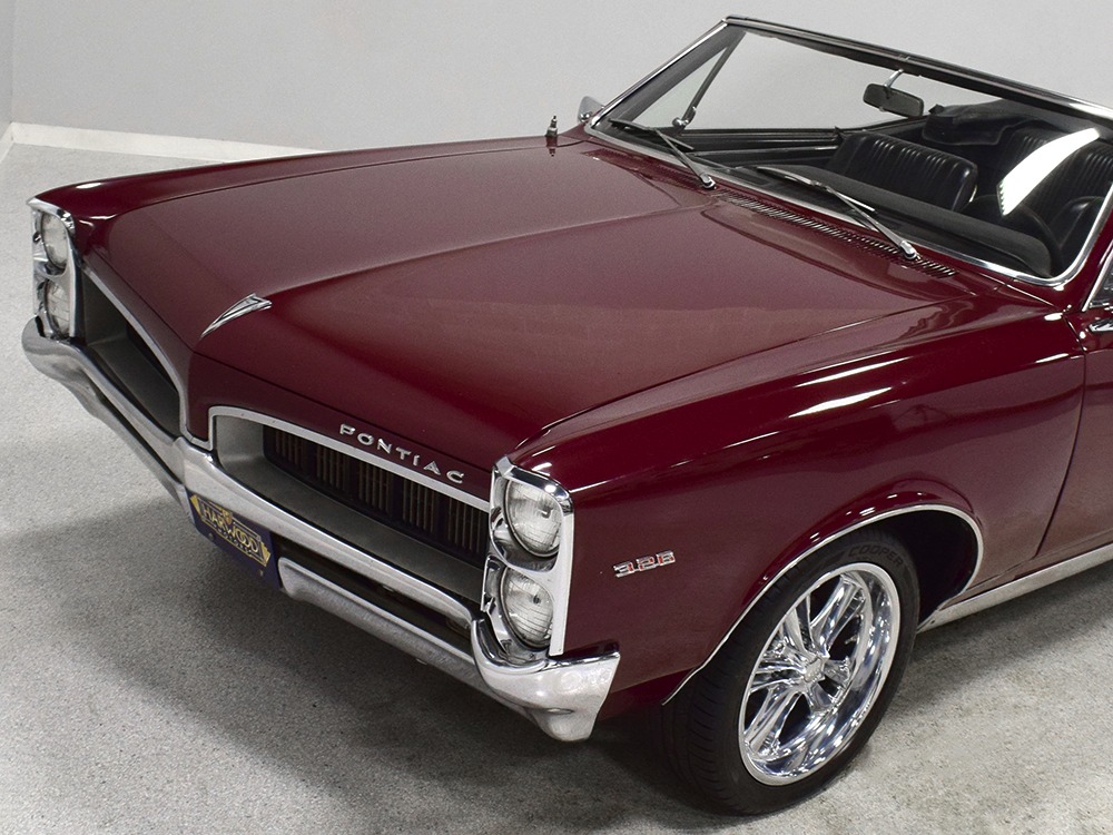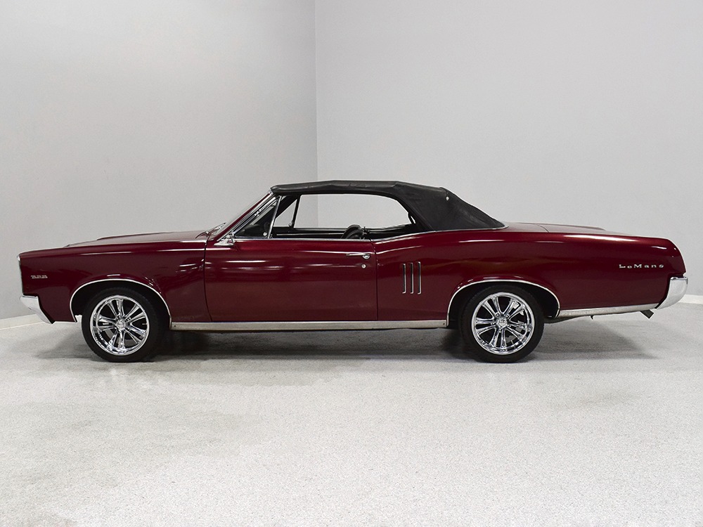 The remarkable thing about this Lemans ragtop is that it hasn’t been converted into yet another fake GTO. Instead, it proudly wears its Lemans badges and prefers to let the stout 400 cubic inch V8 under the hood do all the talking. The subtle color combination works rather well, with handsome Madeira Maroon paint that was applied perhaps 20 years ago. There’s a nice shine that could probably be pulled up a notch with a professional cut and buff, but even as it sits, it’s the kind of car that gets a lot of attention out on the road. Pontiac’s styling was a home-run in 1967, featuring stacked headlights, gracefully curved quarter panels, and neat details like the “gills” just behind the doors, and the only real way to tell the difference between a Lemans and a GTO are things like the grilles, badges and taillights—most folks will never notice. Panel fit is quite good and we don’t believe the car has any replacement panels, so it feels more substantial than a car that’s been cut apart and reassembled. You’ll note the car is still wearing ‘326’ emblems on the front fenders, but we’ll get to that in a moment.
