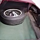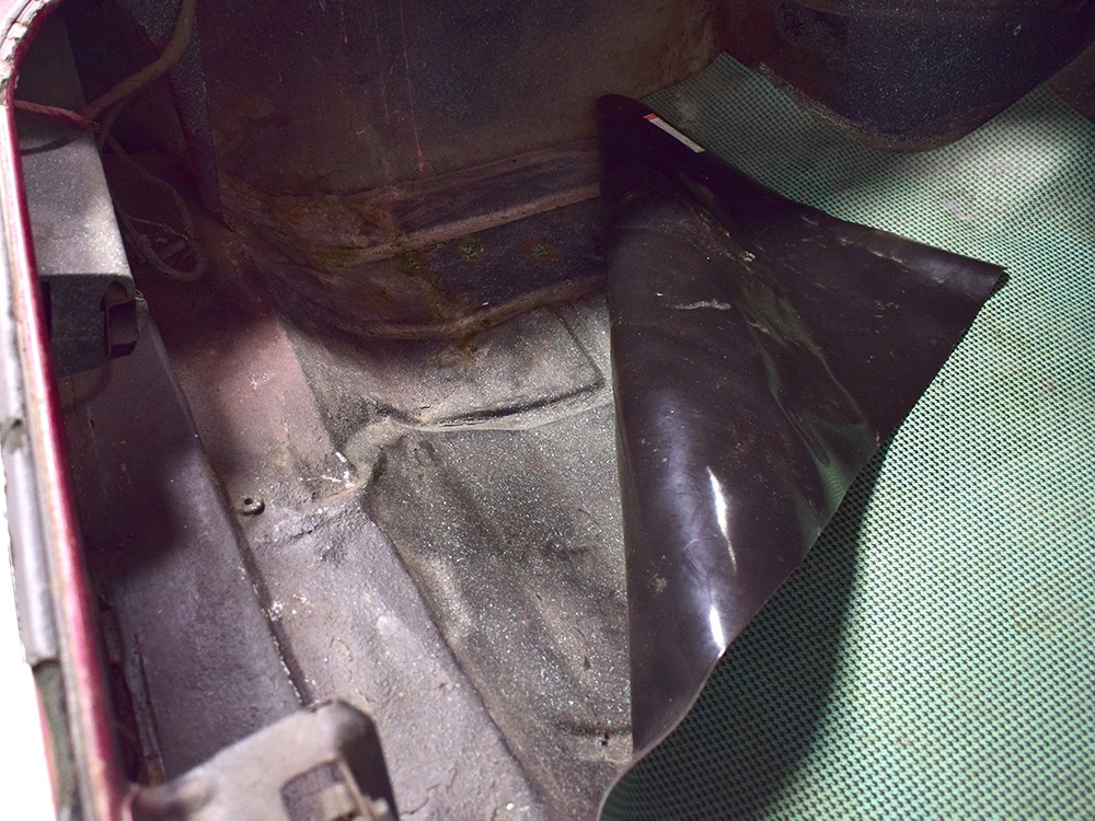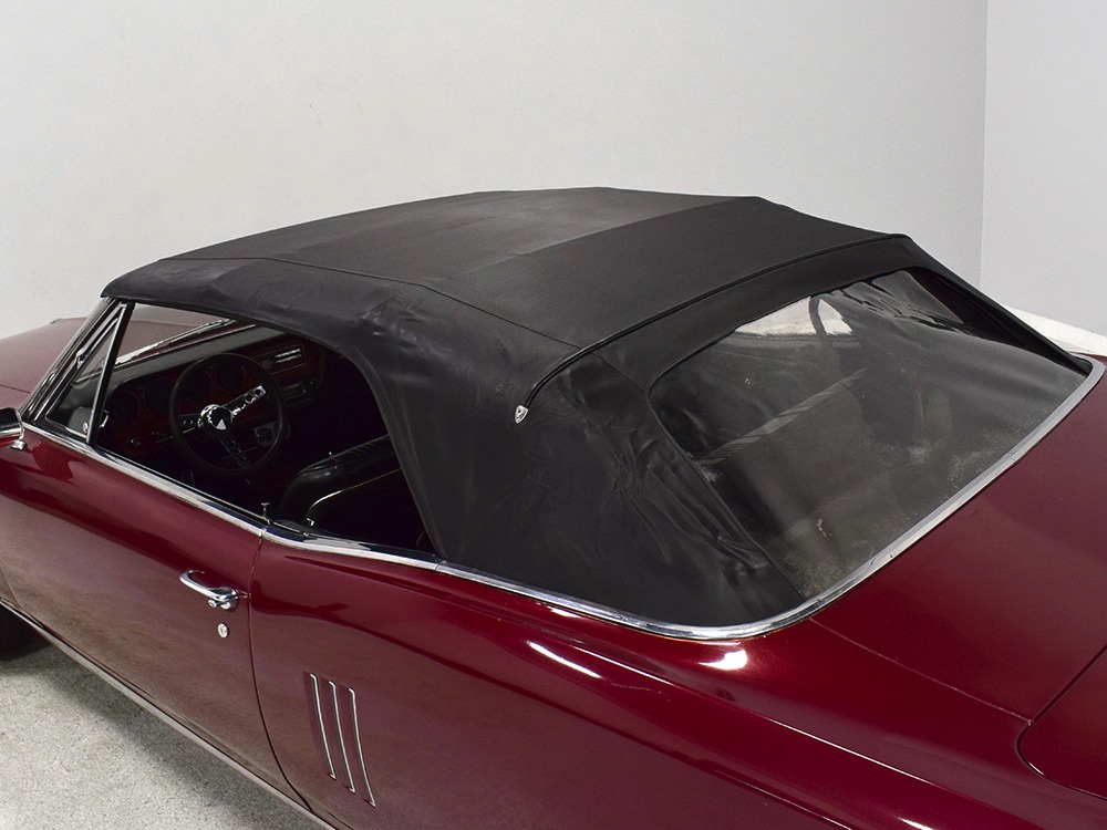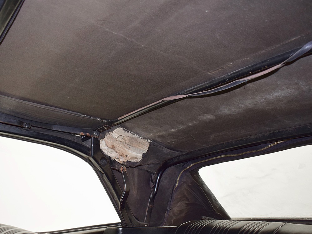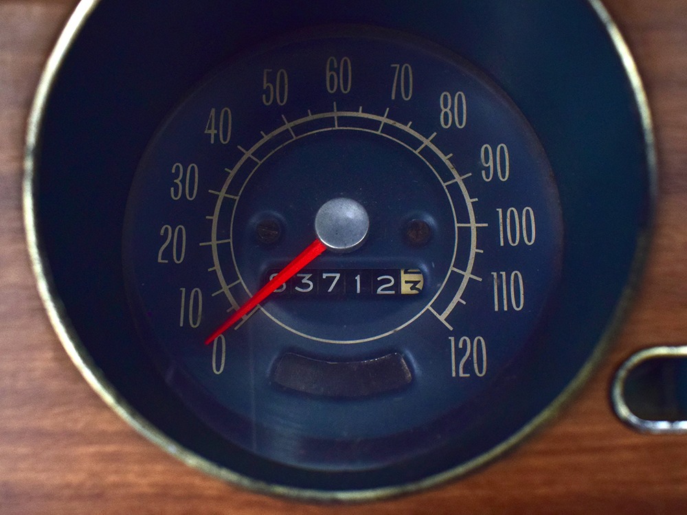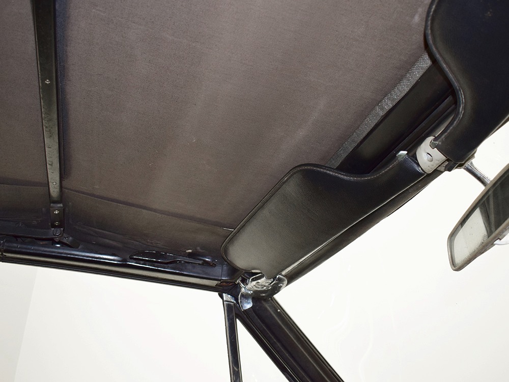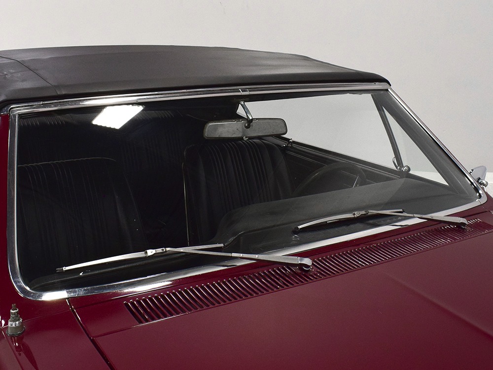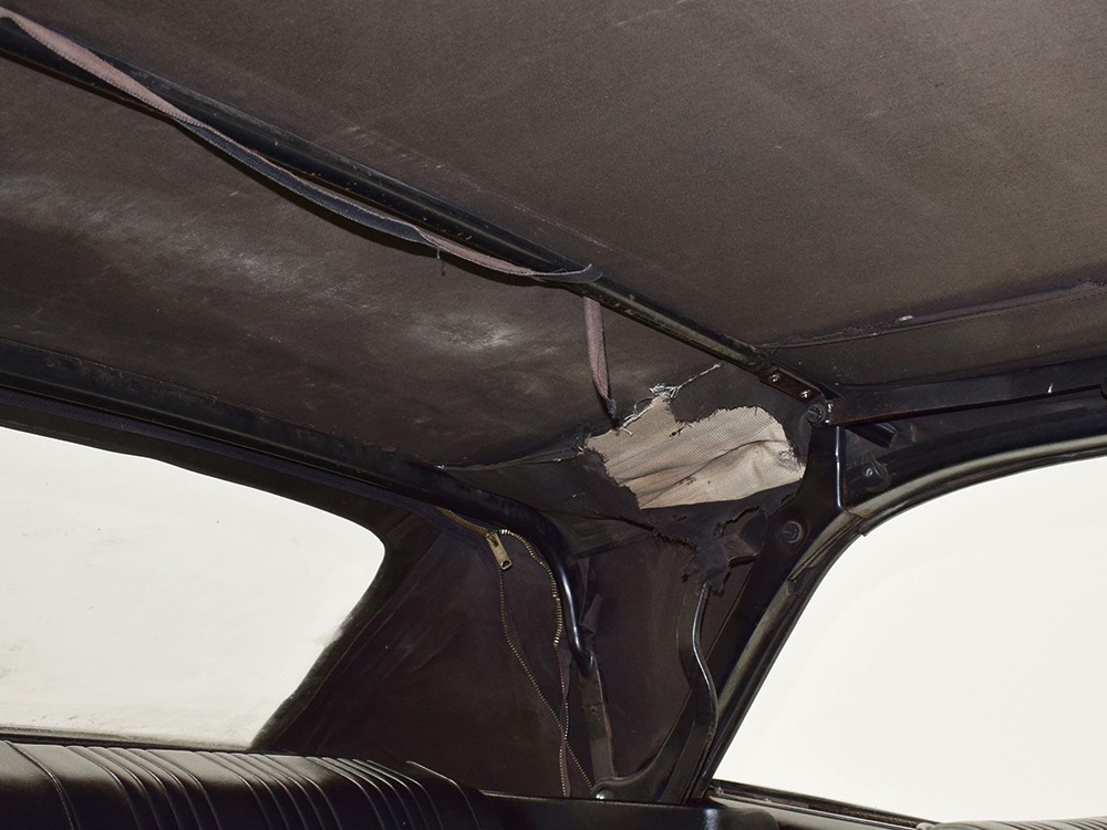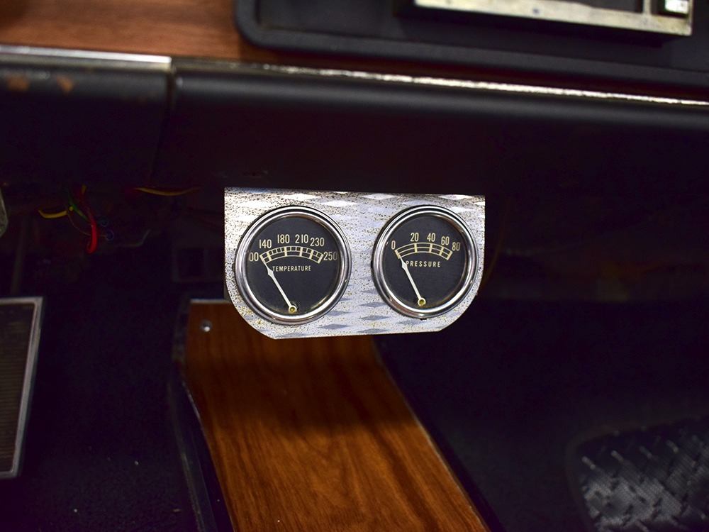 The black vinyl interior remains in fantastic condition. The seats are so nice we have to believe they are reproduction seat covers, but they’re much better quality than a lot of the stuff you see today. Most everything else is original equipment save for the steering wheel, which has been replaced by a slightly smaller and fatter aftermarket unit. Factory gauges cover only the basics, so a set of aftermarket oil pressure and temperature dials were added under the deash and at some point, an AM/FM/cassette head unit was installed in the dash. Factory woodgraining warms up the black interior and there are some heavy-duty floor mats to protect the carpets. The power convertible top works well and latches easily, although the rear window has started to come loose—an upholstery shop should be able to remedy that without much difficulty. There’s also a matching black vinyl boot to give it a clean look when the top is down (which should be pretty much all the time if you’re doing it right). The trunk is outfitted with a correct mat and includes a full-sized spare tire assembly.