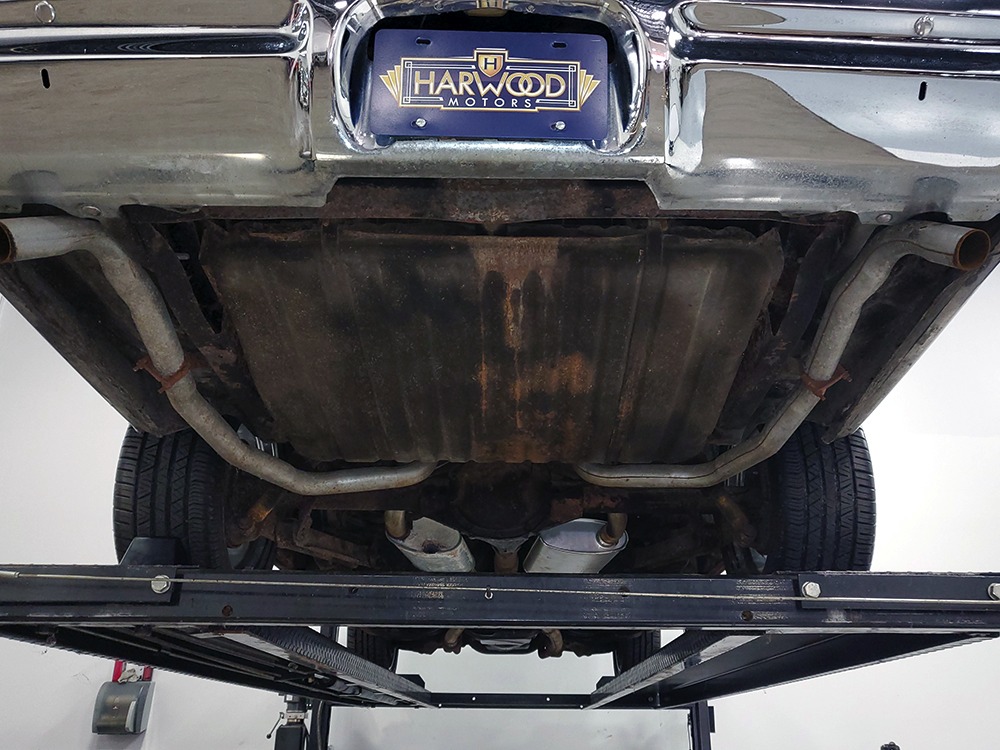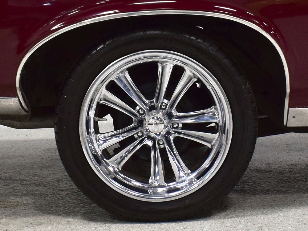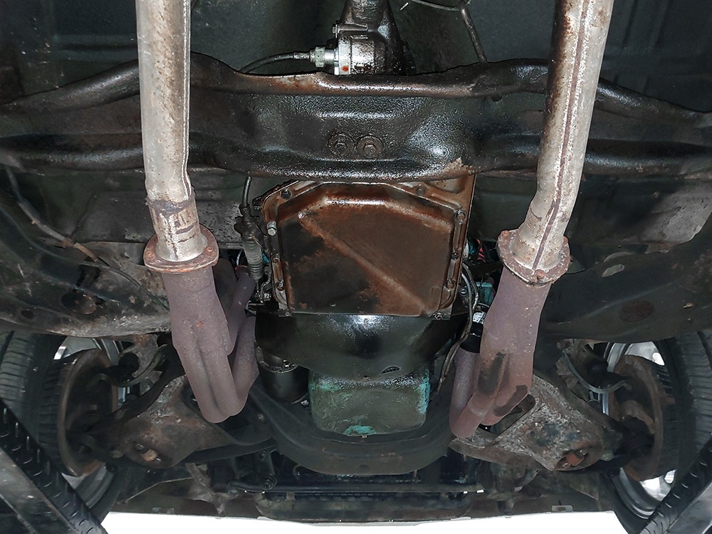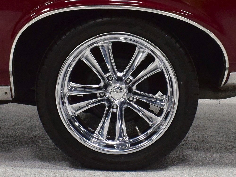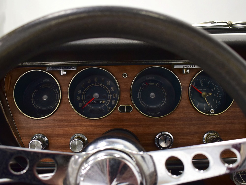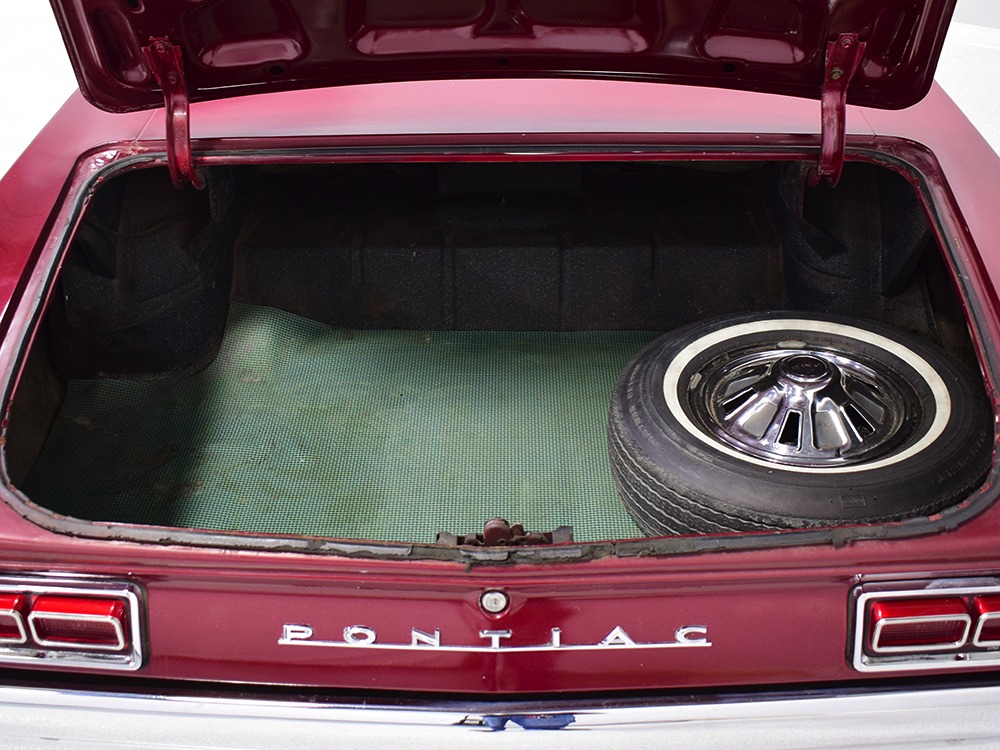 The badges say ‘326’ and that was the biggest engine you could get in a Lemans, but the great thing about Pontiac V8s is that they’re all the same on the outside. That means that a YD-coded 400 cubic inch mill dropped right between the fenders and looks almost completely stock save for the Mickey Thompson finned valve covers and open-element air cleaner. There’s proper Pontiac Turquoise on the block itself, a fresh 4-barrel carburetor on top, and a recent tune-up to make it run right. And it does run beautifully, starting easily, idling nicely, and just going about its business with a minimum of fuss. Want it to just trundle along in traffic? No problem. Need to bark the tires? It’ll do that, too! With power steering and power brakes, it’s quite easy to manage and the 2-speed PowerGlide automatic transmission is about as bulletproof as they come. We believe there are easy-cruising 3.36 gears out back and this big GM ragtop has that great ride quality that is hard to replicate today. It’s grungy underneath (the body has never been off the frame) but there are no critical issues and the dual exhaust system and long-tube headers give it a great soundtrack. The suspension is stock, as are the brakes, but those 17-inch wheels and staggered 225/45/17 front and 255/40/17 rear performance radials give it a great stance.