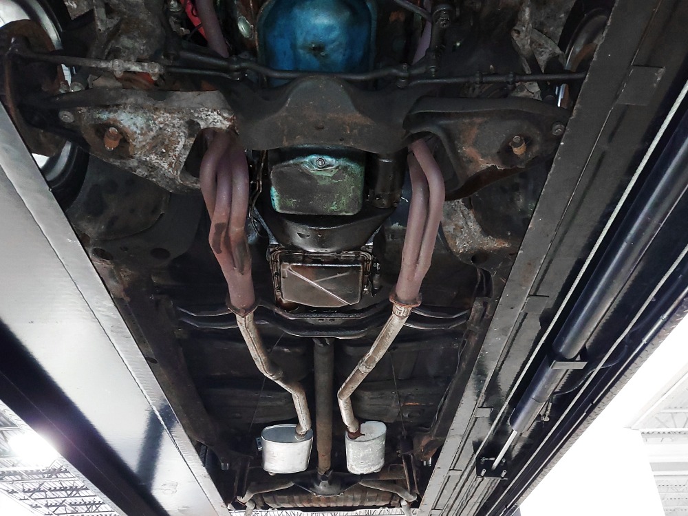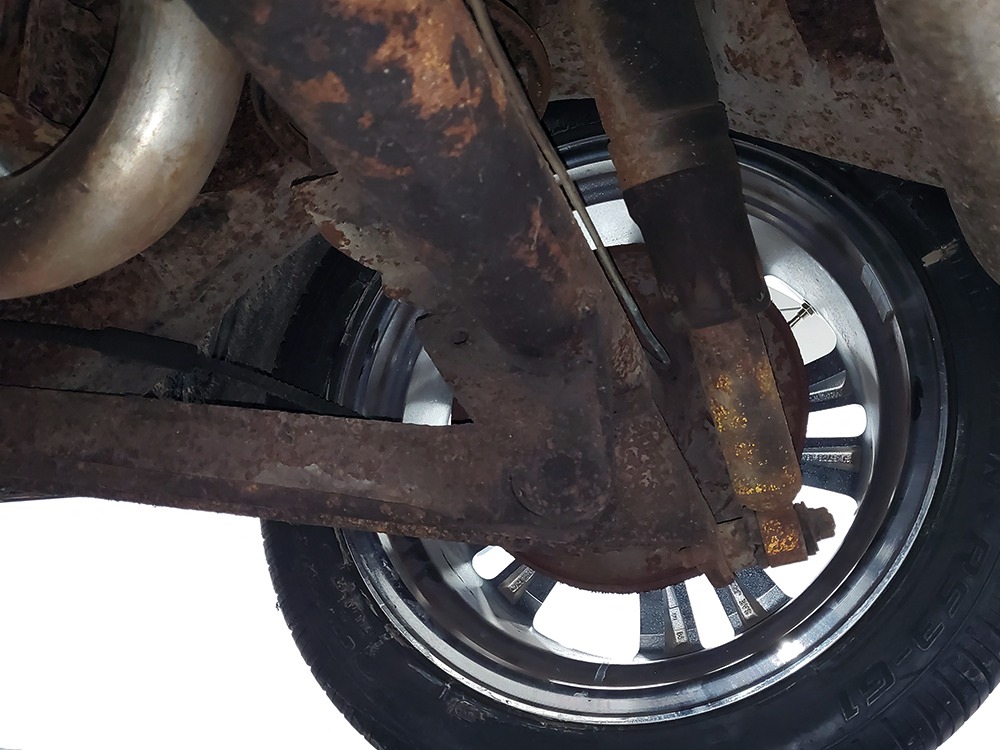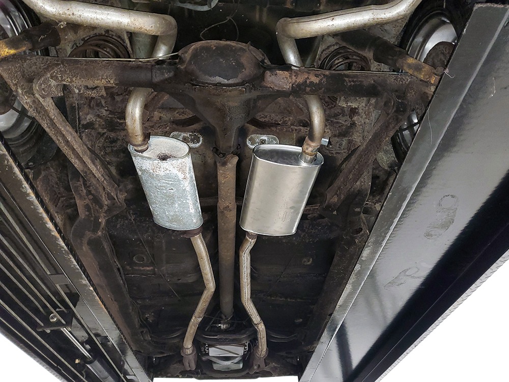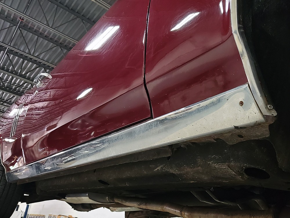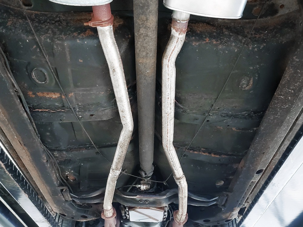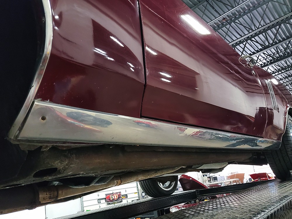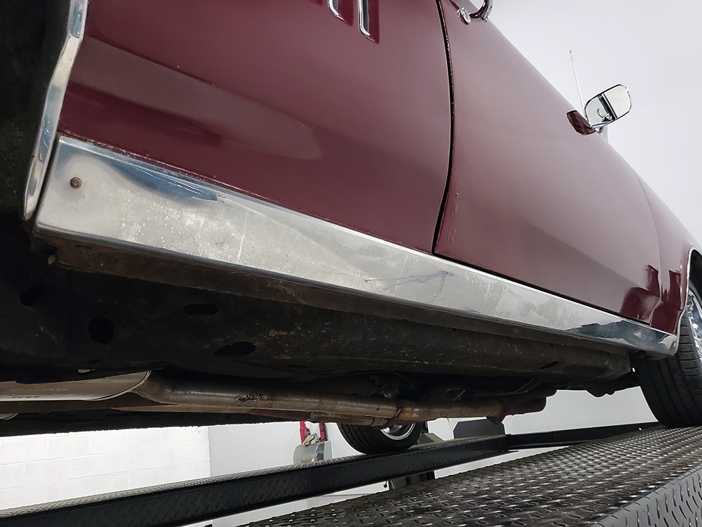 The badges say ‘326’ and that was the biggest engine you could get in a Lemans, but the great thing about Pontiac V8s is that they’re all the same on the outside. That means that a YD-coded 400 cubic inch mill dropped right between the fenders and looks almost completely stock save for the Mickey Thompson finned valve covers and open-element air cleaner. There’s proper Pontiac Turquoise on the block itself, a fresh 4-barrel carburetor on top, and a recent tune-up to make it run right. And it does run beautifully, starting easily, idling nicely, and just going about its business with a minimum of fuss. Want it to just trundle along in traffic? No problem. Need to bark the tires? It’ll do that, too! With power steering and power brakes, it’s quite easy to manage and the 2-speed PowerGlide automatic transmission is about as bulletproof as they come. We believe there are easy-cruising 3.36 gears out back and this big GM ragtop has that great ride quality that is hard to replicate today. It’s grungy underneath (the body has never been off the frame) but there are no critical issues and the dual exhaust system and long-tube headers give it a great soundtrack. The suspension is stock, as are the brakes, but those 17-inch wheels and staggered 225/45/17 front and 255/40/17 rear performance radials give it a great stance.