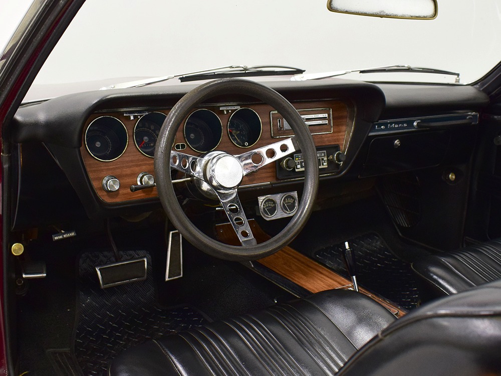 The remarkable thing about this Lemans ragtop is that it hasn’t been converted into yet another fake GTO. Instead, it proudly wears its Lemans badges and prefers to let the stout 400 cubic inch V8 under the hood do all the talking.