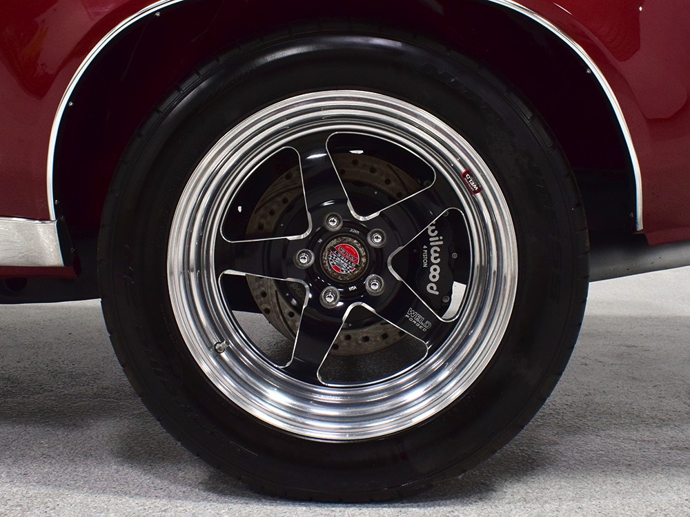 The interior likewise doesn’t break any new ground but shows expert workmanship and a dedication to keeping things stock. Yes, that’s a bench seat and a column shifter, but that’s how Brian’s original car was configured so it was faithfully duplicated here. The red cloth upholstery is GM-spec and has been completely restored—who knows how much that cost, because there are no kits for this car. The original dash has bright woodgrain appliques, rebuilt gauges (with an auxiliary temperature gauge underneath, just in case), and even the original AM radio remains in place. The 59,331 indicated miles are believed to be an accurate reading, so you know the car has led an easy life. The only noteworthy alteration is that the A/C system has been removed simply because the engine headers and A/C system couldn’t live in the same spot. There’s virtually zero wear on the inside surfaces and the back seat has never been used. You have to understand what a massive undertaking restoring this interior really was—even the headliner is made of the right stuff and fits beautifully. The trunk is outfitted with a correct mat and a full-sized spare with jack assembly.