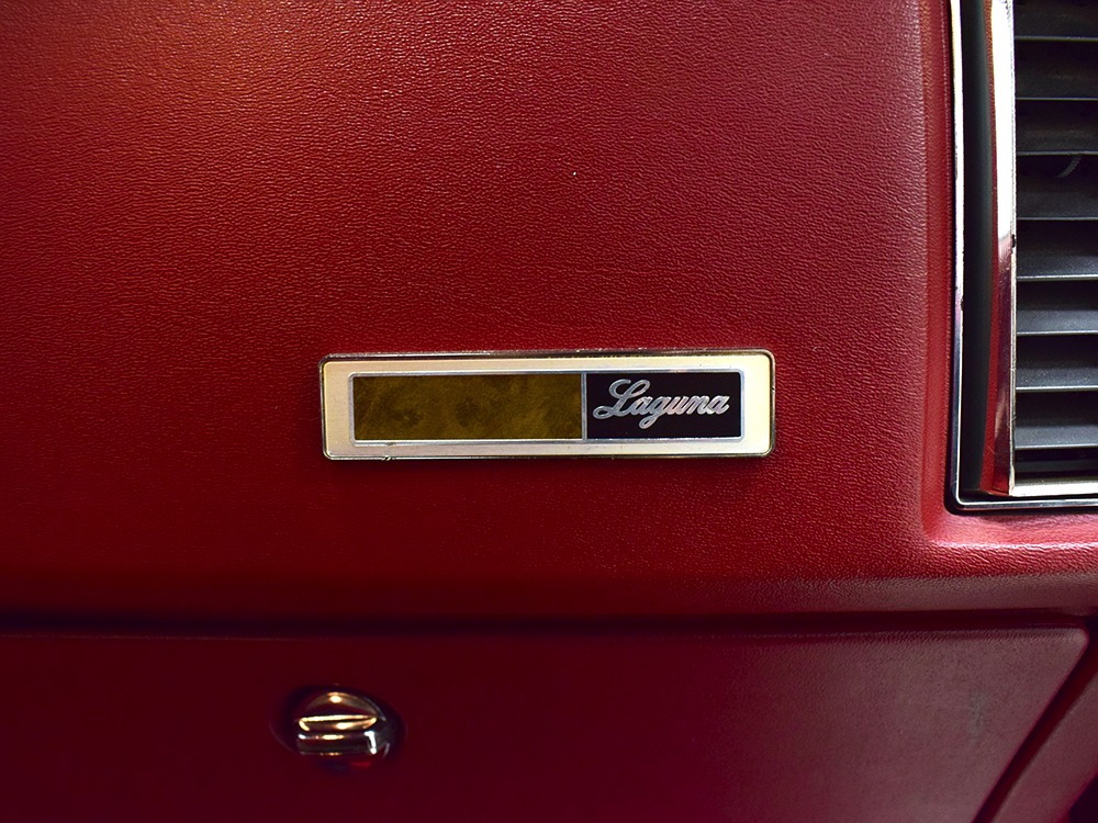 If you’re not familiar with Brian Corradi, look him up—he’s one of the winningest crew chiefs in the NHRA and is currently the crew chief for 3-time NHRA Top Fuel world champion Antron Brown. So when we tell you this is his personal car, built to re-create the Laguna he had in high school, you know it’s a special machine. Starting with an ultra-clean original Laguna, it was torn down to a bare frame and rebuilt from there. The goal was to create the car Brian would have driven in high school had he had the money to build it. That meant it would be modest, not a cost-no-object monster, and we’d say mission accomplished. Everything is beautifully finished, starting with the bodywork, which is probably better than new in every way. The original brown vinyl top was ditched in favor of a black top, but otherwise the bodywork remains 100% as delivered by the factory. The Laguna had an awesome molded-in front bumper that gives it a look that’s quite different from the Chevelle with which it shared bodywork. The burgundy paint is far deeper and more lustrous than the factory enamel and the sheetmetal underneath is laser-straight and expertly fitted. Those rub strips on the bumpers are impossible-to-find NOS pieces and all the original emblems were reinstalled, including the ‘350’ badges on the front fenders that don’t quite tell the whole story (more on that in a moment). We have to admit we don’t remember these cars being this good looking, because this thing turns heads!