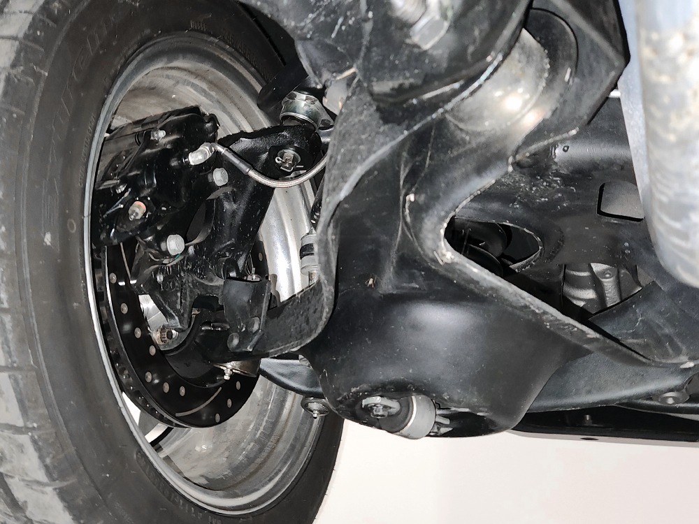 Power still comes from a small block Chevy V8, just like the ‘350’ emblems suggest. However, knowing the guy who built it you didn’t think it would be some 130 horsepower smog motor, did you? Instead it’s a 383 cubic inch stroker motor with about 500 horsepower on tap. Using his contacts in the big horsepower world, Brian created a tidy package that is docile enough to drive every day but which has also pushed this car into the low 12s on the drag strip. And again, tradition and the factory look were his guide, with Chevy Orange paint and reproduction decals on the air cleaner. However there’s also a big Holley double-pumper, an aluminum Edelbrock intake manifold, aluminum heads, and a beautiful set of long-tube headers to really help with the torque curve. There’s a serpentine belt drive for the accessories and yes, ladies, it has power steering, don’t worry. It always starts, has a cackling idle, and pulls the relatively lightweight Laguna around with genuine aggression. The TH350 3-speed automatic transmission snaps through the gears like a Marine coming to attention and it feels like a set of 3.55 gears in the 10-bolt rear end. The suspension and steering are stock, but the brakes have been upgraded to cross-drilled and vented Wilwood discs at all four corners, so no worries about keeping the power under control. You’ll also see the results of a frame-off restoration with ultra-clean floors, a detailed chassis, and that beautiful Flowmaster exhaust system with X-pipe that sounds spectacular. 18-inch Weld forged aluminum wheels are really the only clue that this isn’t a stock Laguna, and they carry fat 245/45/18 front and 295/45/18 rear performance radials.