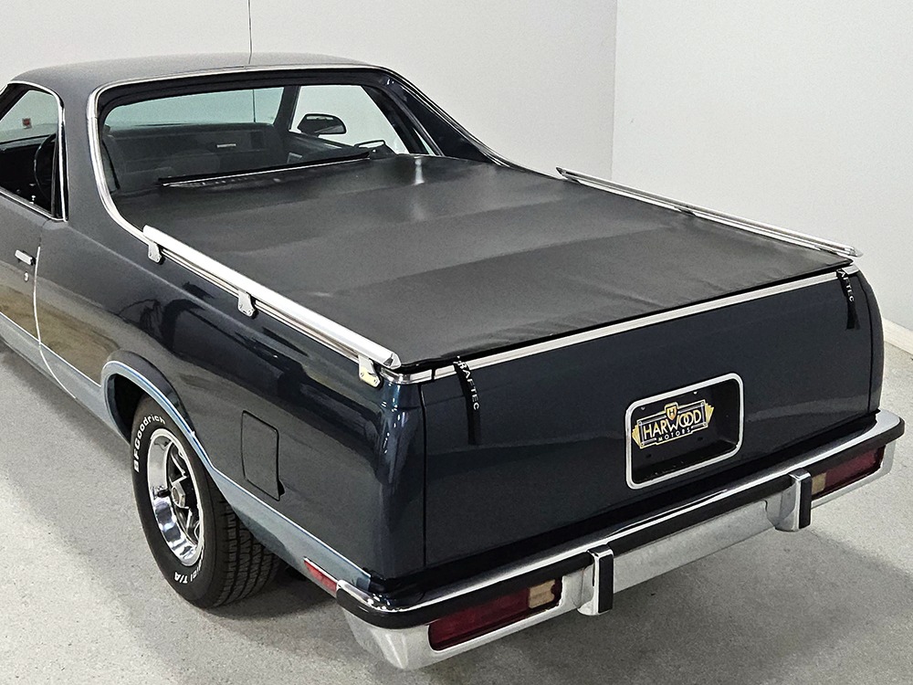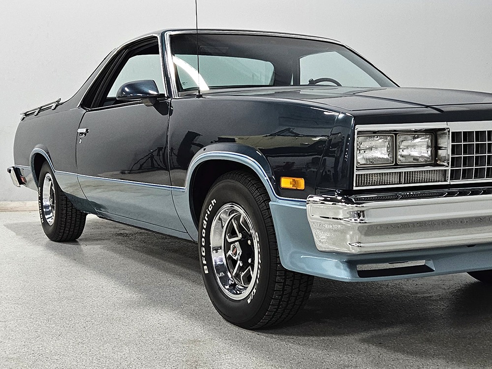Super clean GMC Caballero. Great colors, one high-quality repaint. Beautiful original interior loaded with options. Flush-mounted tonneau cover with bed rails, bedliner and mat. One of the nicest GM truck/cars we’ve seen, ready to enjoy!