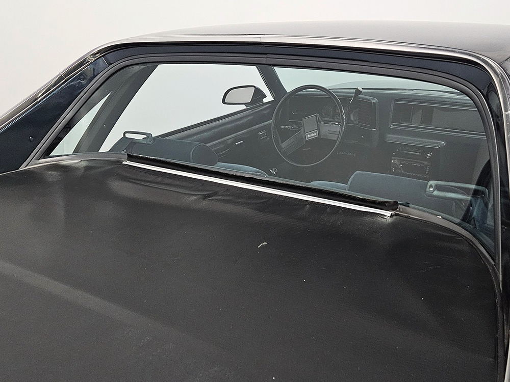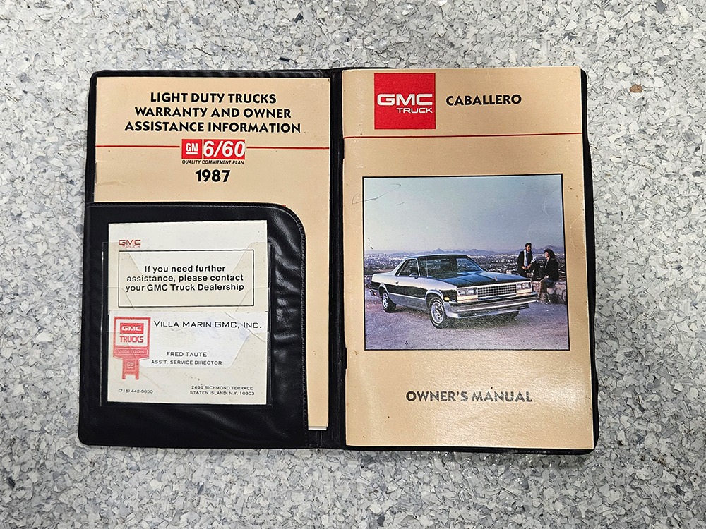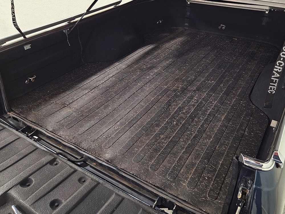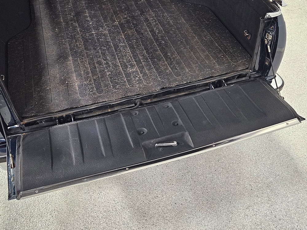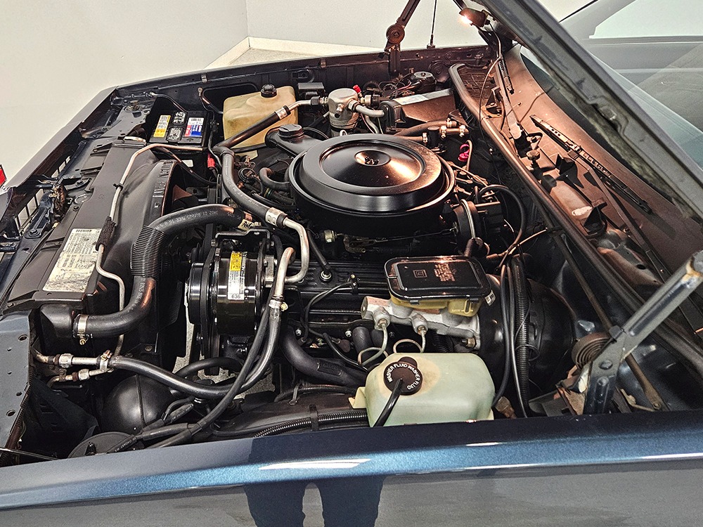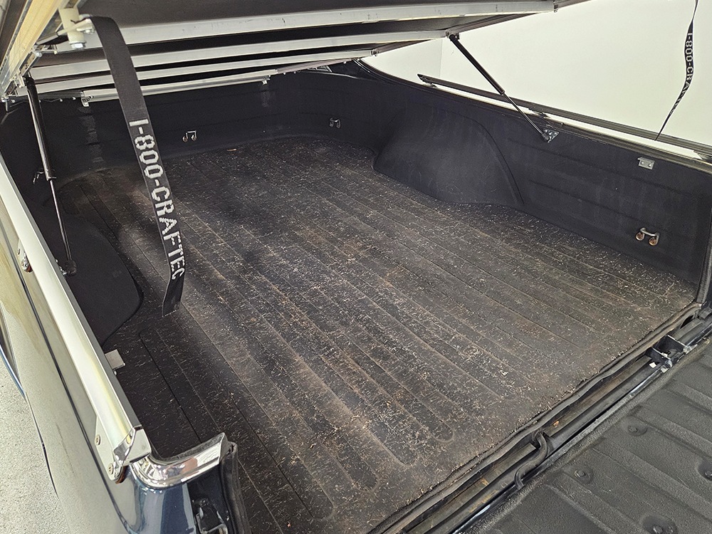 The dark blue interior is mostly original and in equally nice condition. We believe the carpets may have been replaced, but the seats, door panels, and dash pad are factory original and in amazing condition. Even the crack-prone steering wheel is 100% intact. A full set of gauges, including a tachometer, monitors the engine, with other options including cold factory A/C, power windows and locks, cruise control, remote mirrors, and a tilt steering column. The original Delco radio is gone, replaced by a Pioneer AM/FM/CD head unit that’s probably a nice improvement over stock, but that appears to be the lone modification. The seats are still plush and comfortable, the headliner isn’t sagging (a common problem) and the factory spare is still stashed behind the passenger’s seat. Heavy-duty rubber floor mats protect the carpets and even the little plastic brackets that hold the seat belts to the seat backs aren’t cracked and broken. Someone really loved this Caballero!
