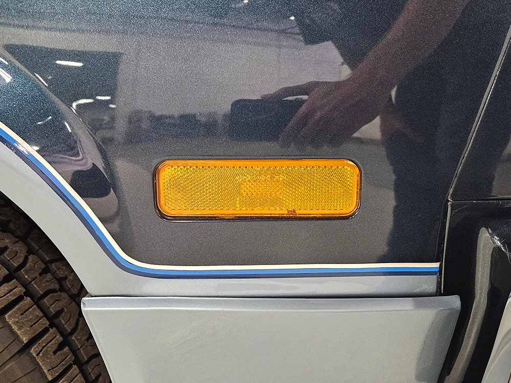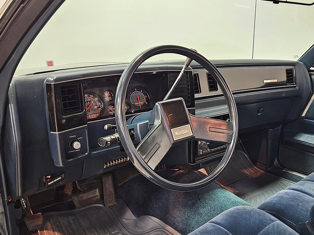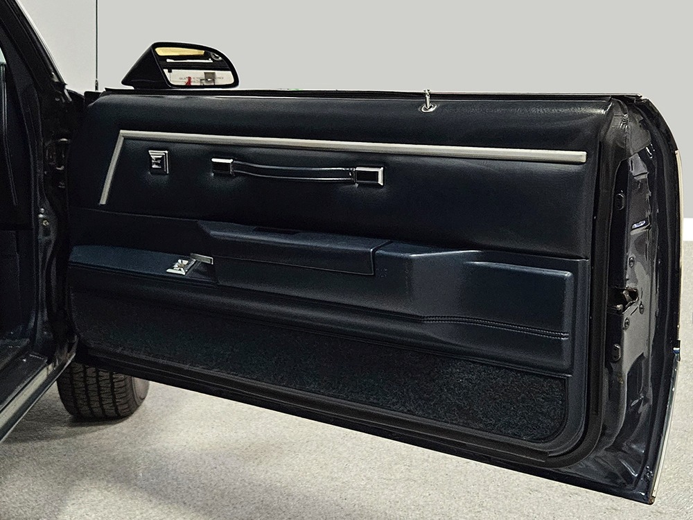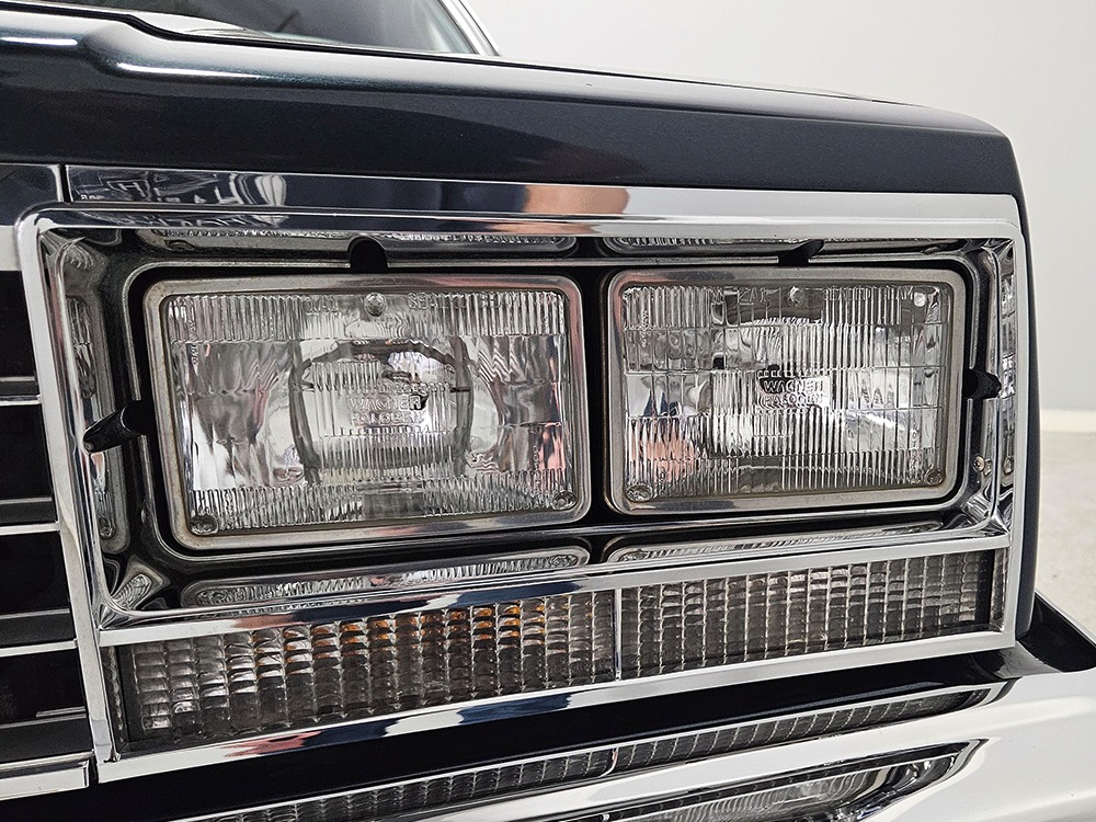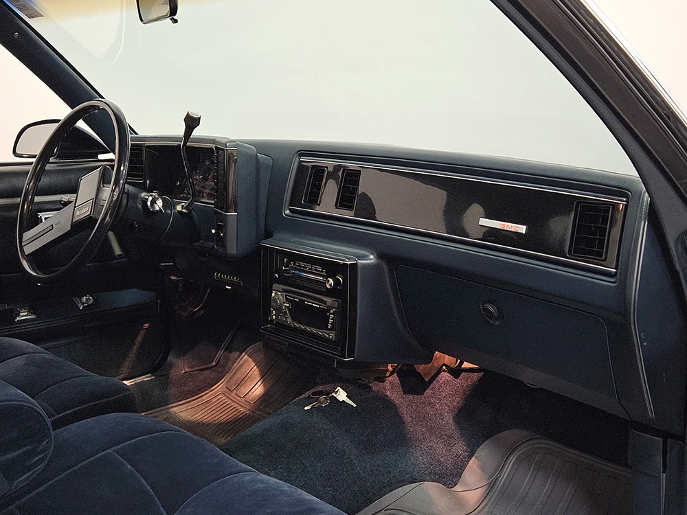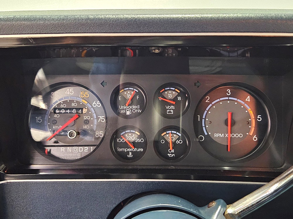 The dark blue interior is mostly original and in equally nice condition. We believe the carpets may have been replaced, but the seats, door panels, and dash pad are factory original and in amazing condition. Even the crack-prone steering wheel is 100% intact. A full set of gauges, including a tachometer, monitors the engine, with other options including cold factory A/C, power windows and locks, cruise control, remote mirrors, and a tilt steering column. The original Delco radio is gone, replaced by a Pioneer AM/FM/CD head unit that’s probably a nice improvement over stock, but that appears to be the lone modification. The seats are still plush and comfortable, the headliner isn’t sagging (a common problem) and the factory spare is still stashed behind the passenger’s seat. Heavy-duty rubber floor mats protect the carpets and even the little plastic brackets that hold the seat belts to the seat backs aren’t cracked and broken. Someone really loved this Caballero!