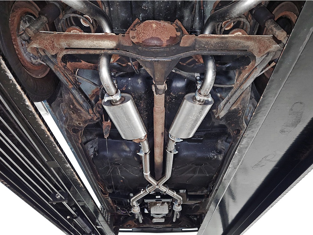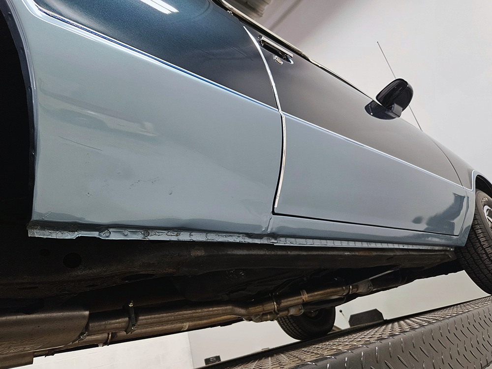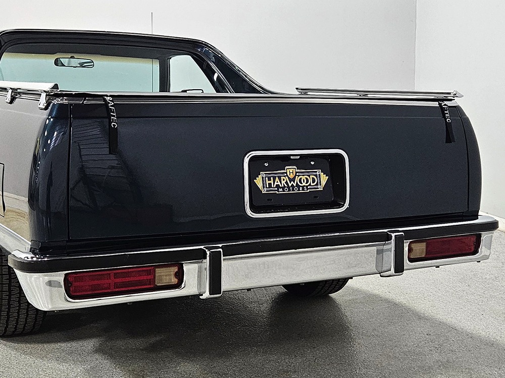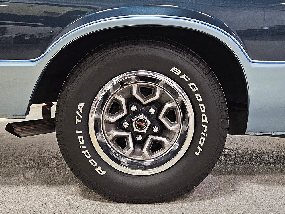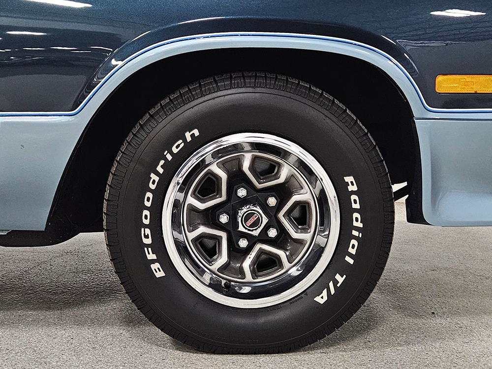 Power comes from GM’s reliable 5.0 liter V8—that’s 305 cubic inches to you old school guys. It runs properly with easy starts, a nice idle, and a great low-key personality that makes the Caballero feel luxurious instead of utilitarian. For the most part, it’s stock, although someone has added a set of long-tube headers and a mellow-sounding Borla stainless dual exhaust with X-pipe which probably adds a little power. Otherwise, it remains completely stock so reliability is uncompromised. The Caballero also received GM’s excellent 700R4 4-speed automatic transmission with a tall overdrive gear, so this is an outstanding cruiser that is always relaxed on the highway and actually pulls down decent fuel economy. The floors underneath are extremely clean and solid with no rust issues, as are the rockers—this car did not spend its time in the snow and salt. A standard GM 10-bolt rear end holds up the back, augmented by a set of air shocks that means the Caballero can still be used as intended. We believe there are 3.08 gears inside, a good compromise between eager performance and economy. Finally, it sits on a set of handsome Rally wheels with a recent set of 225/70/14 BFGoodrich T/A radials.
