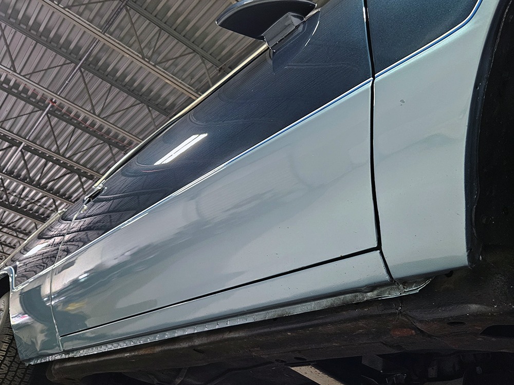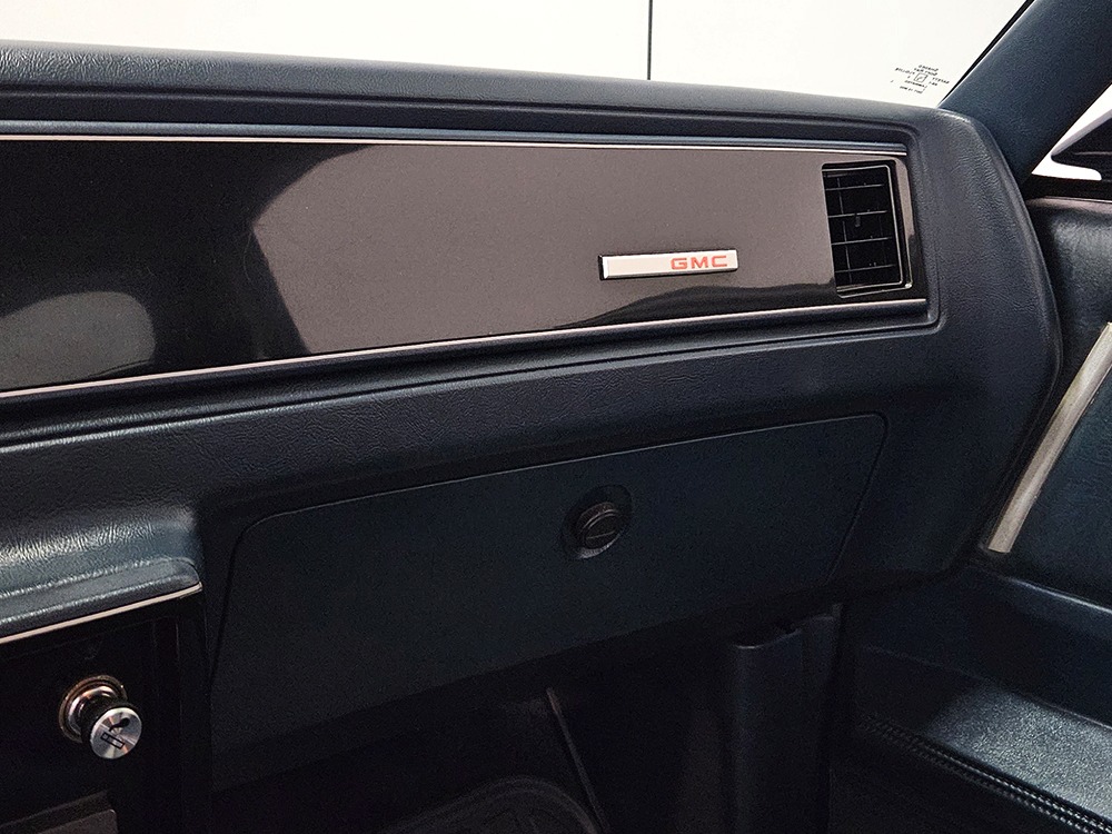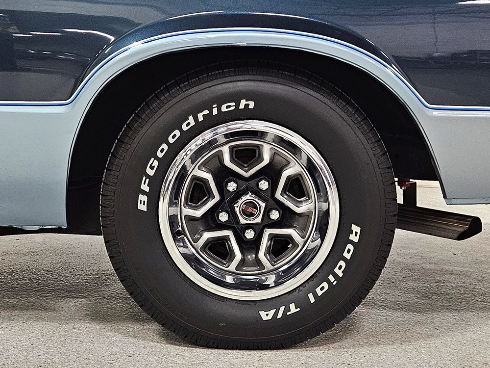 The Caballero was simply GMC’s version of the El Camino and aside from some minor trim differences, it’s identical in every way. That’s a good thing, because the handsome good looks remain firmly in place and this is one of the nicer Caballeros we’ve seen. It obviously didn’t spend its life in the north where winters are harsh, because it’s extremely clean top and bottom. A few years ago it was repainted in its original two-tone blue, a great combination that looks timeless instead of dated like a lot of its siblings. Correct stripes were affixed where the two colors meet, and the bodywork underneath is very nice with no ripples or signs of bondo abuse. Just look down the flanks and you’ll see laser-straight sheetmetal. There’s a beautiful chrome grille up front that might be an NOS piece, and excellent bumpers that remain shiny and straight. Accessory bed rails and a flush-mount tonneau cover help with your cargo options, and the bed itself has a spray-in bed liner and a durable rubber mat for protection.
