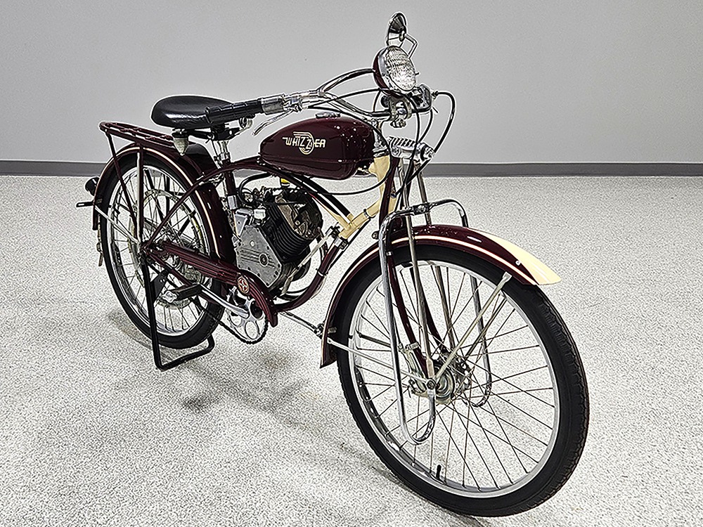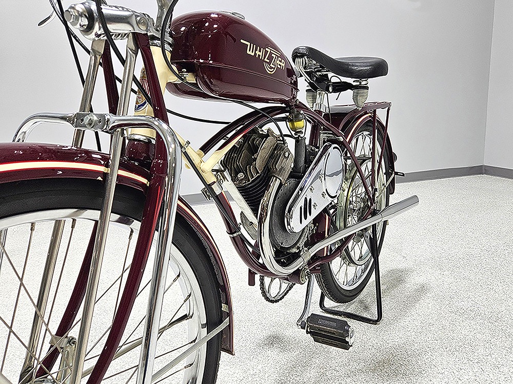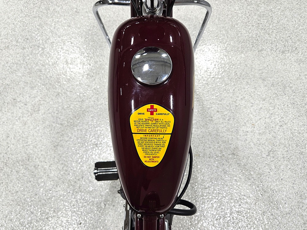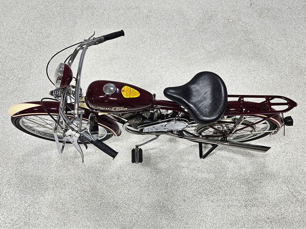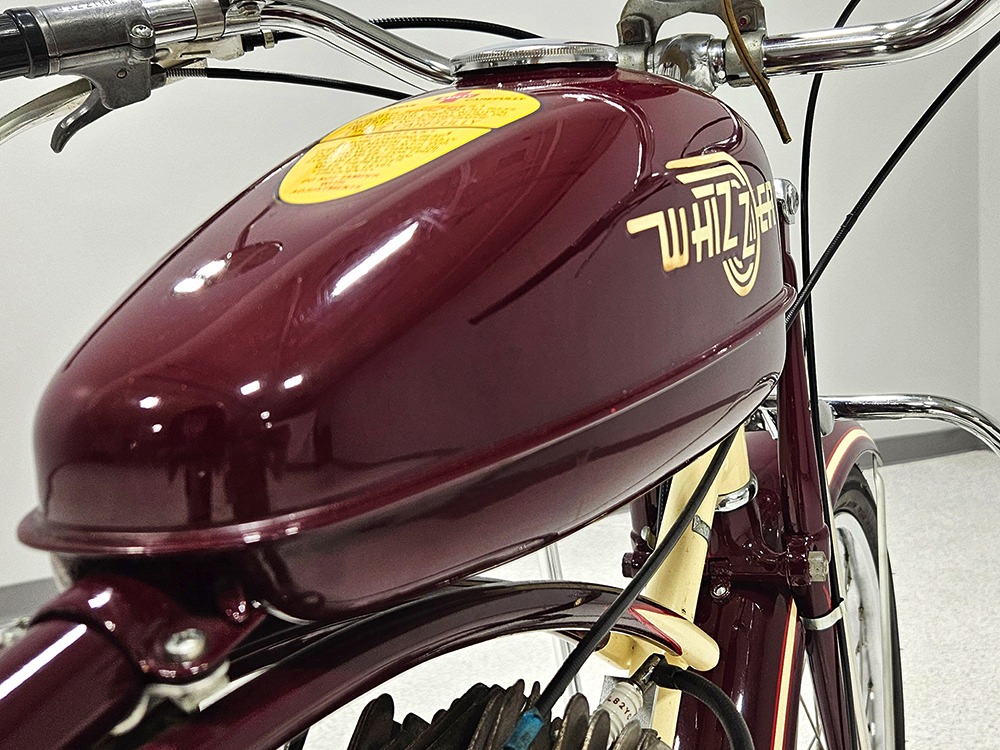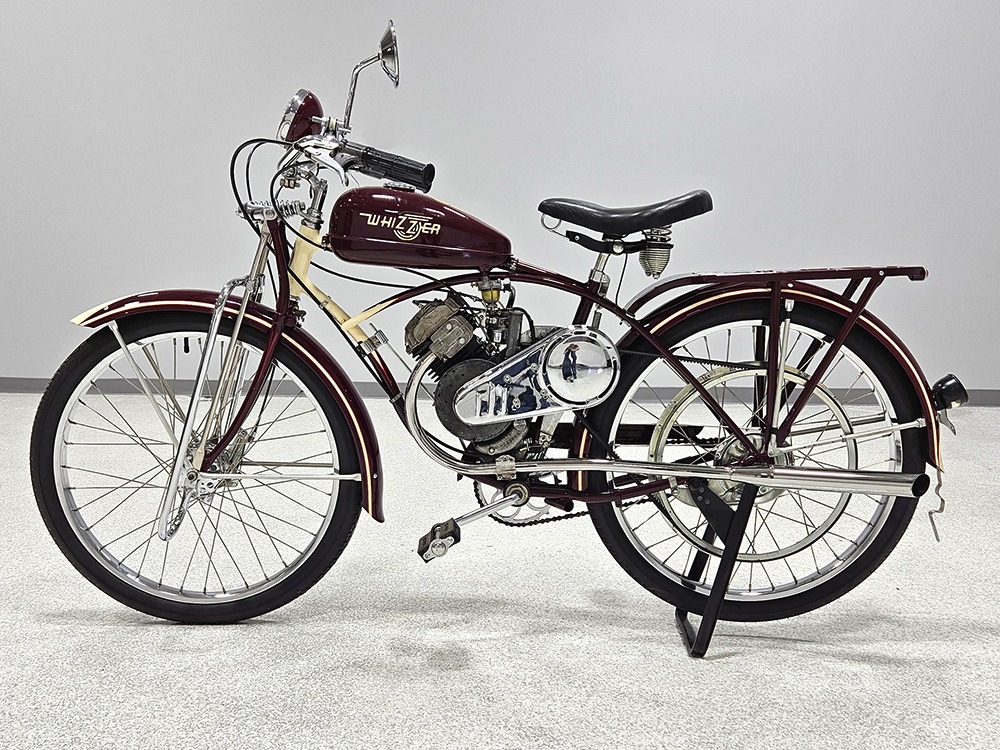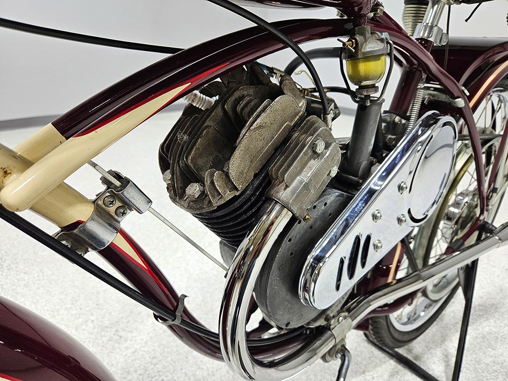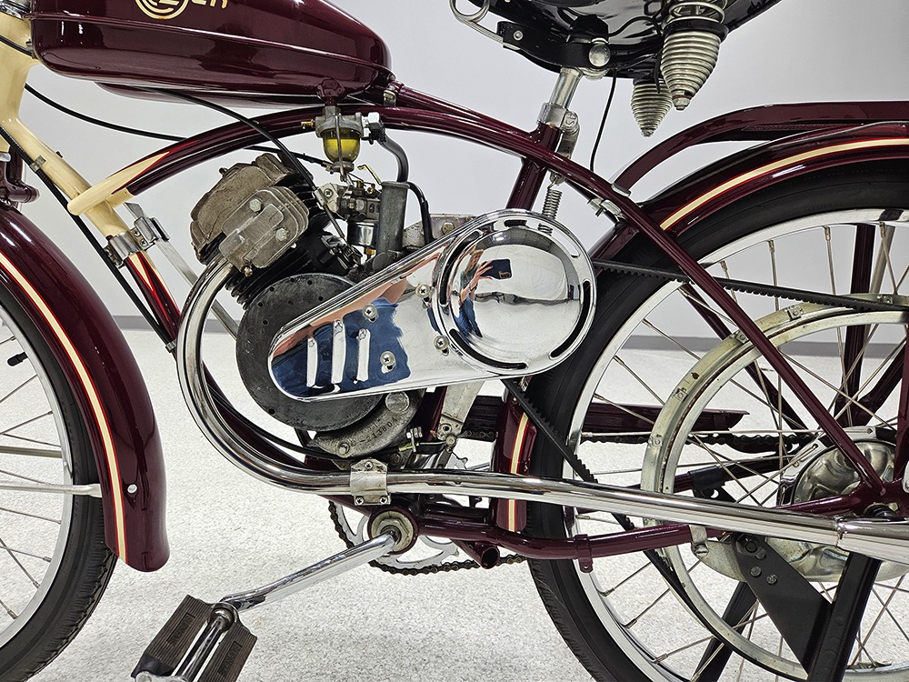 Restored by Memory Cycles in Toledo, OH Correct 138cc single cylinder. Schwinn bicycle with Whizzer motor kit installed. Very nice restoration, runs and rides properly. Headlight present but not hooked up, everything else is as it should be. Accessory rack, mirror, and front fork guards. Very pretty.
