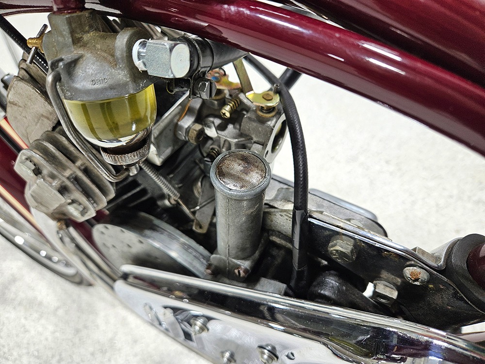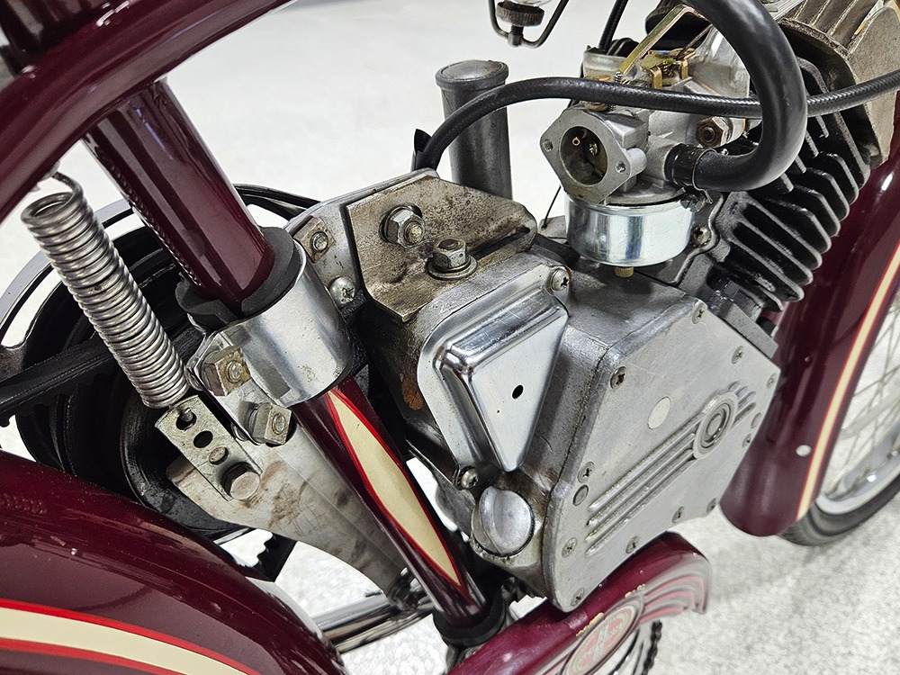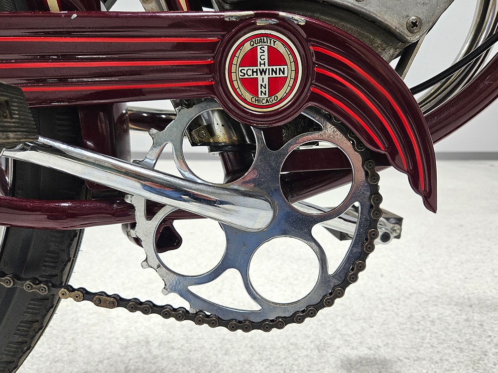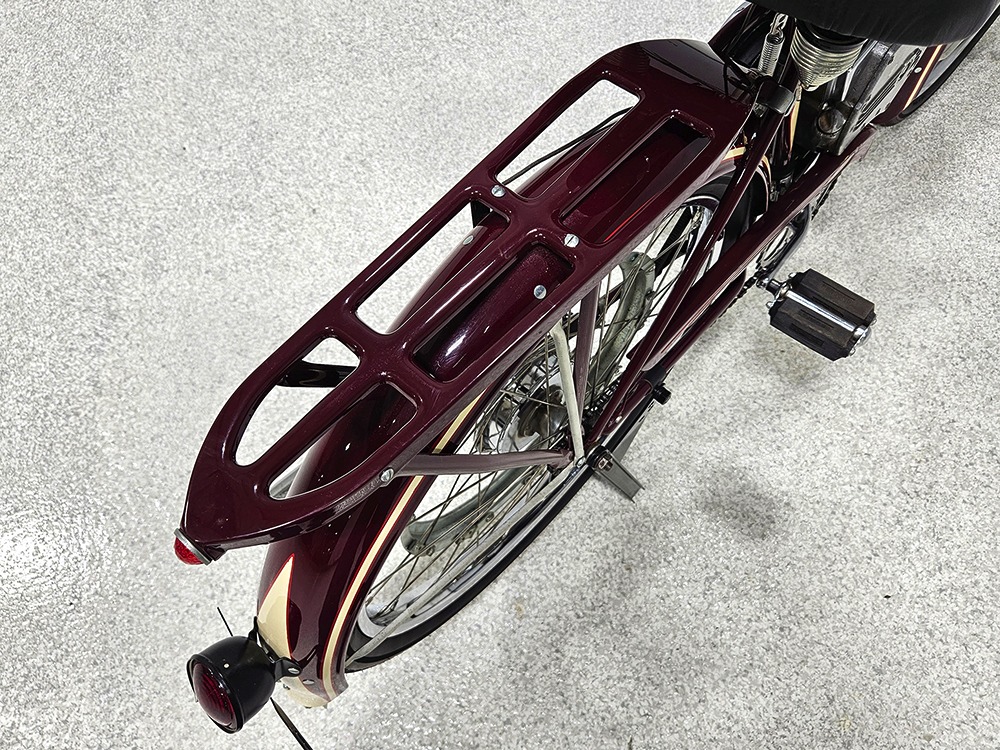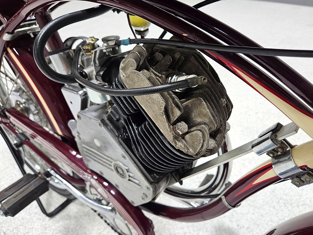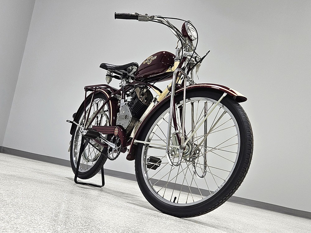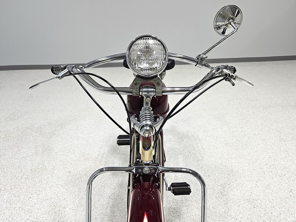 Restored by Memory Cycles in Toledo, OH Correct 138cc single cylinder. Schwinn bicycle with Whizzer motor kit installed. Very nice restoration, runs and rides properly. Headlight present but not hooked up, everything else is as it should be. Accessory rack, mirror, and front fork guards. Very pretty.