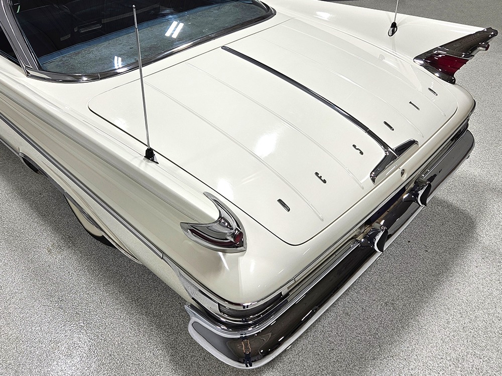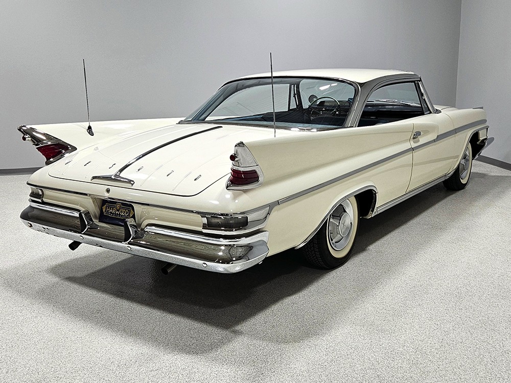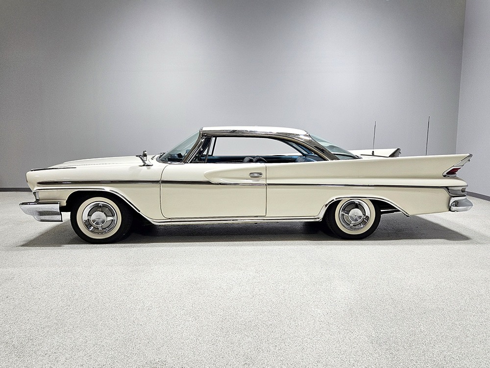 Final year of Desoto production. Only 911 2-door hardtops built. Strong-running 361 cubic inch V8 with TorqueFlite automatic. Power steering & power brakes. One repaint, original interior. Rare Highway Hi-Fi. Exner fins from the end of an era!