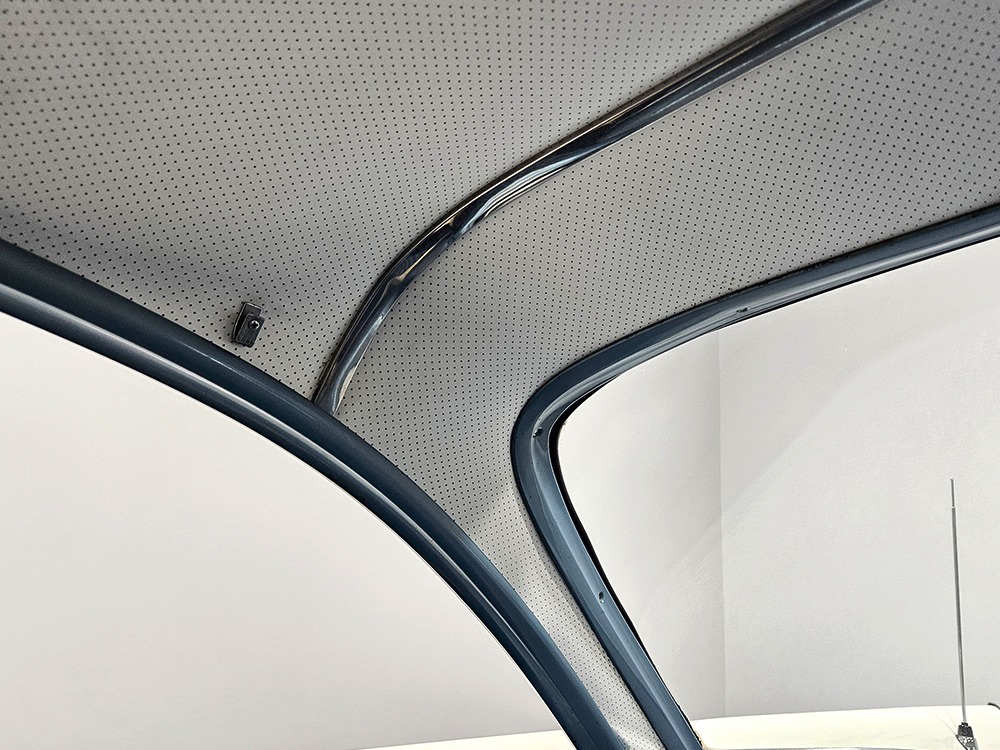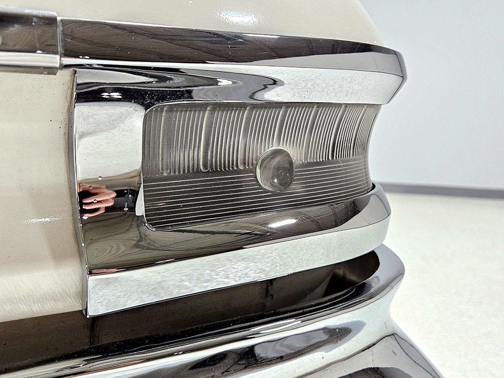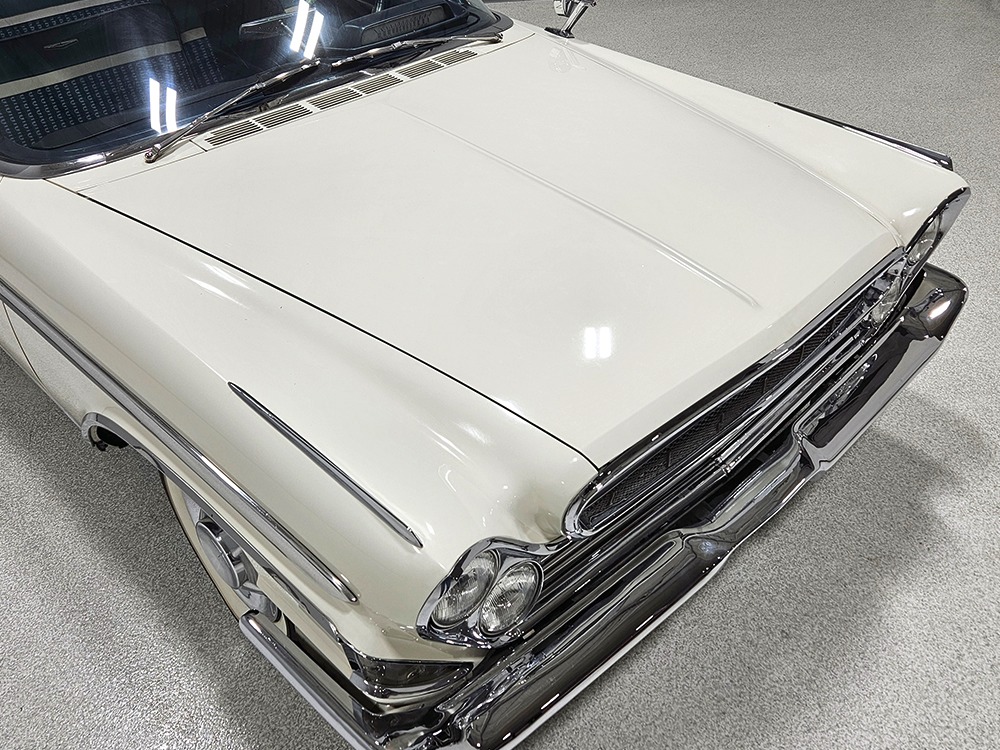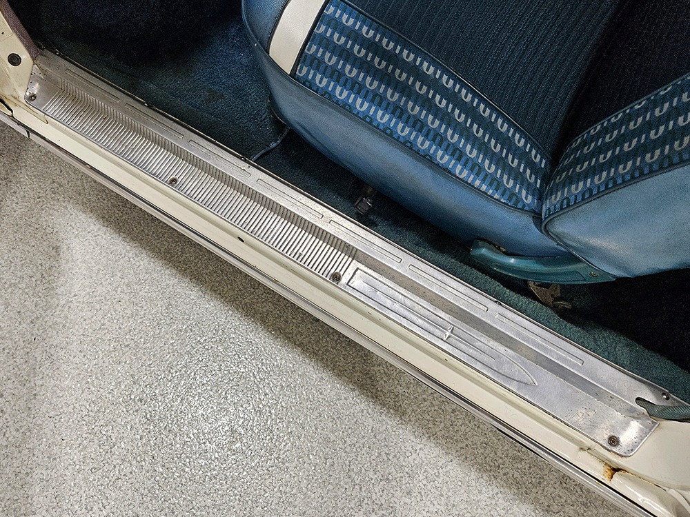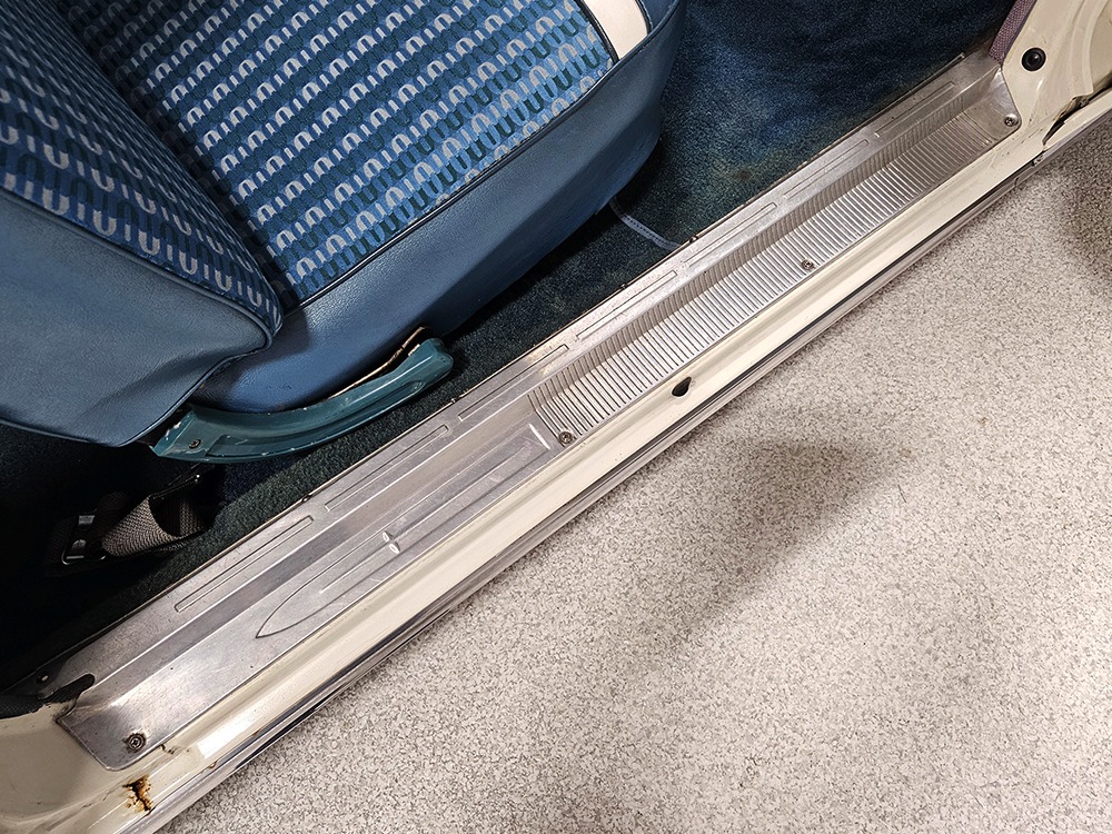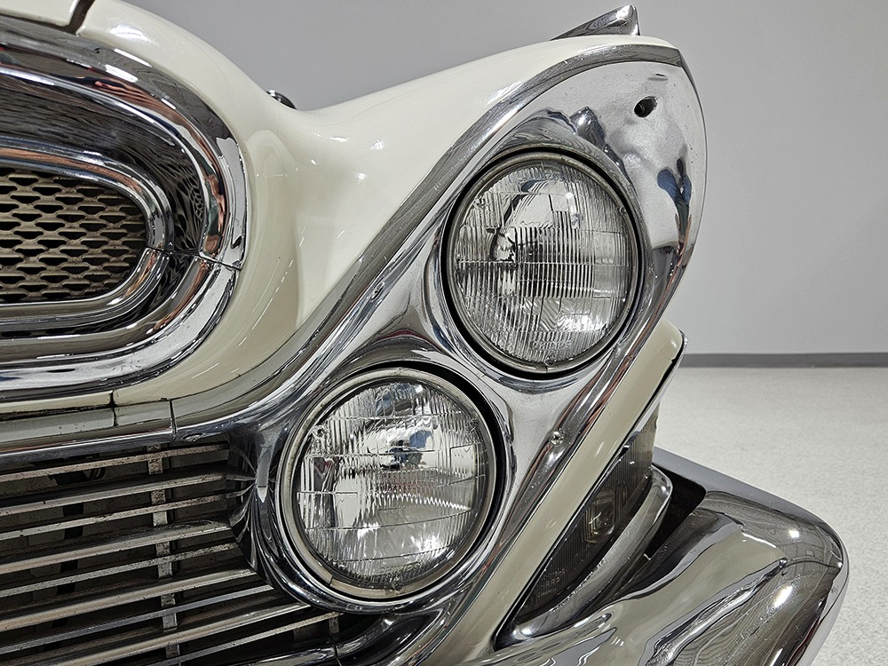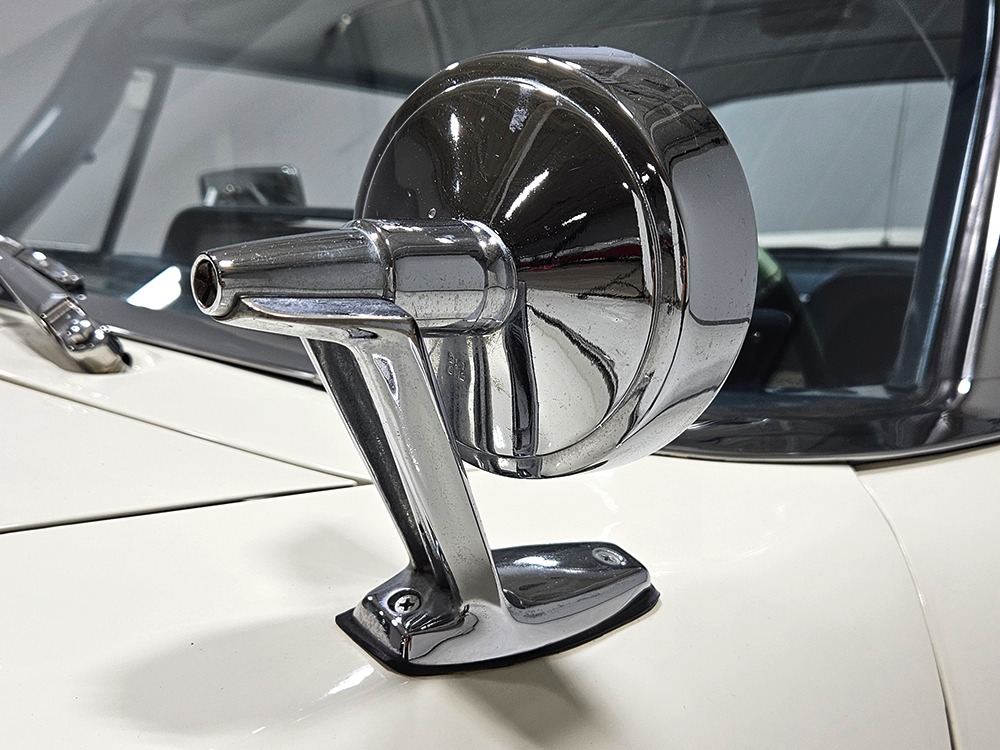 The Desoto guys must have known the end was coming because they didn’t even bother naming the cars in 1961. It was simply “Desoto hardtop” and “Desoto sedan.” Production ended early, with only 911 of these handsome 2-door hardtop coupes being built. Styling kept a lot of Virgil Exner’s brilliant lines, adding some trim to differentiate the ’61s from the ‘60s, but make no mistake, this big coupe looks dramatic anywhere it goes. This is a mostly original car with one older repaint in Glacier White, which is the factory color. The paint job is holding up rather well, with a soft shine that could almost pass for original enamel. There’s straight bodywork underneath with good panel alignment and doors that snick shut easily, a hallmark of Mopars from this period. And, of course, chrome and stainless trim is a big deal on this car, with most of the brightwork being very good to excellent—only the rear bumper shows some flaking chrome. Twin antennas on the fins is a cool touch, and we’re pretty sure you won’t see another 1961 Desoto anywhere you go. This is a cool car.