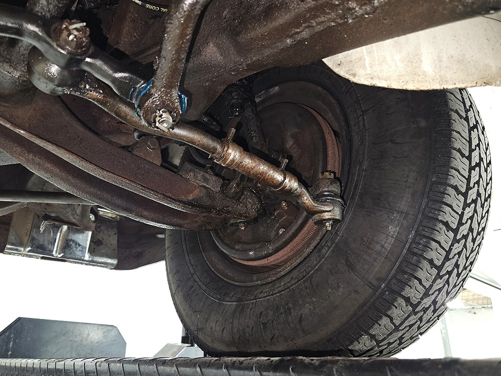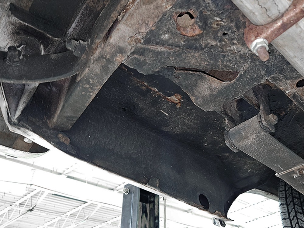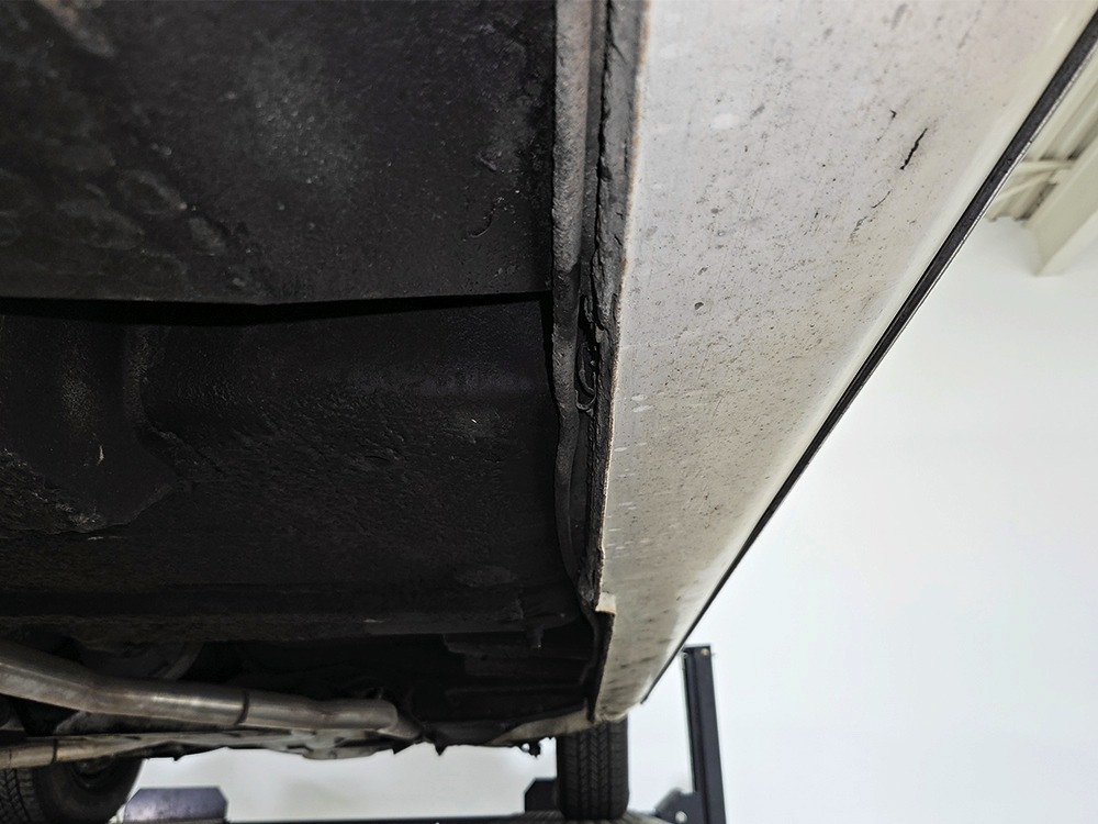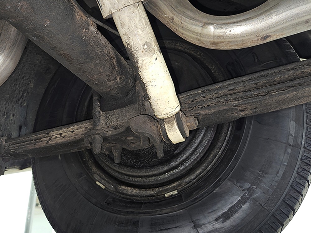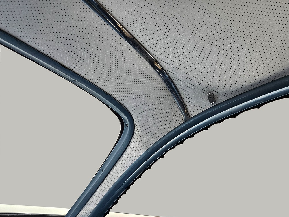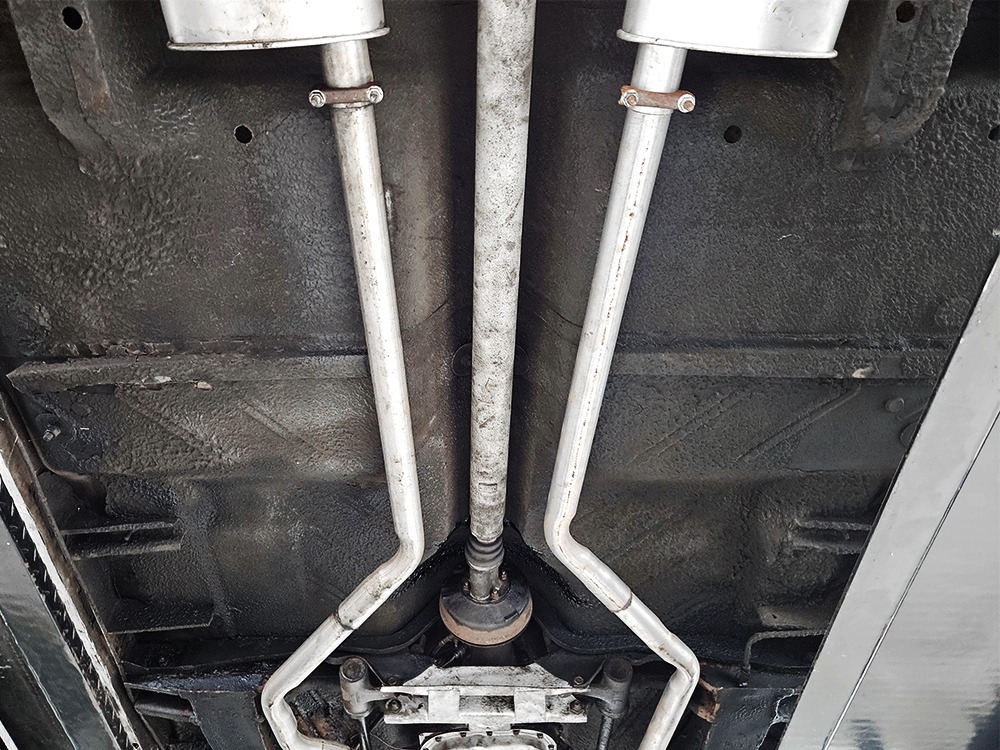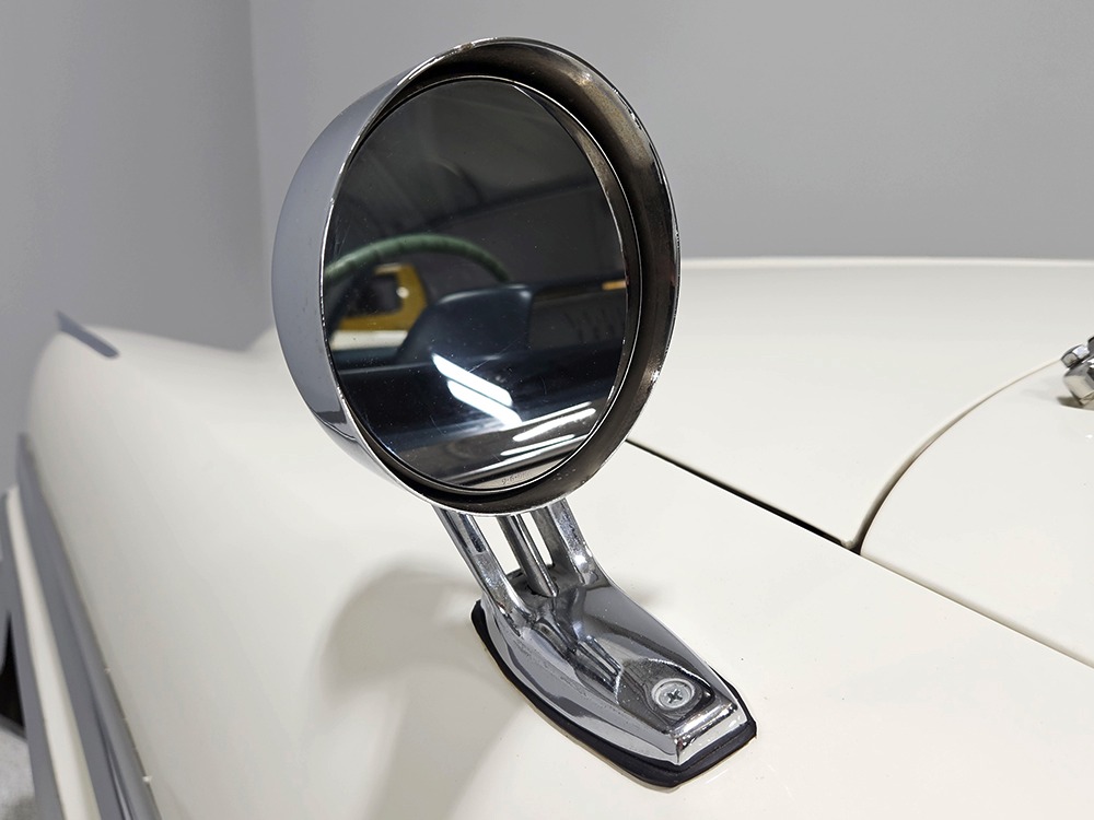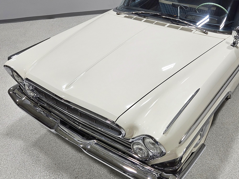 The Desoto is powered by a 361 cubic inch V8 making 265 horsepower and a rather stout 370 lb-ft. of torque, making this massive car feel surprisingly swift in today’s traffic. It starts easily, idles so smooth you almost can’t feel it, and pulls well at almost any speed. It’s quiet and unobtrusive thanks to a stock-style exhaust system, and the engine bay itself is nicely detailed with factory finishes and equipment. The engine block itself is silver, there’s a massive air cleaner up top, and plenty of room for easy service access, which is always nice. You’ll note that there’s an alternator instead of a generator, an innovation that Chrysler embraced long before the other big names. The TorqueFlite 3-speed automatic offers smooth shifts and with the 361 V8 pulling it around, this car feels lighter than it is. We believe there are 3.23 gears out back, helping with its effortless feel, and thanks to that torsion bar front suspension, ride quality is excellent. Looking underneath, you’ll note that this massive Desoto is a unit-body car, and all the critical structural elements are completely solid, including the floors, rockers, and trunk pan. A newer dual exhaust system and gas tank make it ready-to-roll, and there are modern air shocks out back to help keep this big coupe on an even keel. Stopping power is good for its age, and the 14-inch wheels and factory hubcaps are wrapped in relatively recent 215/75/14 wide whitewall radials.