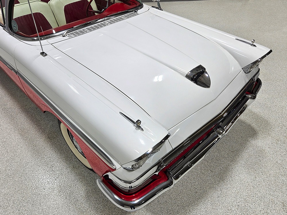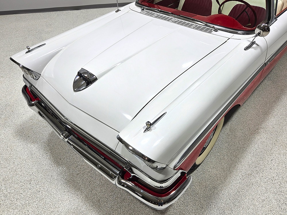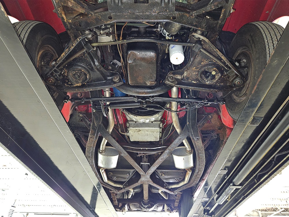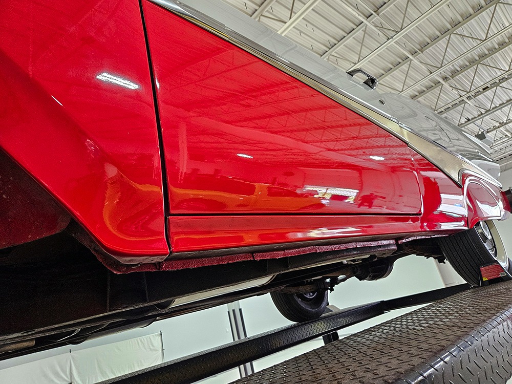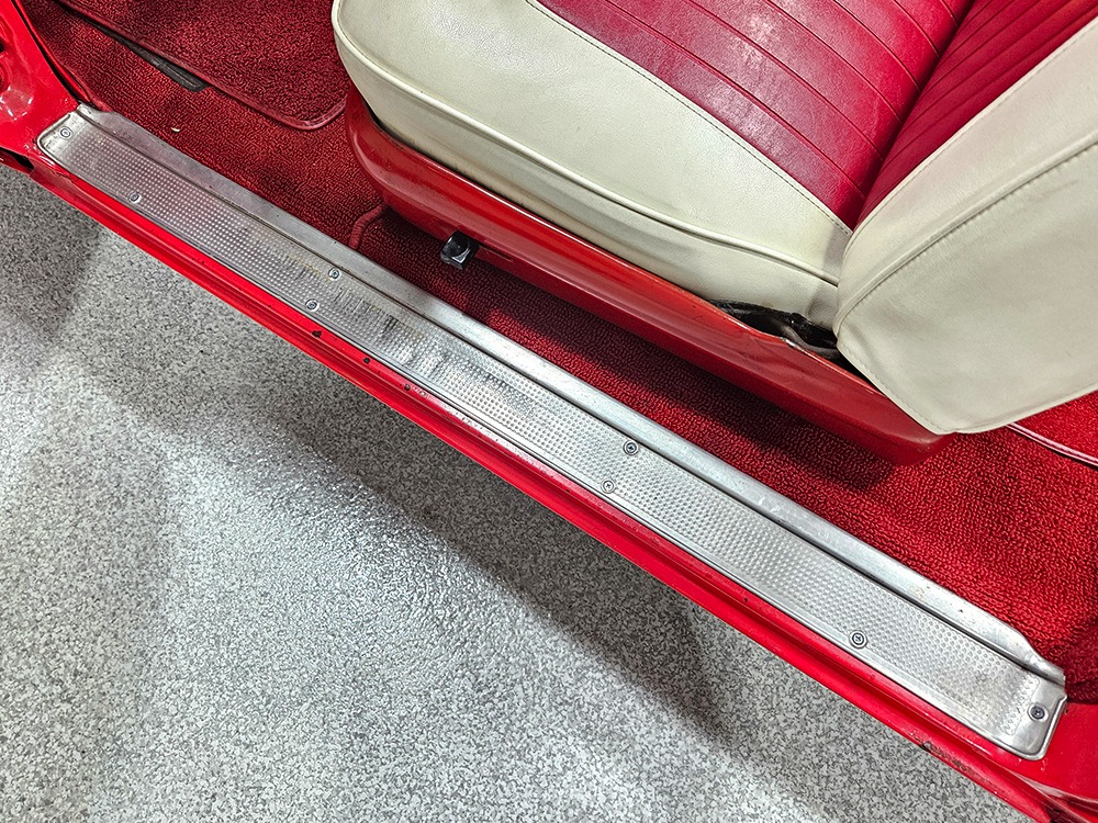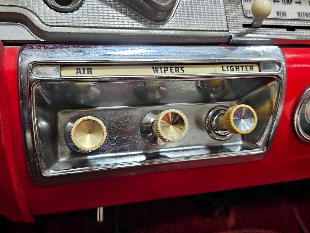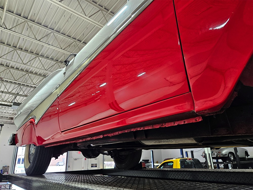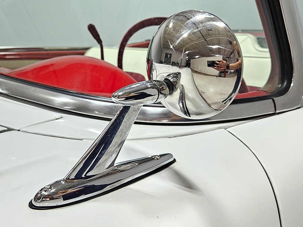 It sports correct red and white vinyl upholstery that matches the bodywork and adds to the Retractable’s upscale image. Most importantly, the top has been recently serviced, and all seven motors, four lift jacks, a series of relays, ten limit switches, ten solenoids, four locking mechanisms for the roof and two locking mechanisms for the trunk lid, and a total of 610 feet of wiring are all in excellent health. Touch the rocker switch under the dash to release the header then pull the knob and the whole beautiful mechanical system springs into action and makes the top disappear in about 30 seconds. The only place you might need to compromise is in the trunk, where there’s a lot of space with the top up but only a small cooler-sized box for luggage if you intend to travel with the top down.