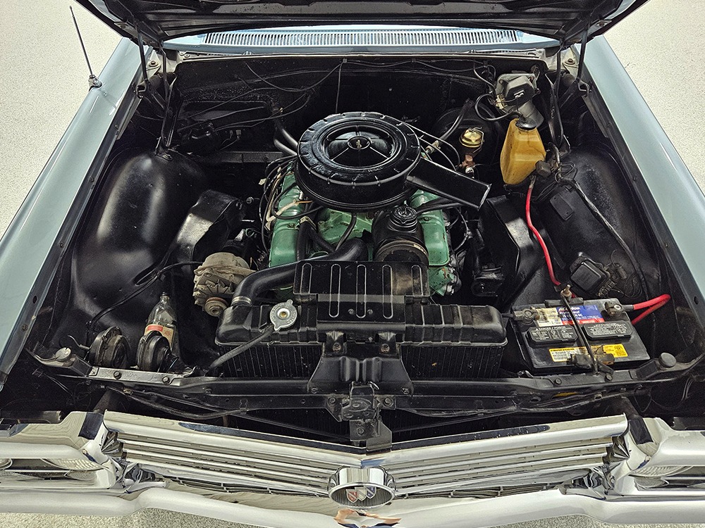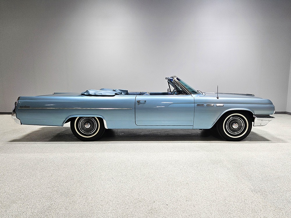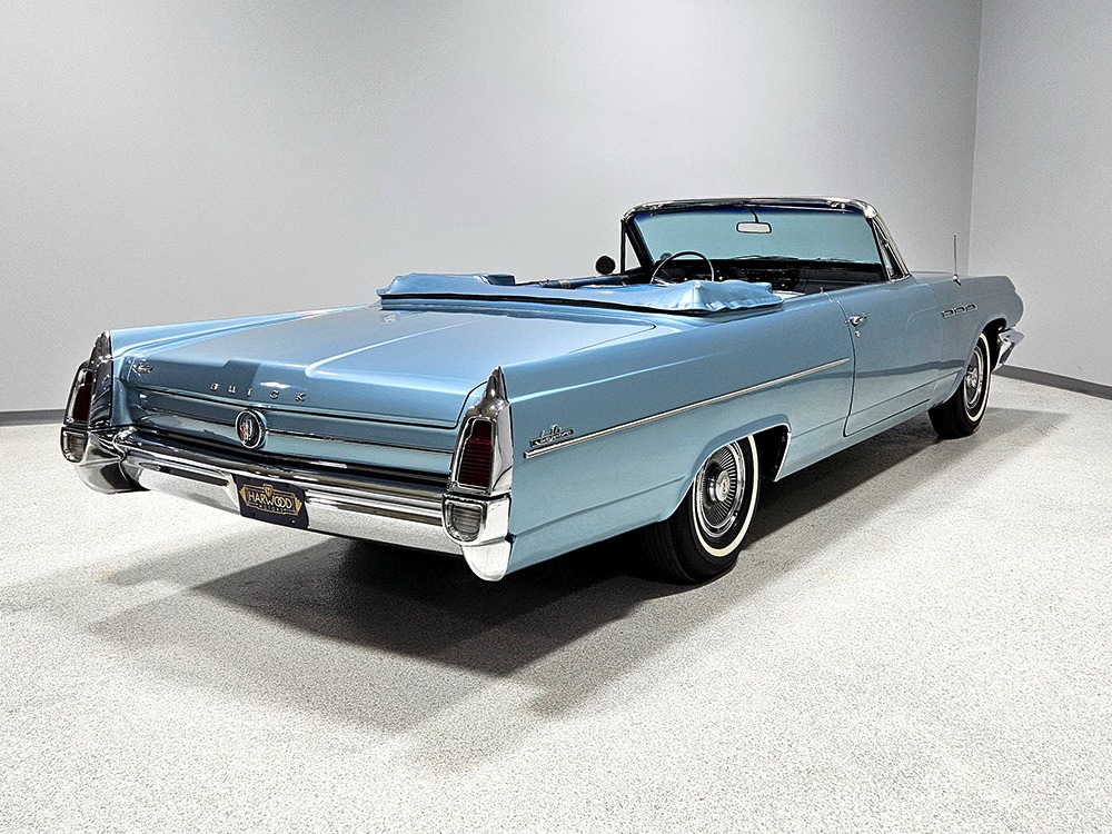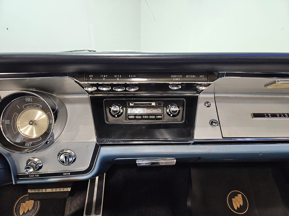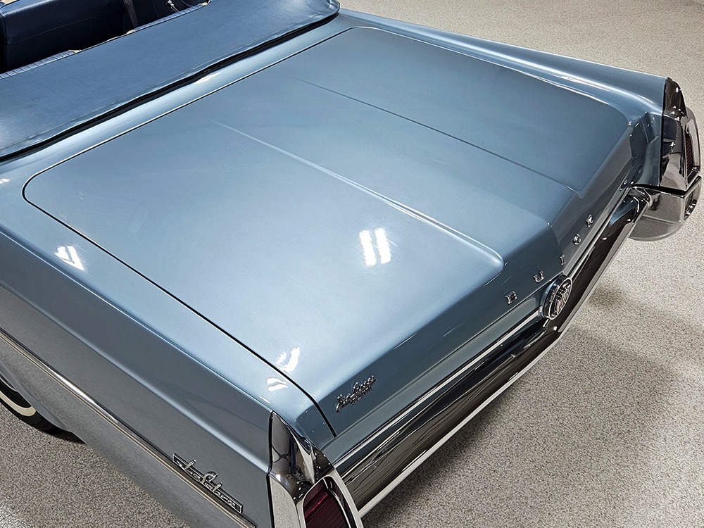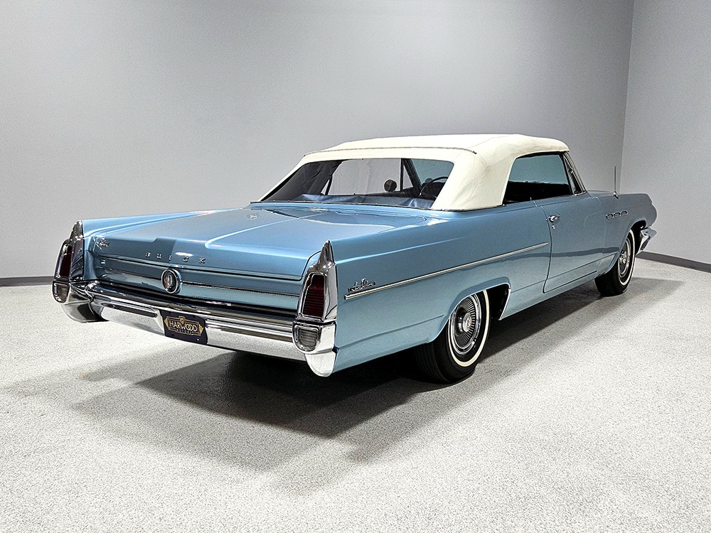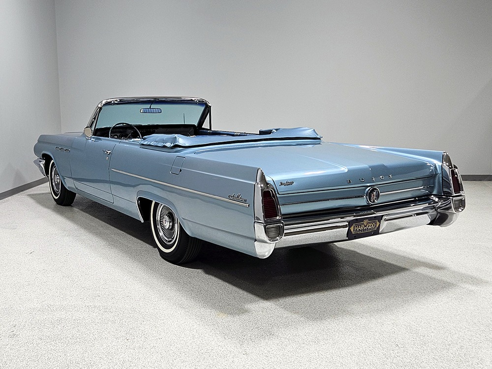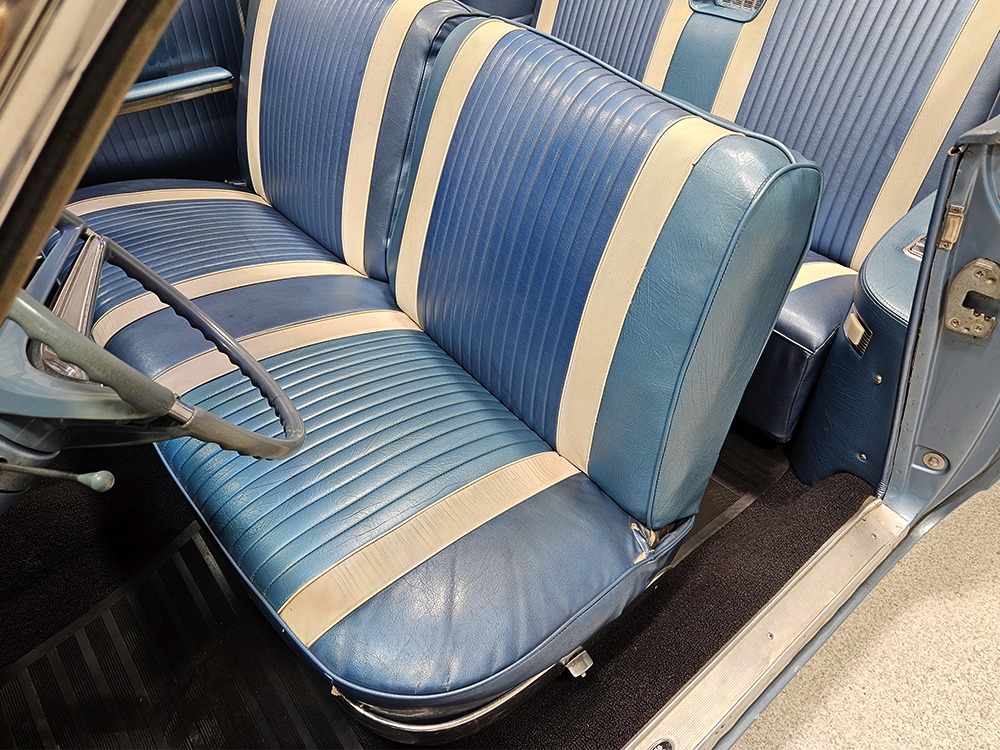Buick knew who they were in 1963. The full-sized lineup of cars included some serious luxury backed by performance that was quiet and understated, yet impressive. The Lesabre was the mid-range model, offering full-sized comfort without the full-sized luxury price. This handsome convertible was exactly what thousands of bank presidents and senior advertising execs drove in 1963—upscale yet not excessively flashy. In this car’s case, the paint is an older repaint in the original Marlin Blue and it still shows rather well. Bodywork is quite good and the doors close with a solid sound that you’d all but forgotten was possible on a convertible. As a car that has never been fully apart, it has a robust feeling that’s difficult to restore back into a car once it’s been disassembled. There’s a nice shine to the finish, the body gaps are quite good, and the icy blue suits the large ragtop rather well. There’s still plenty of chrome on a 1963 Buick, all of which is in excellent condition—even the faux “venti-ports” on the front fenders show minimal pitting, which is very unusual. For a mostly original car, it's in fantastic shape!