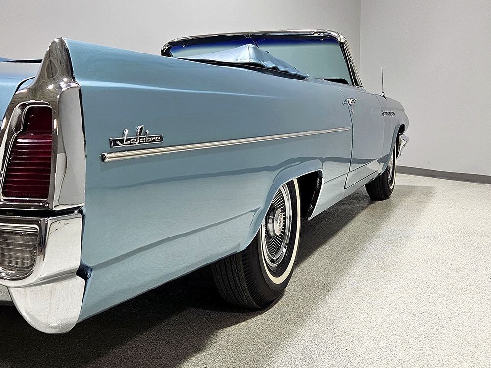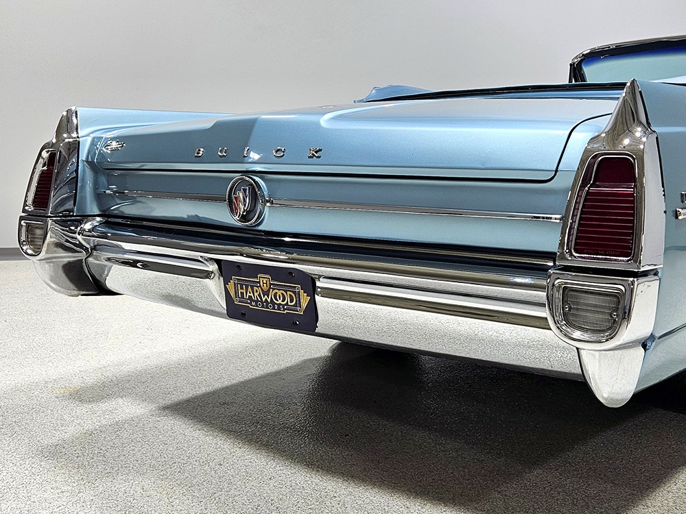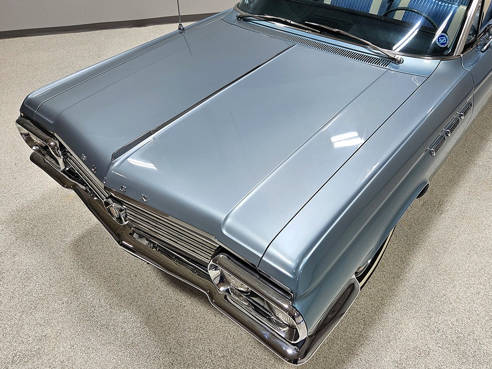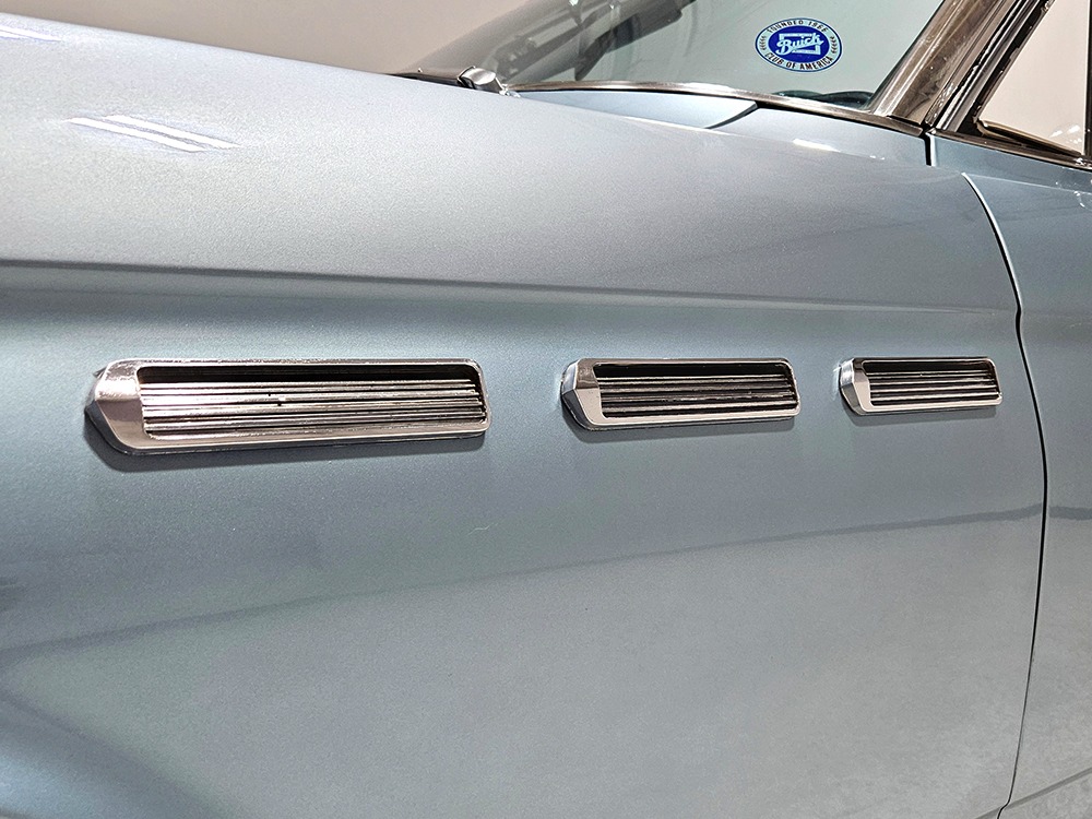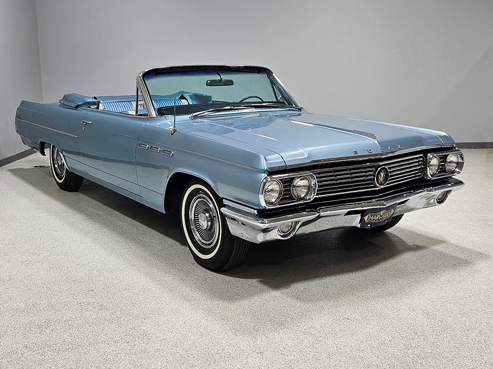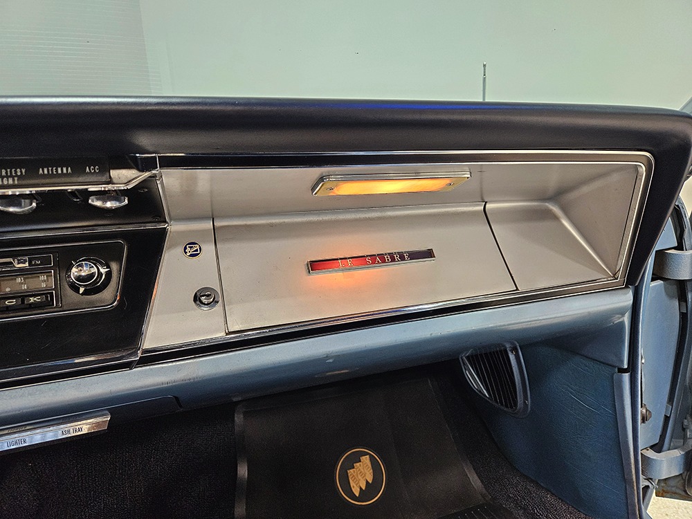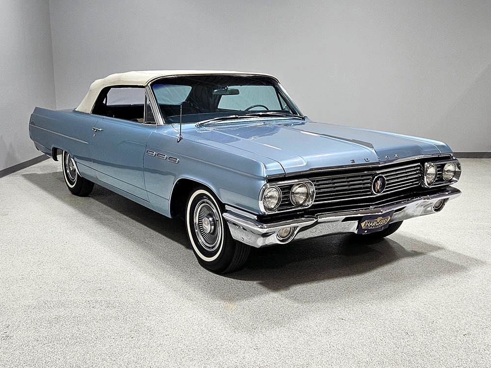 Buick knew who they were in 1963. The full-sized lineup of cars included some serious luxury backed by performance that was quiet and understated, yet impressive. The Lesabre was the mid-range model, offering full-sized comfort without the full-sized luxury price. This handsome convertible was exactly what thousands of bank presidents and senior advertising execs drove in 1963—upscale yet not excessively flashy. In this car’s case, the paint is an older repaint in the original Marlin Blue and it still shows rather well. Bodywork is quite good and the doors close with a solid sound that you’d all but forgotten was possible on a convertible. As a car that has never been fully apart, it has a robust feeling that’s difficult to restore back into a car once it’s been disassembled. There’s a nice shine to the finish, the body gaps are quite good, and the icy blue suits the large ragtop rather well. There’s still plenty of chrome on a 1963 Buick, all of which is in excellent condition—even the faux “venti-ports” on the front fenders show minimal pitting, which is very unusual. For a mostly original car, it's in fantastic shape!