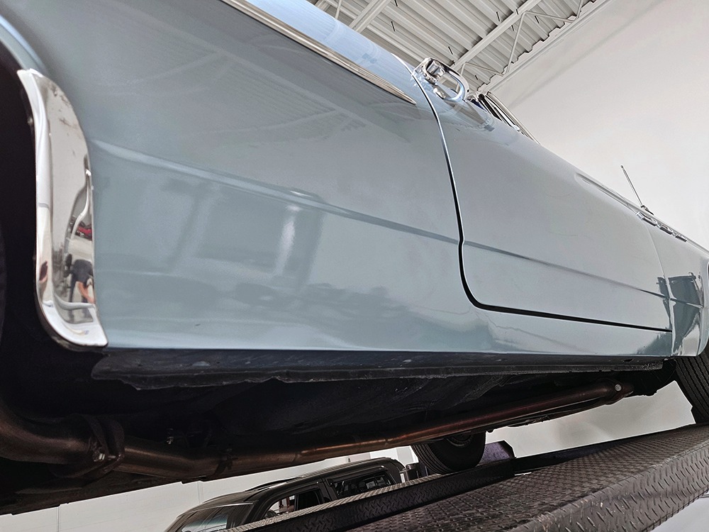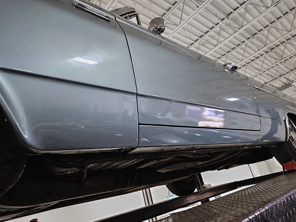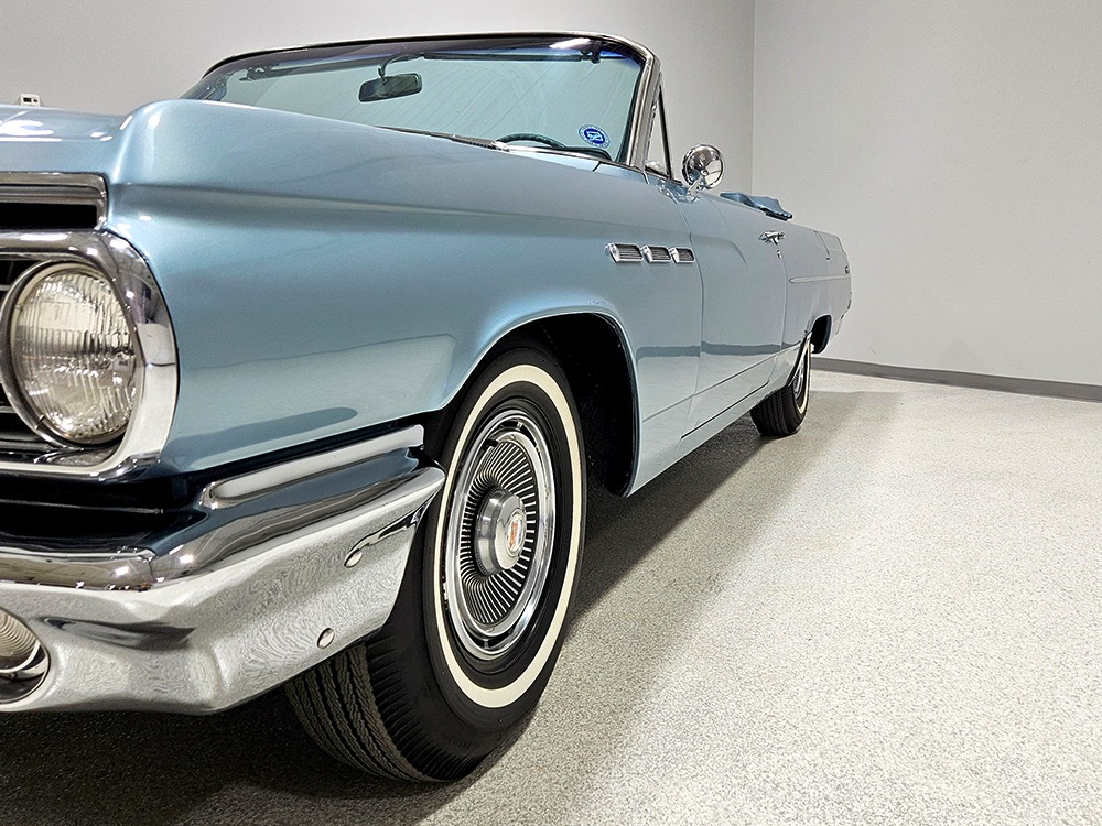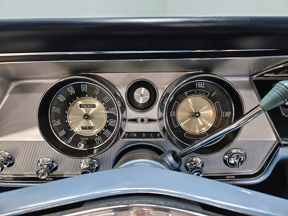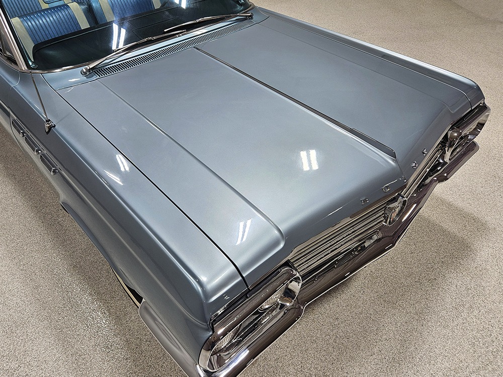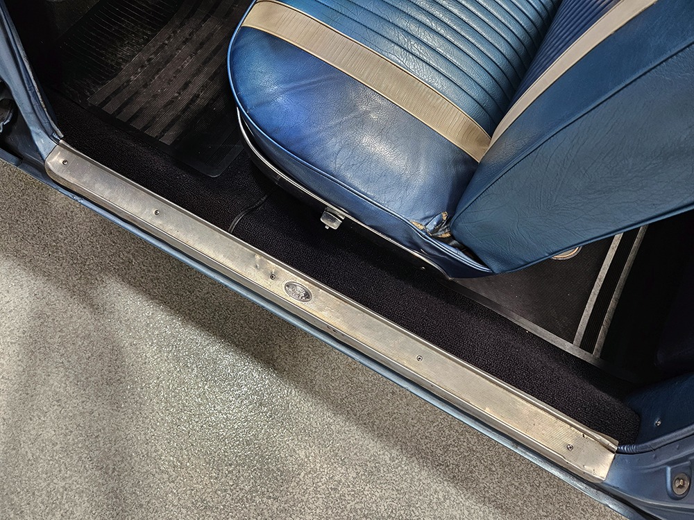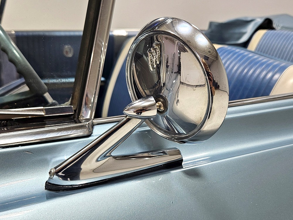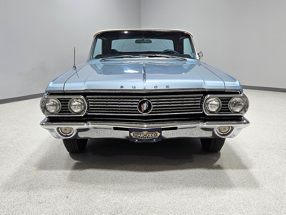 Buick knew who they were in 1963. The full-sized lineup of cars included some serious luxury backed by performance that was quiet and understated, yet impressive. The Lesabre was the mid-range model, offering full-sized comfort without the full-sized luxury price. This handsome convertible was exactly what thousands of bank presidents and senior advertising execs drove in 1963—upscale yet not excessively flashy. In this car’s case, the paint is an older repaint in the original Marlin Blue and it still shows rather well. Bodywork is quite good and the doors close with a solid sound that you’d all but forgotten was possible on a convertible. As a car that has never been fully apart, it has a robust feeling that’s difficult to restore back into a car once it’s been disassembled. There’s a nice shine to the finish, the body gaps are quite good, and the icy blue suits the large ragtop rather well. There’s still plenty of chrome on a 1963 Buick, all of which is in excellent condition—even the faux “venti-ports” on the front fenders show minimal pitting, which is very unusual. For a mostly original car, it's in fantastic shape!
