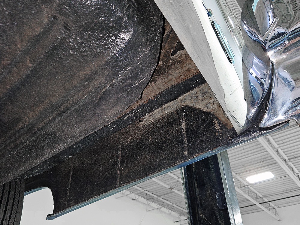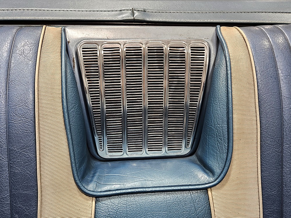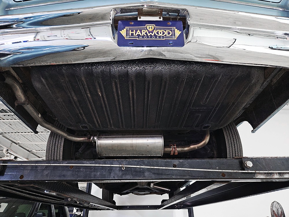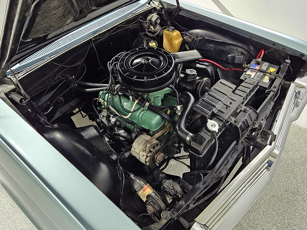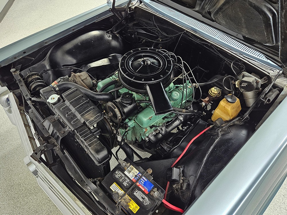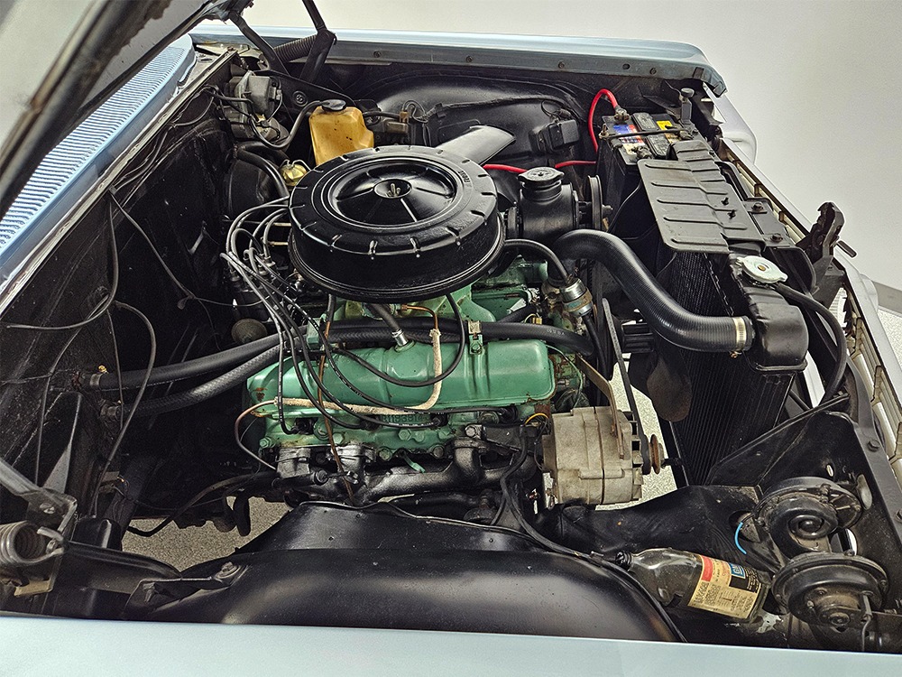 Buick’s 401 cubic inch “Nailhead” V8 is the epitome of smooth, effortless luxury power. It starts easily and idles with a muscular hum that’s quite appropriate. And combined with the DynaFlow automatic transmission, power delivery is seamless. The LeSabre came standard with a 2-barrel carburetor and single exhaust, making it reasonably efficient without sacrificing that big wave of torque that made the Nailhead famous. It’s neatly dressed in Buick Turquoise engine enamel with that big, black air cleaner on top, so it presents well when you open the hood. It also runs beautifully, pulling the big ragtop around with enthusiasm, living up to its reputation as a torque factory. Details like the alternator, belts and hoses, and other small parts are recent, so it is 100% ready to hit the road. The undercarriage is original and shows plenty of use, but the floors are solid and the trunk pan is in excellent shape. The exhaust system has a hushed sound that’s appropriate for a luxury cruiser like this and giant finned aluminum brake drums provide impressive stopping power. It sits on factory steel wheels and hubcaps with recent 7.60-15 BFGoodrich Silvertown whitewalls that look period perfect.