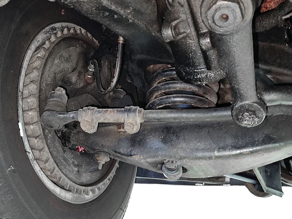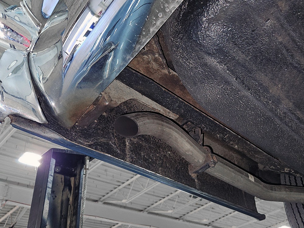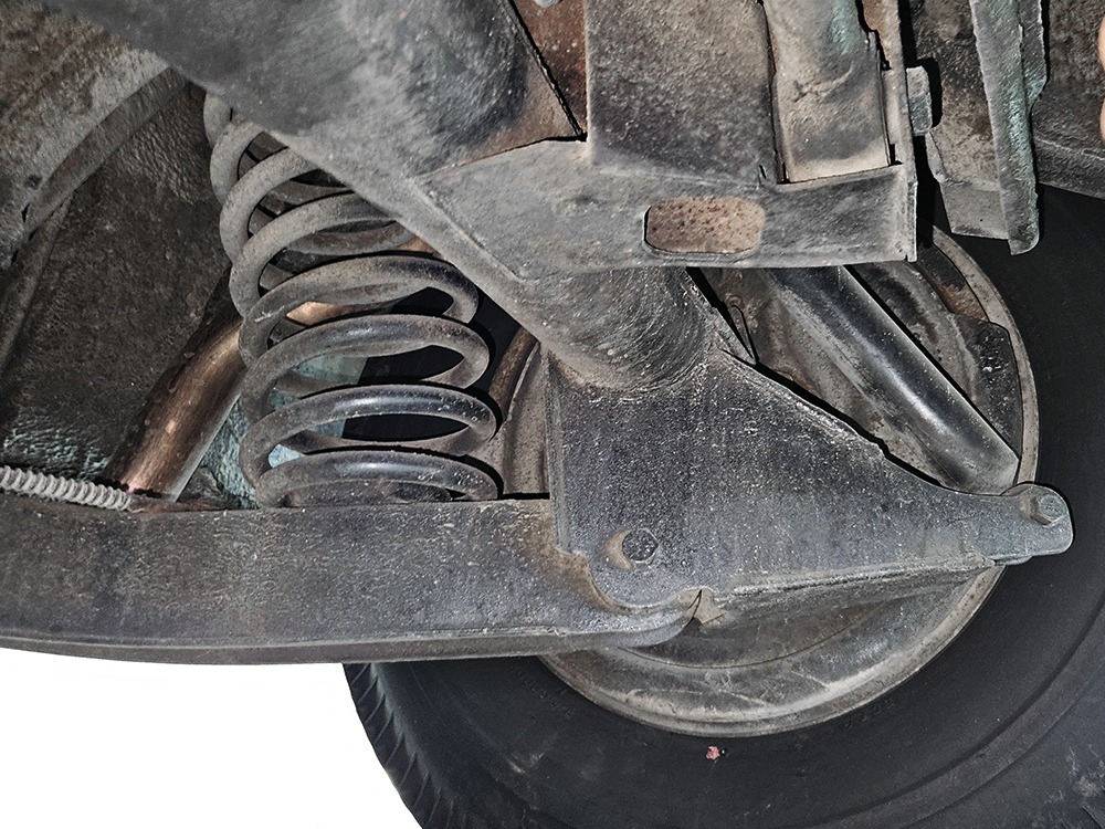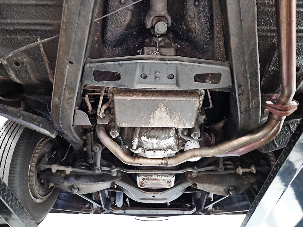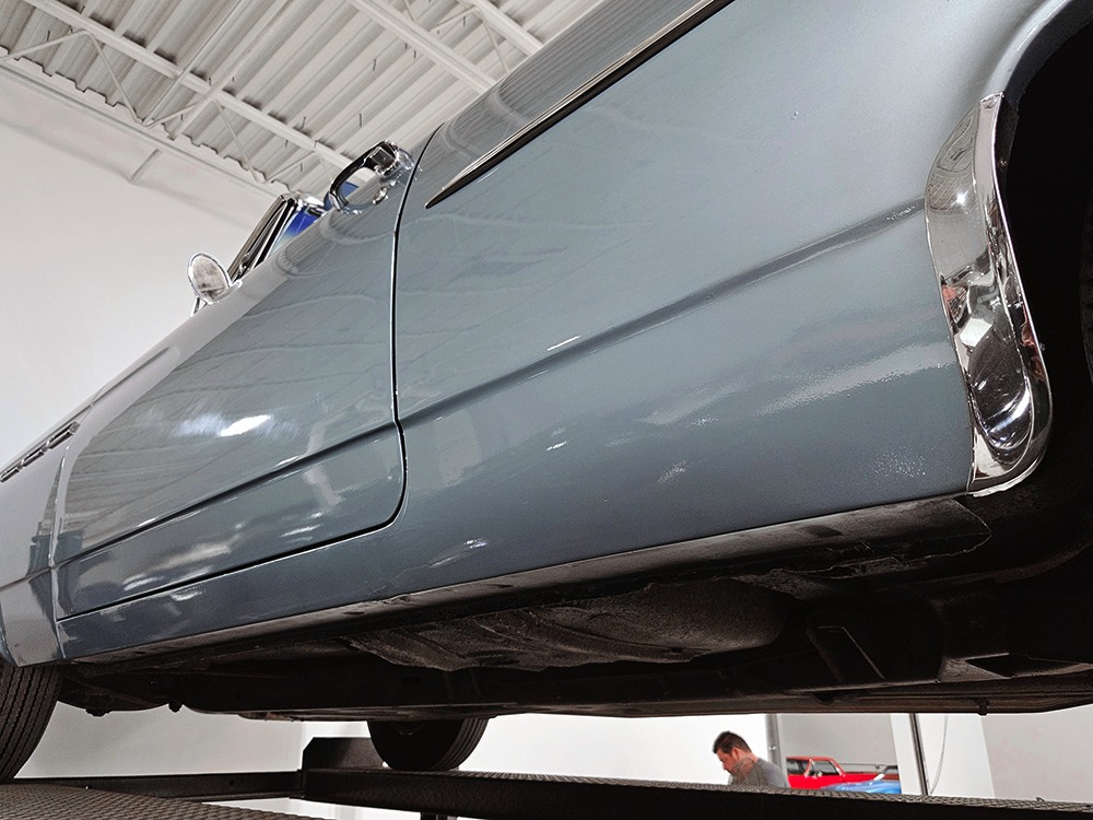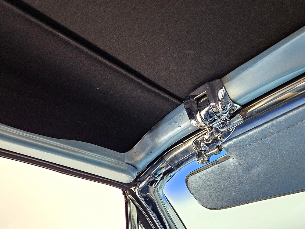 Buick’s 401 cubic inch “Nailhead” V8 is the epitome of smooth, effortless luxury power. It starts easily and idles with a muscular hum that’s quite appropriate. And combined with the DynaFlow automatic transmission, power delivery is seamless. The LeSabre came standard with a 2-barrel carburetor and single exhaust, making it reasonably efficient without sacrificing that big wave of torque that made the Nailhead famous. It’s neatly dressed in Buick Turquoise engine enamel with that big, black air cleaner on top, so it presents well when you open the hood. It also runs beautifully, pulling the big ragtop around with enthusiasm, living up to its reputation as a torque factory. Details like the alternator, belts and hoses, and other small parts are recent, so it is 100% ready to hit the road. The undercarriage is original and shows plenty of use, but the floors are solid and the trunk pan is in excellent shape. The exhaust system has a hushed sound that’s appropriate for a luxury cruiser like this and giant finned aluminum brake drums provide impressive stopping power. It sits on factory steel wheels and hubcaps with recent 7.60-15 BFGoodrich Silvertown whitewalls that look period perfect.