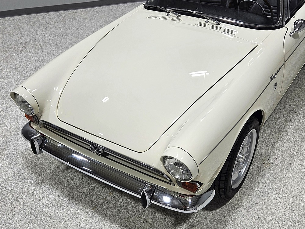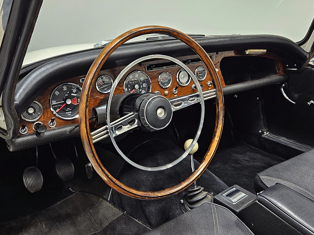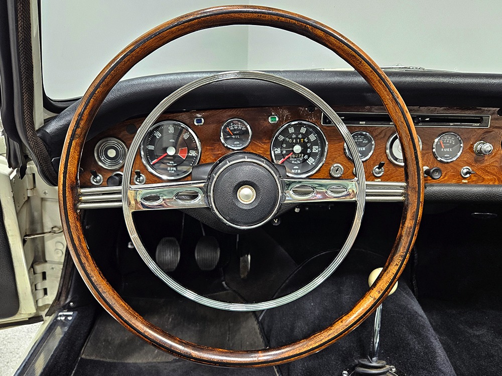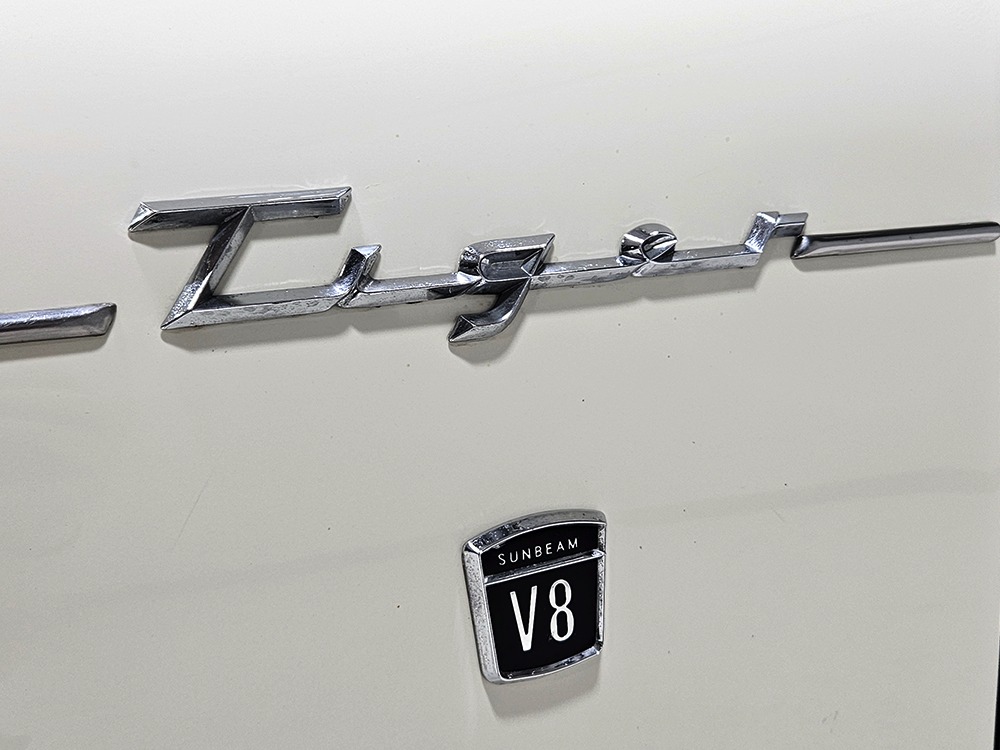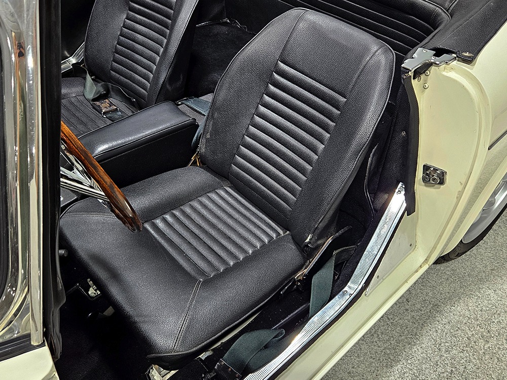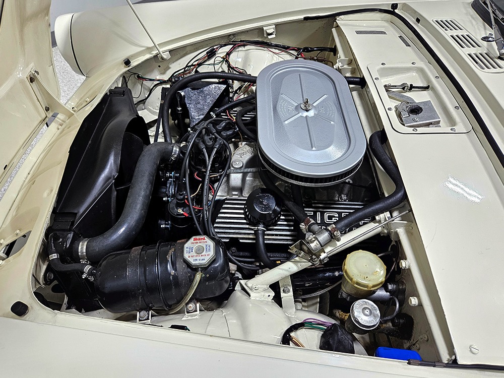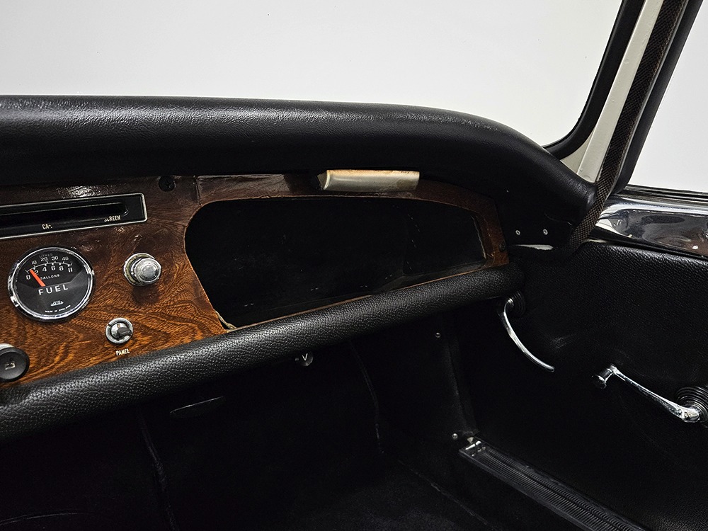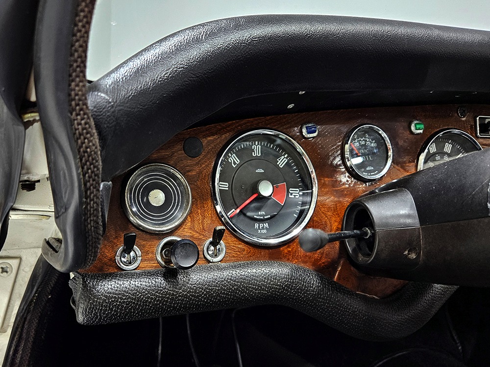 This car was originally sold in Los Angeles, CA in 1966 and remained there until 1999 when the most recent owner brought it to Ohio. As a result, it is extremely clean and solid, something that can’t be said of most Tigers, and while it has been restored as needed, it has never needed a complete tear-down. The sheetmetal is in outstanding condition with no issues hiding under the skin, and like most California cars, the undercarriage is super solid. It was refinished in its original Arctic White in 2010, and the finish is holding up extremely well and presents beautifully, with just the right amount of patina for a car that has been used and enjoyed as intended. The doors fit neatly, the hood closes easily, and all the gaps are consistent, which isn’t necessarily the case with a lot of hand-built British sports cars. Most of the chrome and stainless trim was refinished, including the bumpers, and it proudly wears correct V8 emblems, a small warning to anyone who might decide to tangle with the formidable Tiger.