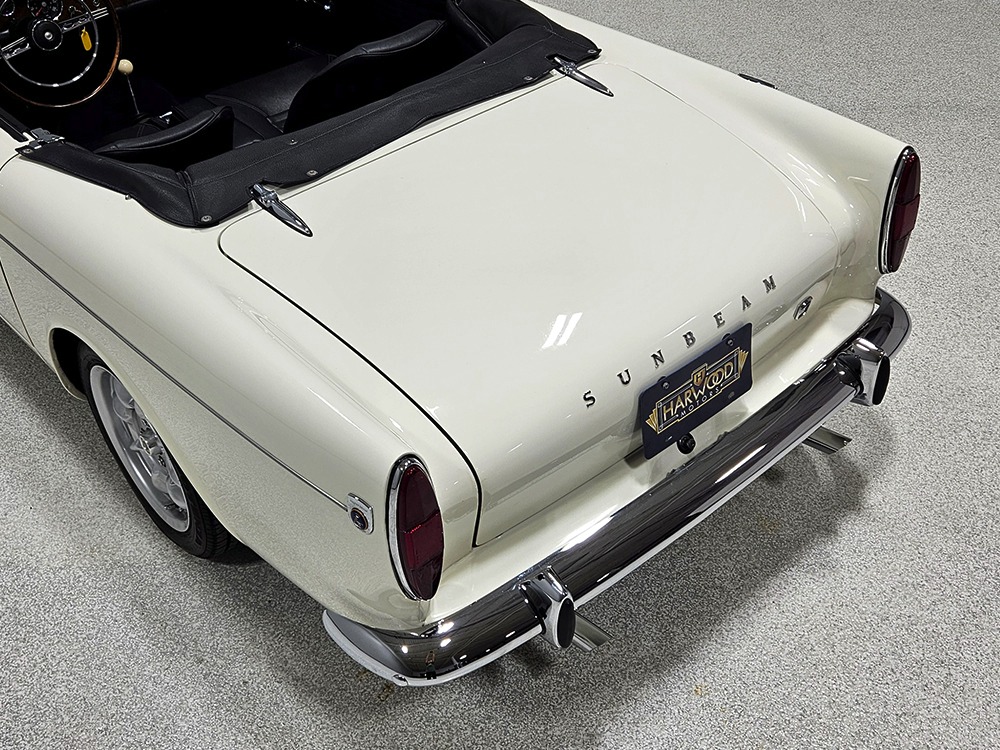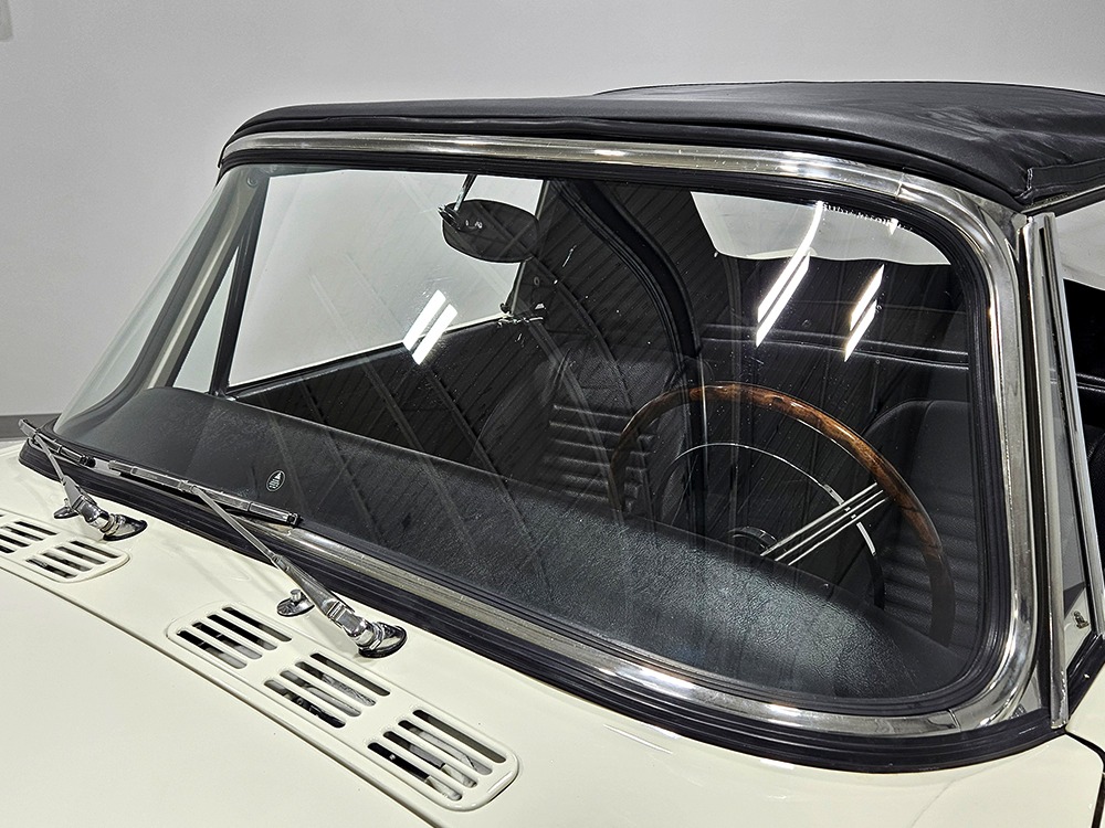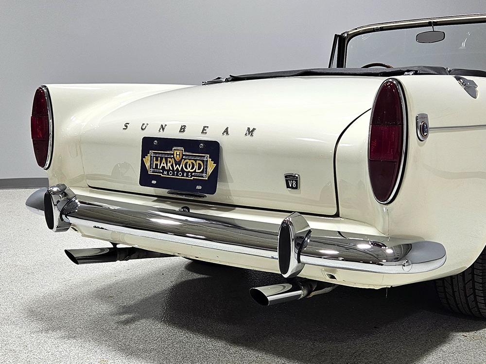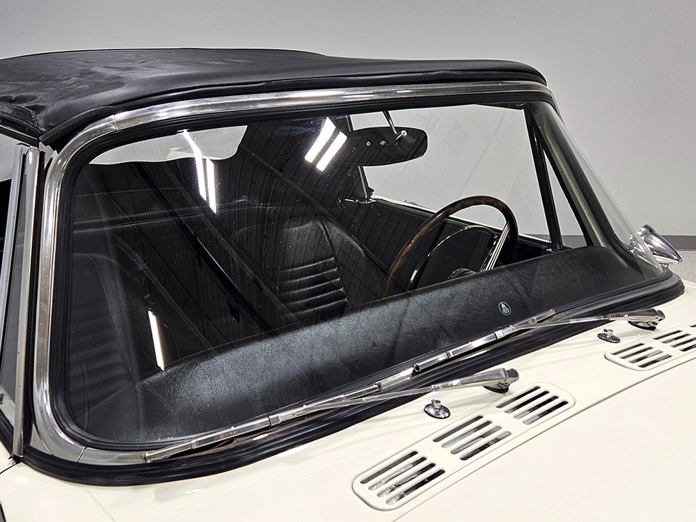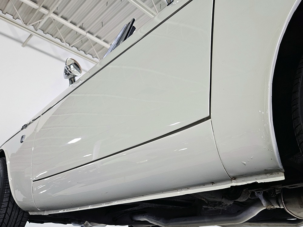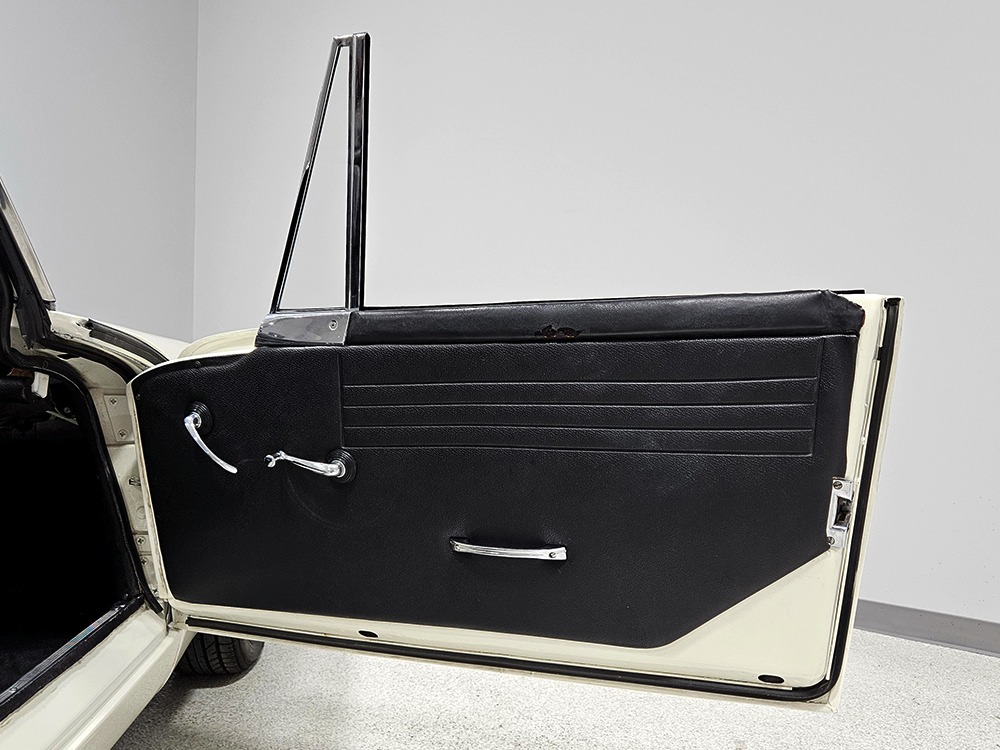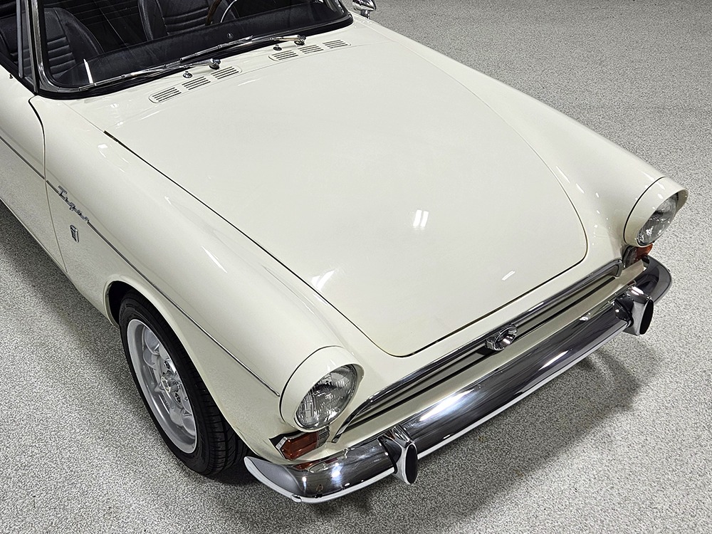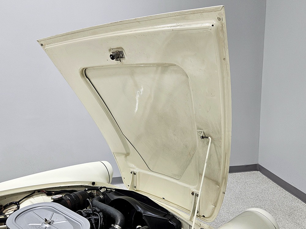 This car was originally sold in Los Angeles, CA in 1966 and remained there until 1999 when the most recent owner brought it to Ohio. As a result, it is extremely clean and solid, something that can’t be said of most Tigers, and while it has been restored as needed, it has never needed a complete tear-down. The sheetmetal is in outstanding condition with no issues hiding under the skin, and like most California cars, the undercarriage is super solid. It was refinished in its original Arctic White in 2010, and the finish is holding up extremely well and presents beautifully, with just the right amount of patina for a car that has been used and enjoyed as intended. The doors fit neatly, the hood closes easily, and all the gaps are consistent, which isn’t necessarily the case with a lot of hand-built British sports cars. Most of the chrome and stainless trim was refinished, including the bumpers, and it proudly wears correct V8 emblems, a small warning to anyone who might decide to tangle with the formidable Tiger.