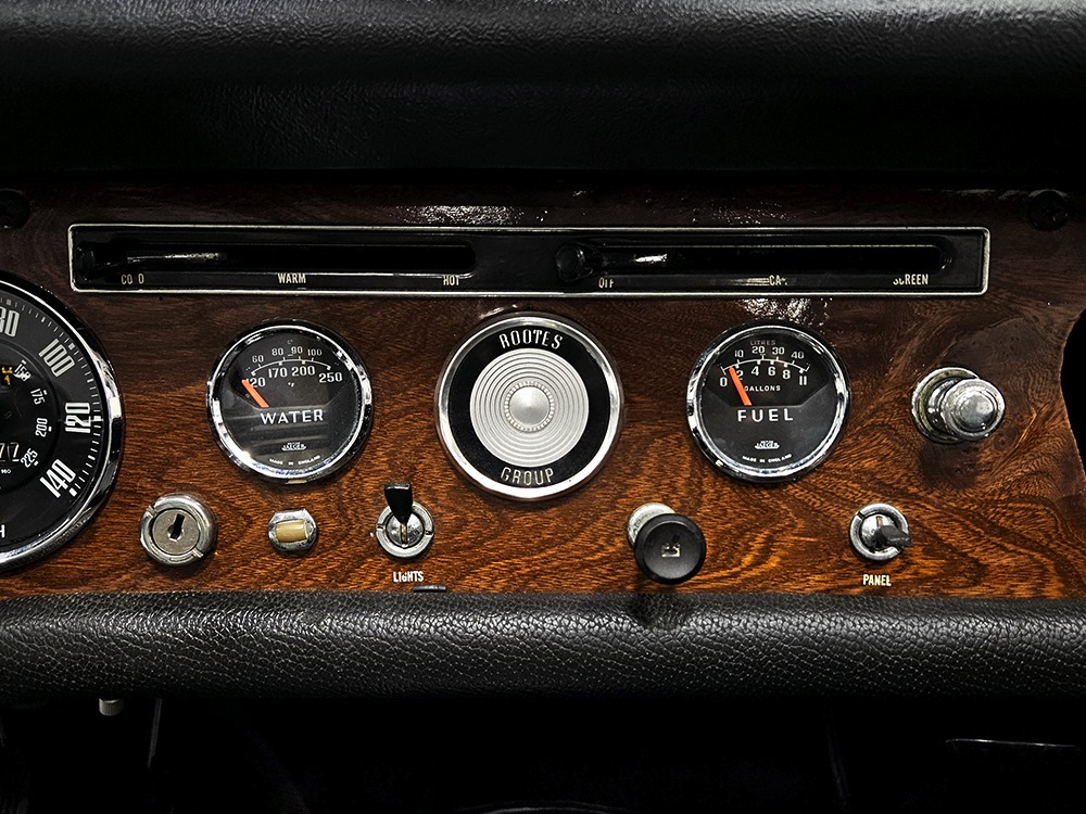 The nimble, light feeling of a British sports car combined with the torquey effortlessness of an American V8 is a combination that has been tested with varying degrees of success over the years. With only one notable exception (the Cobra), none does it better than the Tiger. Few cars are as joyous to drive as this one, and it will always command a lot of respect at shows and on the road, especially after they hear that magnificent exhaust note. Call today!