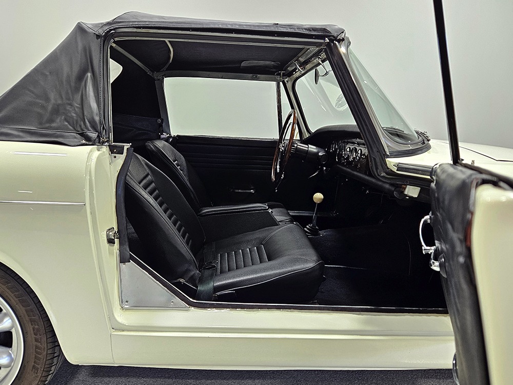 This is a Series 1A Tiger, which means it originally came with a 260, but in 2010, the original engine was pulled in favor of a period-correct 5-bolt 289, which was rebuilt by Stockman Racing Engines (the original 260 block is available). They retained all the LAT performance options from the 260, but it has additions like Edelbrock Performer RPM aluminum heads, a matching Edelbrock 4-barrel carburetor, a Comp Cams XE264 cam, and a Pertronix electronic ignition system inside the original LAT dual-point distributor. The original radiator was re-cored and a new FlowKooler water pump was installed, making this the rare Tiger that runs nice and cool, no matter the weather. Of course, the original generator, air cleaner, and other details remain in place to maintain the original Tiger look under the hood. There’s also a Centerforce I clutch, a balanced driveshaft, and 3.31 gears in the Salisbury rear end to make it an easy cruiser (the lightweight Tiger doesn’t need a lot of gear for ferocious acceleration). The front crossmember was stripped, straightened, and reinforced using Super Pro bushings, stronger Tiger Automotive fulcrum pins and all-new steering components. The brake and clutch hydraulic systems were refurbished and the original brake servo was replaced with a Series 1 Alpine master cylinder. Factory manifolds and an all-new exhaust system were installed, and this Tiger has a spectacular soundtrack, both at idle and at full bore. Since 13-inch tires are getting tough to find, a set of 15-inch Minilite wheels were fitted along with a set of 185/55/15 performance radials that fill the fenders just right.