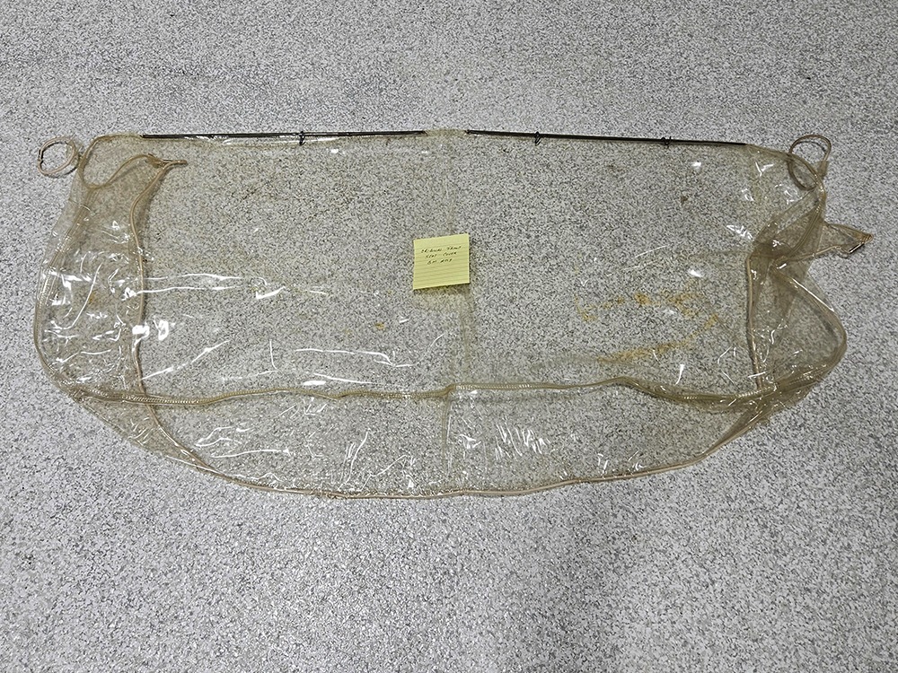 Extras include a spare set of floor mats, a plastic seat cover, and a dealer-installed bug screen over the radiator.