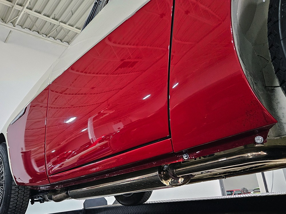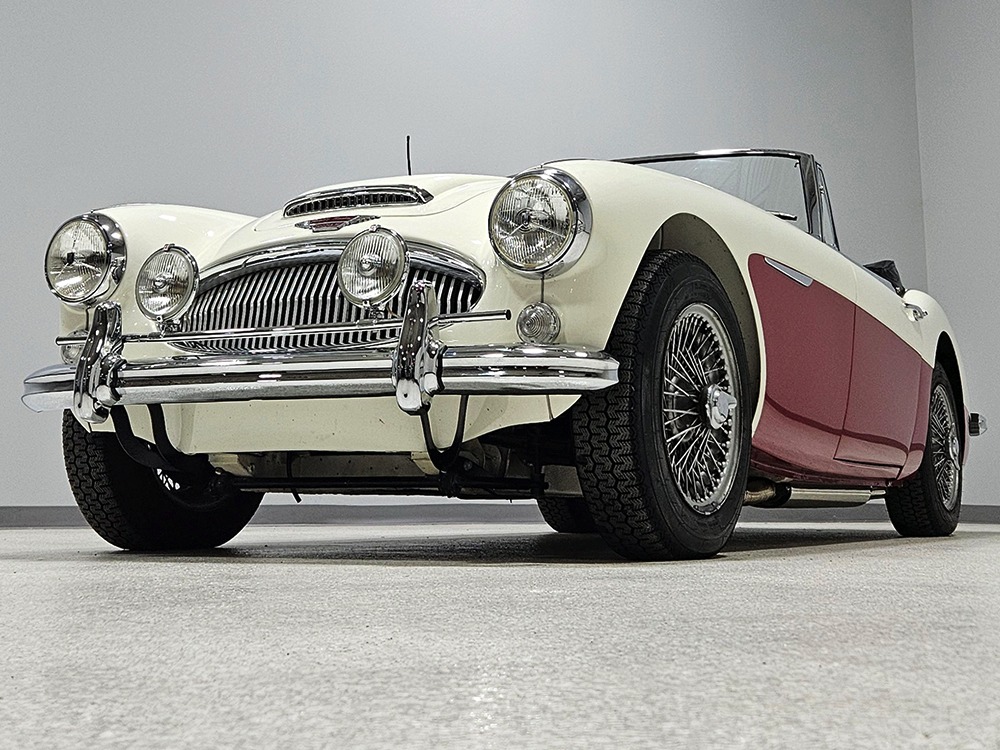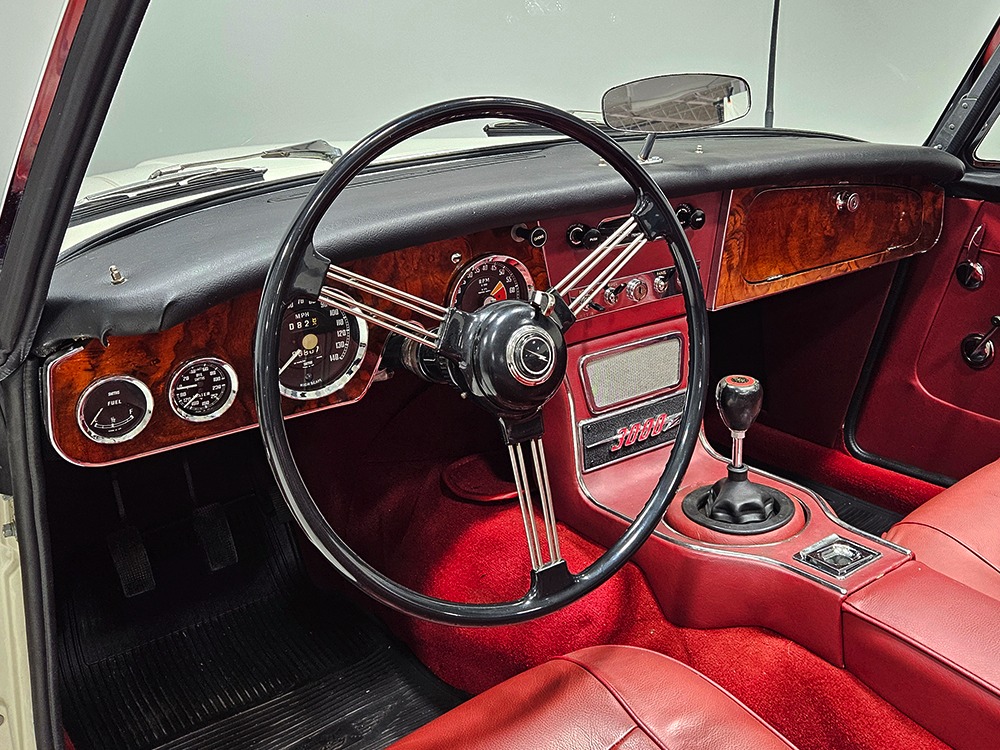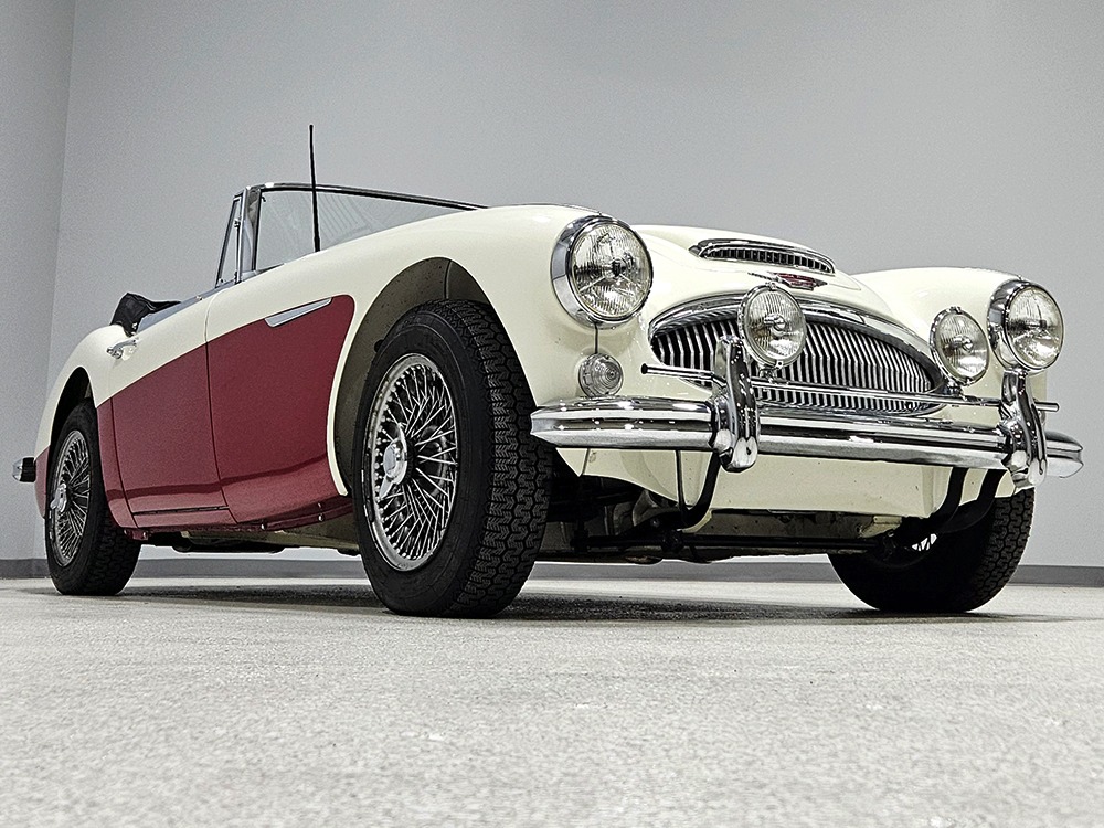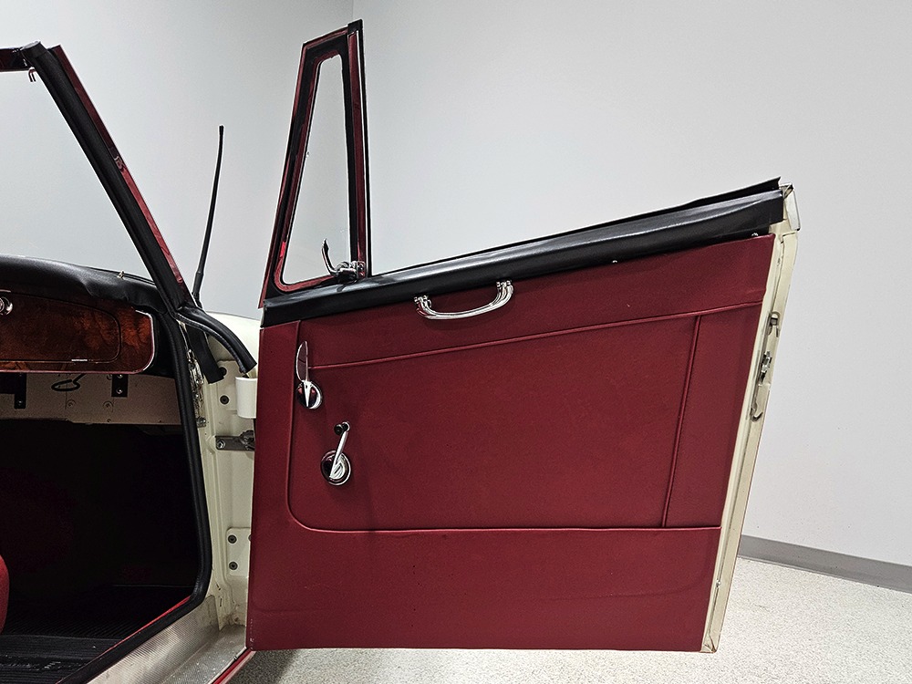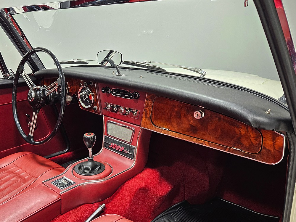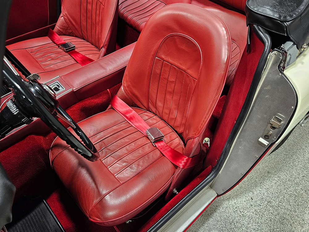 There were a lot of variations of the Austin-Healey sports car, and depending on who you ask, they all have their own special appeal. What we like about this 1965 3000 BJ8 Mark II however, is that burly 6-cylinder engine under the long hood. That’s why the 3000s are consistently the most sought-after of the Healeys. Technically it’s a 4-seater, but the proportions are the same as the 100-6 that preceded it and I’m not sure I’d call the small divots in the back area “seats” as we know them. This remains a roadster in the traditional sense of the word. This car was restored by the British car experts at Automotive Artistry in Hudson, OH, and their work speaks for itself—it’s just gorgeous. The two-tone white-over-red paint job is deep and glossy, surely better than new, and the fit and finish is extremely good, especially for a largely hand-built British sports car. It is holding up superbly with very few signs of use or age—this car could easily pass for a much more recent restoration. All the chrome was refinished, including the bumpers, grille, and small pieces, and all the emblems remain bright and crisp. This car is just gorgeous!