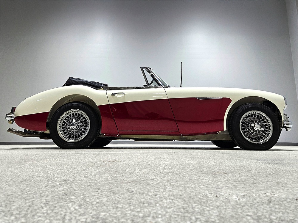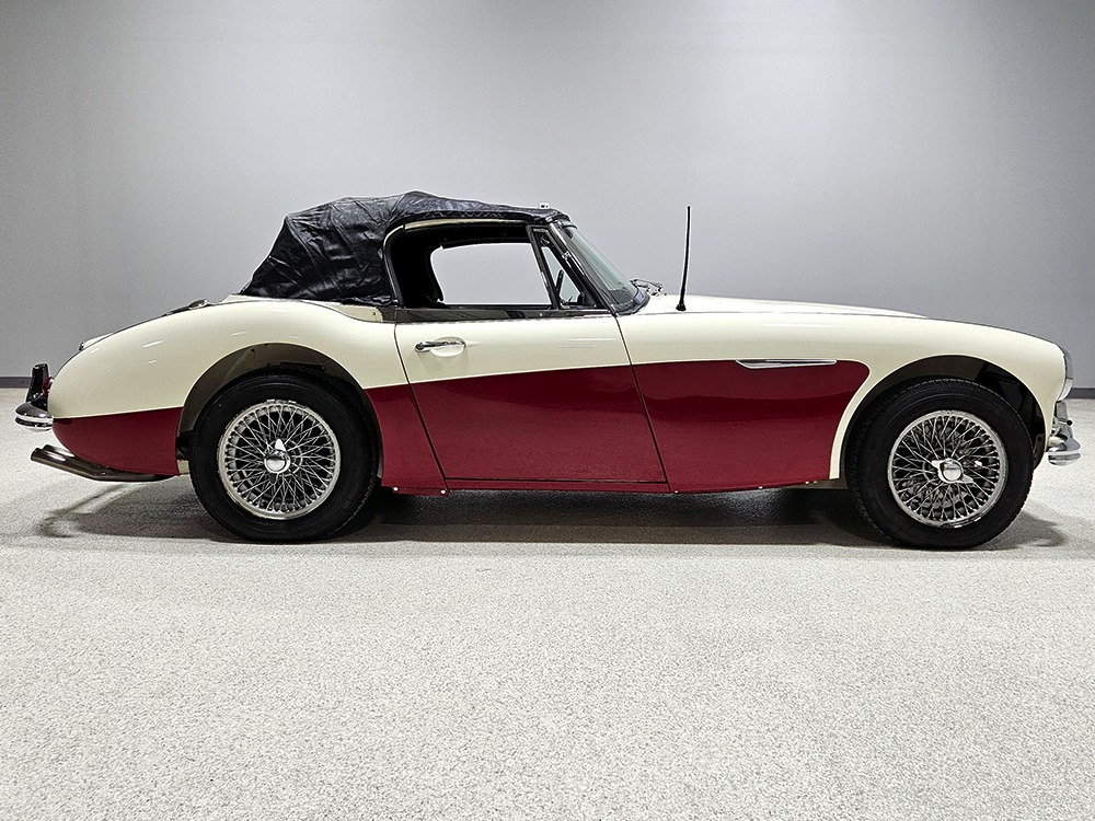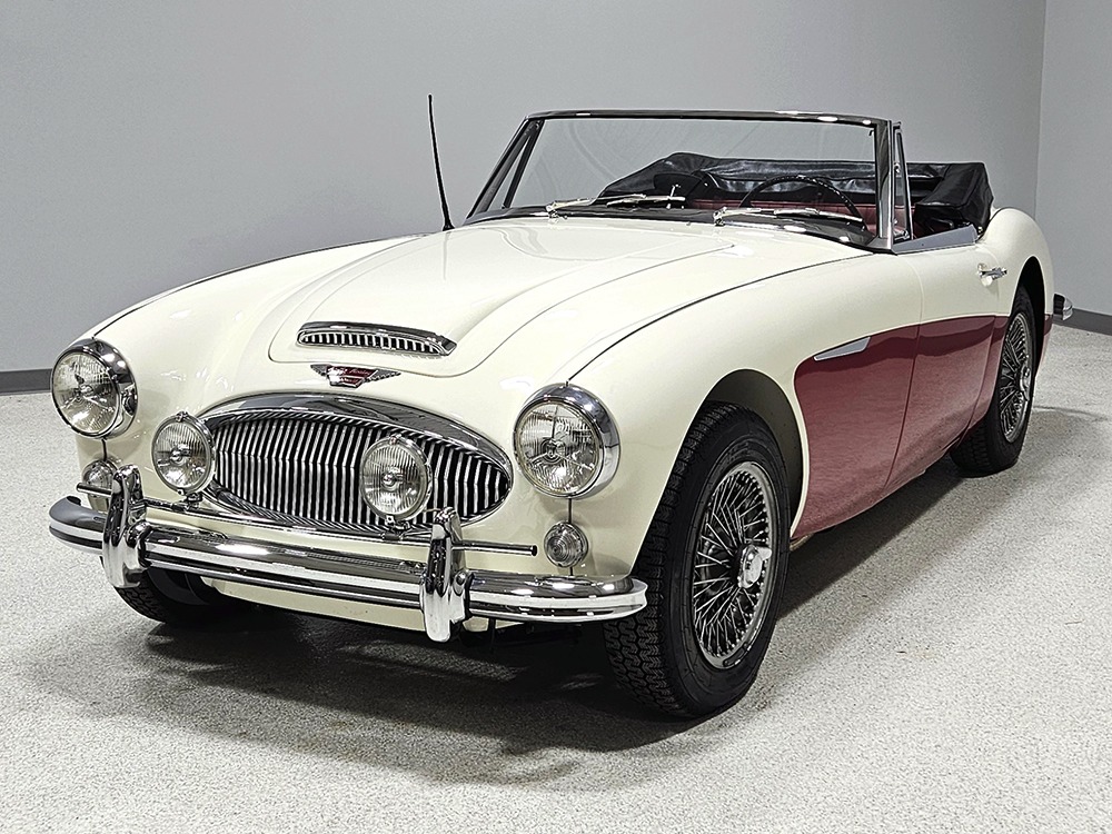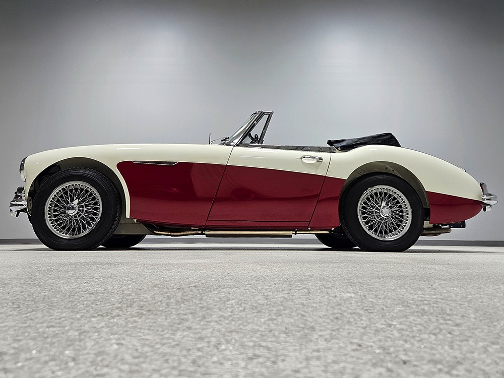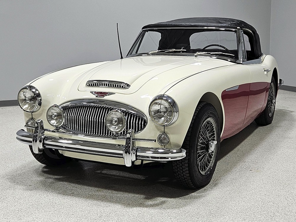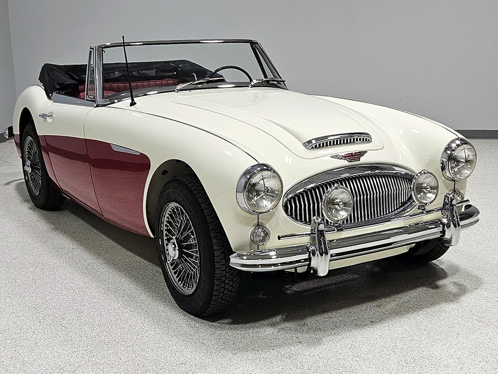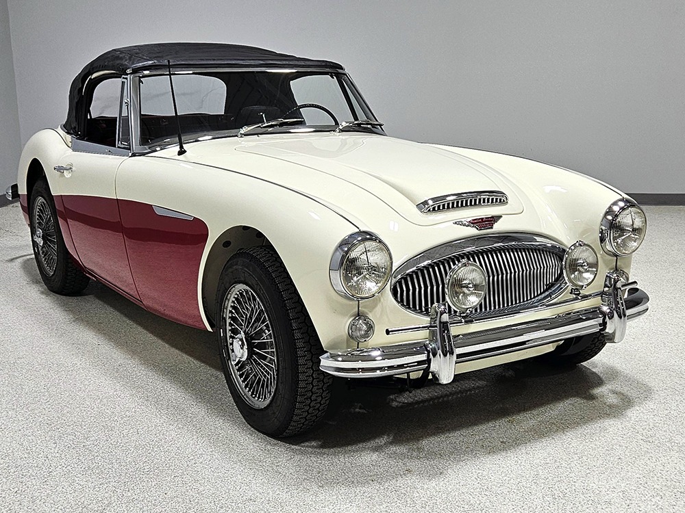 There were a lot of variations of the Austin-Healey sports car, and depending on who you ask, they all have their own special appeal. What we like about this 1965 3000 BJ8 Mark II however, is that burly 6-cylinder engine under the long hood. That’s why the 3000s are consistently the most sought-after of the Healeys. Technically it’s a 4-seater, but the proportions are the same as the 100-6 that preceded it and I’m not sure I’d call the small divots in the back area “seats” as we know them. This remains a roadster in the traditional sense of the word. This car was restored by the British car experts at Automotive Artistry in Hudson, OH, and their work speaks for itself—it’s just gorgeous. The two-tone white-over-red paint job is deep and glossy, surely better than new, and the fit and finish is extremely good, especially for a largely hand-built British sports car. It is holding up superbly with very few signs of use or age—this car could easily pass for a much more recent restoration. All the chrome was refinished, including the bumpers, grille, and small pieces, and all the emblems remain bright and crisp. This car is just gorgeous!