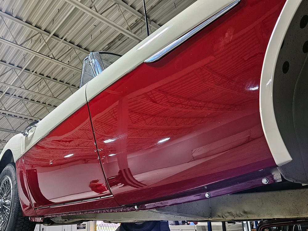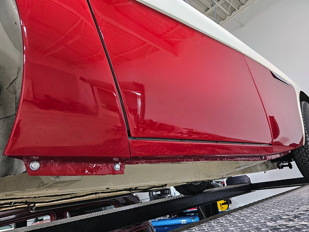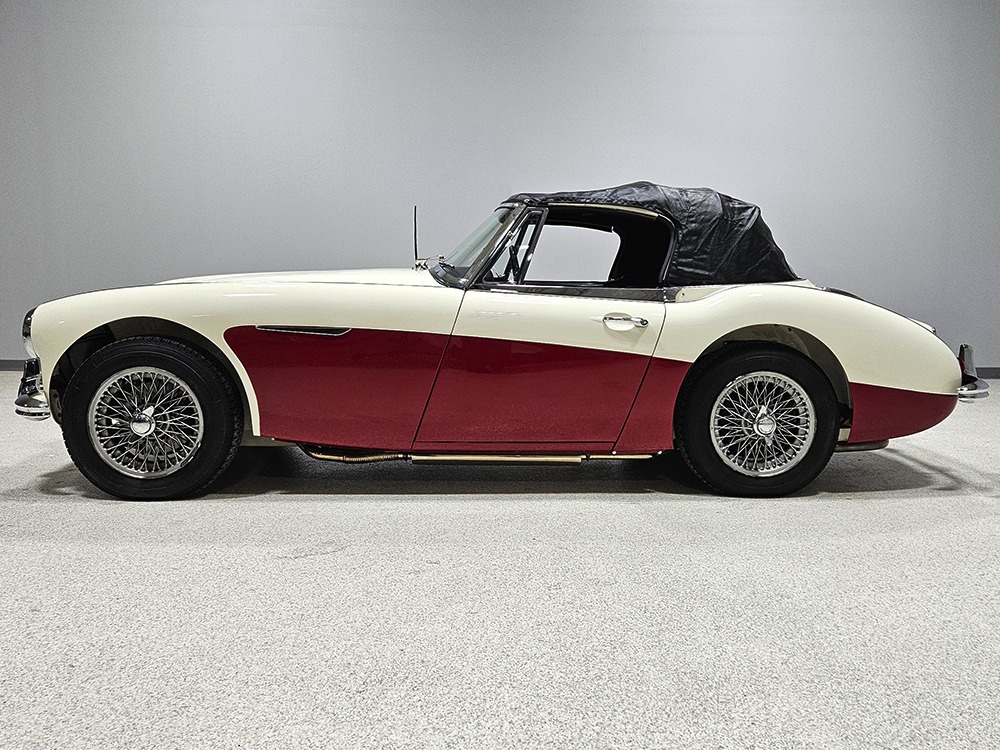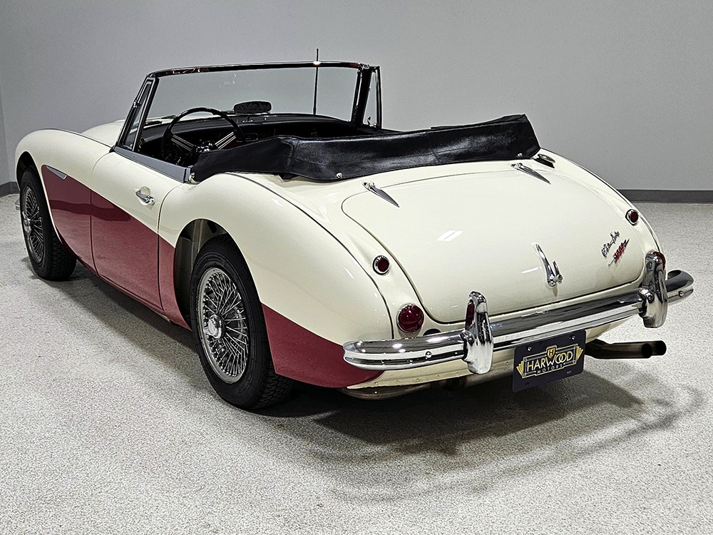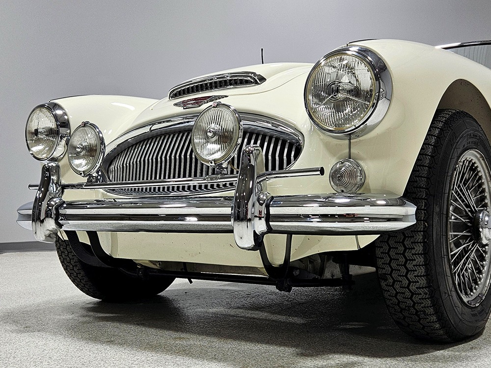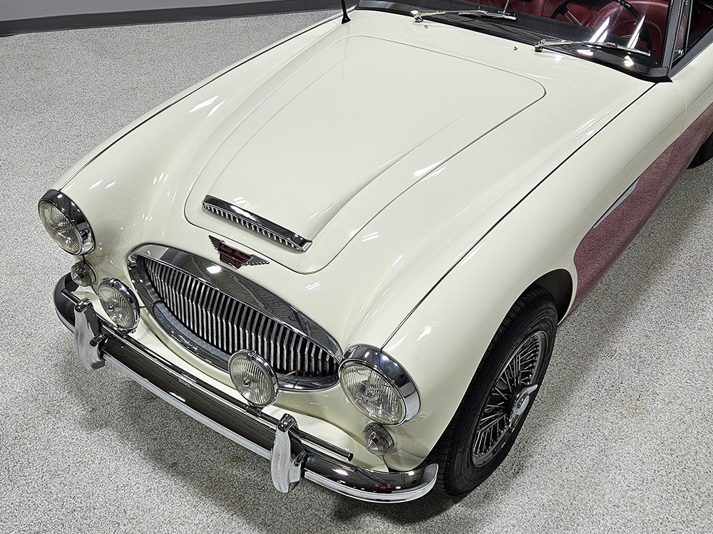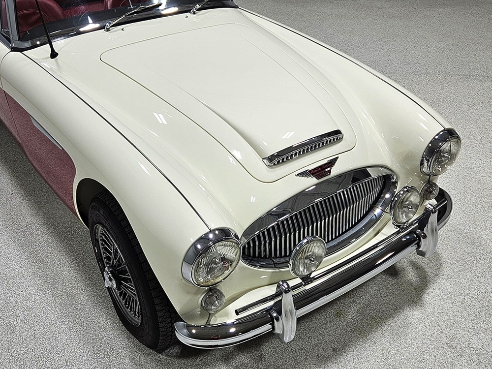 There were a lot of variations of the Austin-Healey sports car, and depending on who you ask, they all have their own special appeal. What we like about this 1965 3000 BJ8 Mark II however, is that burly 6-cylinder engine under the long hood. That’s why the 3000s are consistently the most sought-after of the Healeys. Technically it’s a 4-seater, but the proportions are the same as the 100-6 that preceded it and I’m not sure I’d call the small divots in the back area “seats” as we know them. This remains a roadster in the traditional sense of the word. This car was restored by the British car experts at Automotive Artistry in Hudson, OH, and their work speaks for itself—it’s just gorgeous. The two-tone white-over-red paint job is deep and glossy, surely better than new, and the fit and finish is extremely good, especially for a largely hand-built British sports car. It is holding up superbly with very few signs of use or age—this car could easily pass for a much more recent restoration. All the chrome was refinished, including the bumpers, grille, and small pieces, and all the emblems remain bright and crisp. This car is just gorgeous!