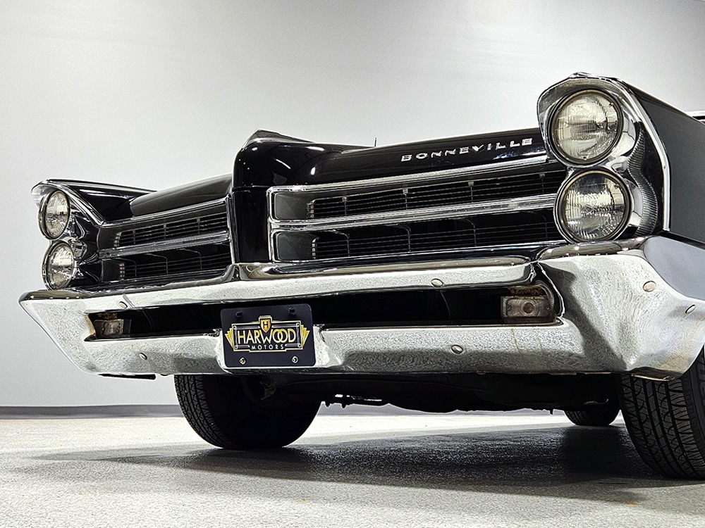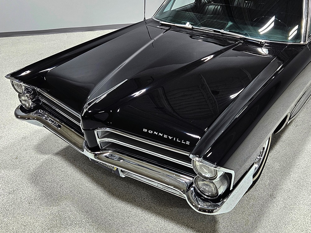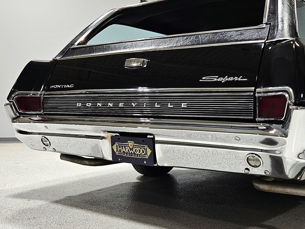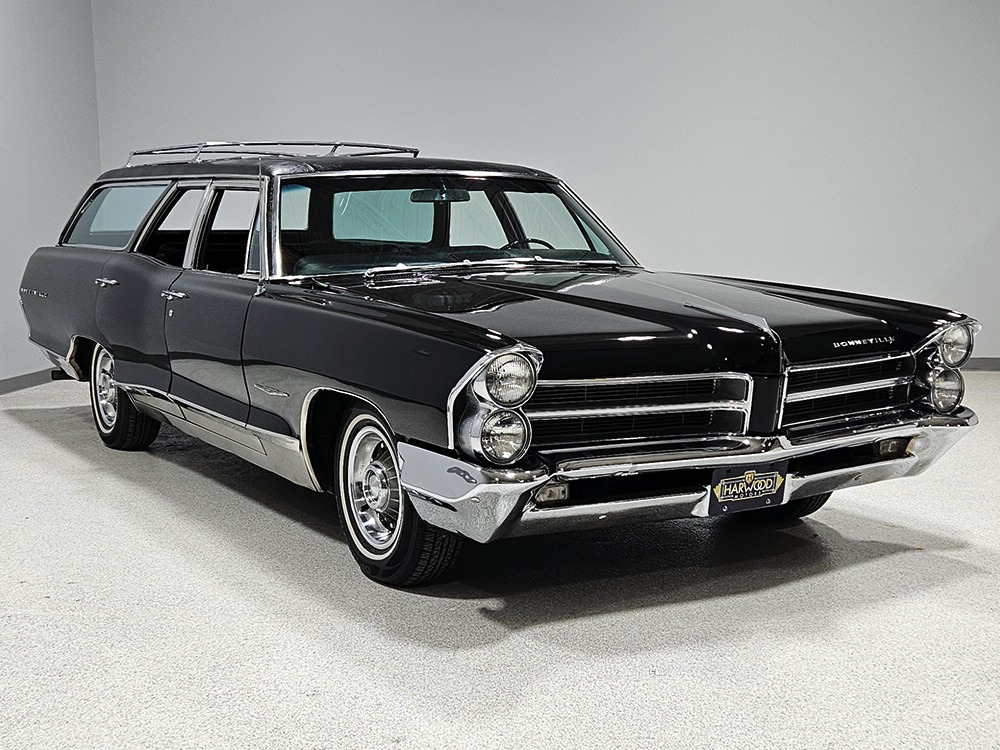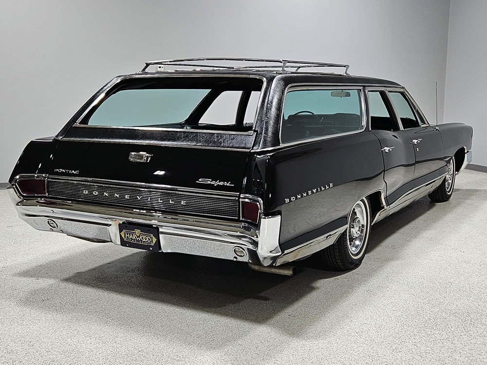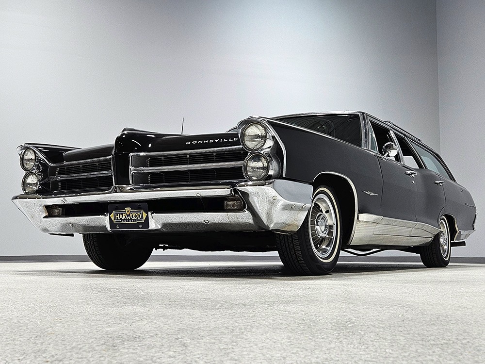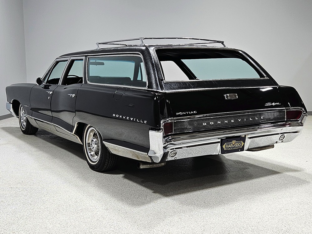 Exceptional Pontiac Bonneville wagon. Fantastic triple black, rare vinyl top, three rows of seats, working factory A/C, 8-lug wheels. 389 cubic inch V8 runs and drives superbly. The pinnacle of style and luxury in 1965!