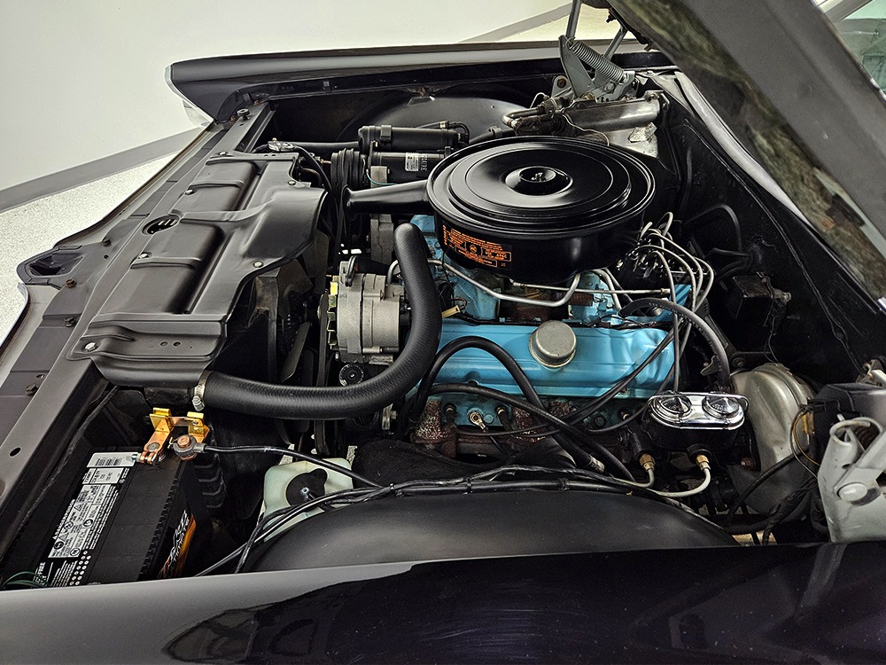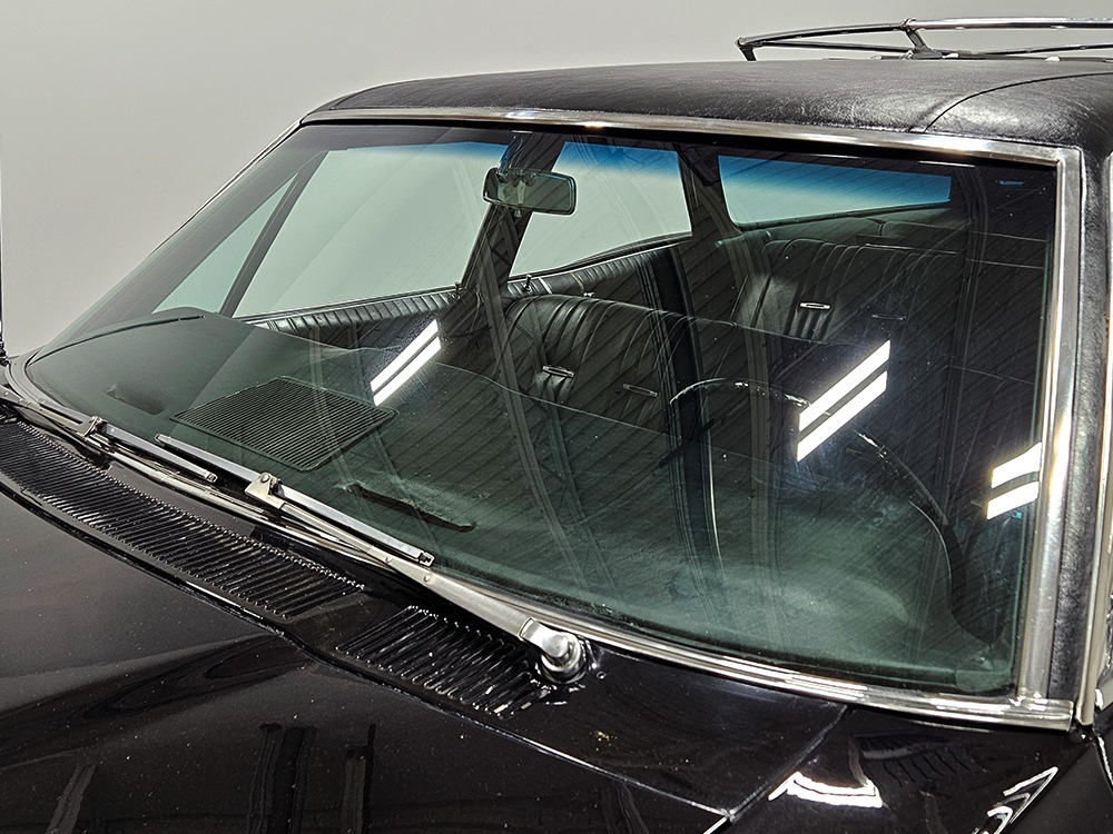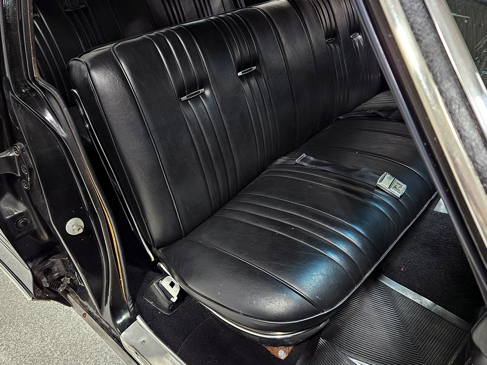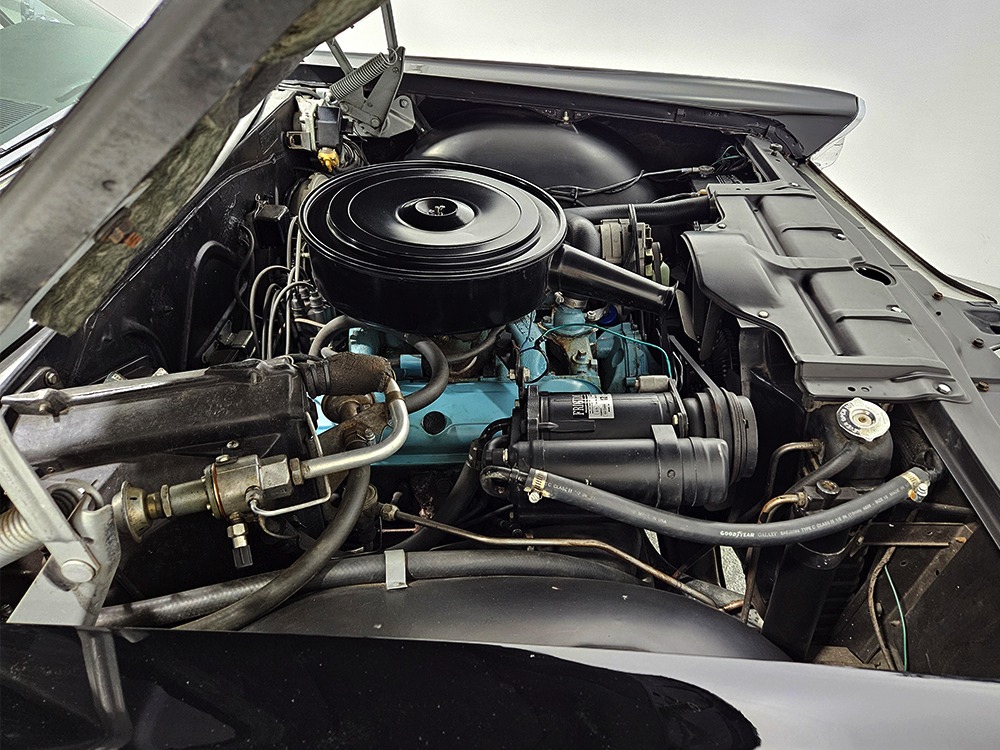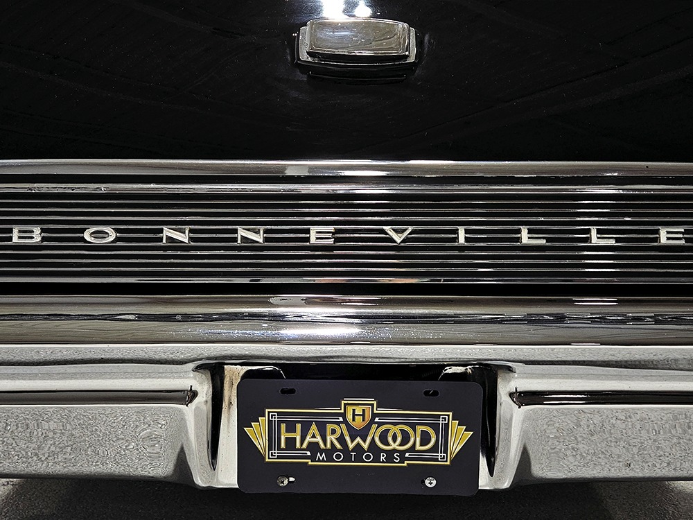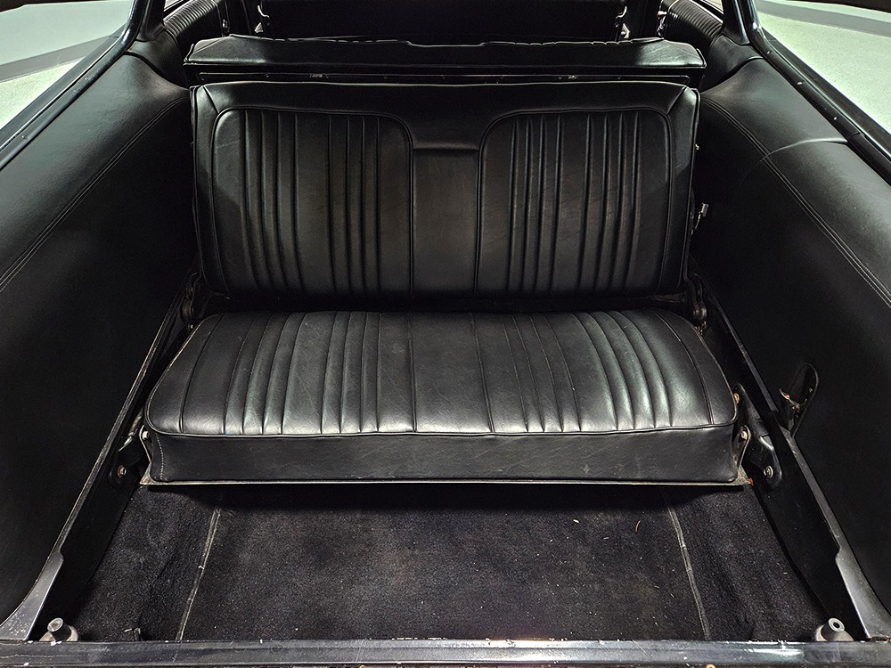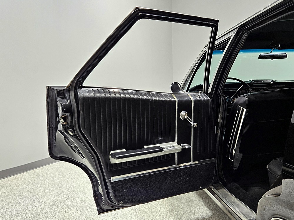 The beautiful black interior is more evidence of Pontiac’s high-style attitude. Three rows of bench seats make this a 9-passenger wagon, with the back seat facing rearward and able to stow itself under the cargo floor. Woodgrained appliques on the dash warm things up a bit, and if you’ve driven a GTO, sliding behind the wheel of this Bonneville might feel familiar. Everything works except the clock, and that means cold A/C and a working AM radio, although the sound of the 389 cubic inch V8 under the hood might be more entertaining. The seats, door panels, and carpets are in excellent condition with minimal wear, and thanks to lots of sound-deadening materials, it’s hushed inside on the highway. The massive headliner is also in fantastic condition with no rips, tears, or sagging, and all the glass is clear with no cracks or delamination. This is a really nice car!
