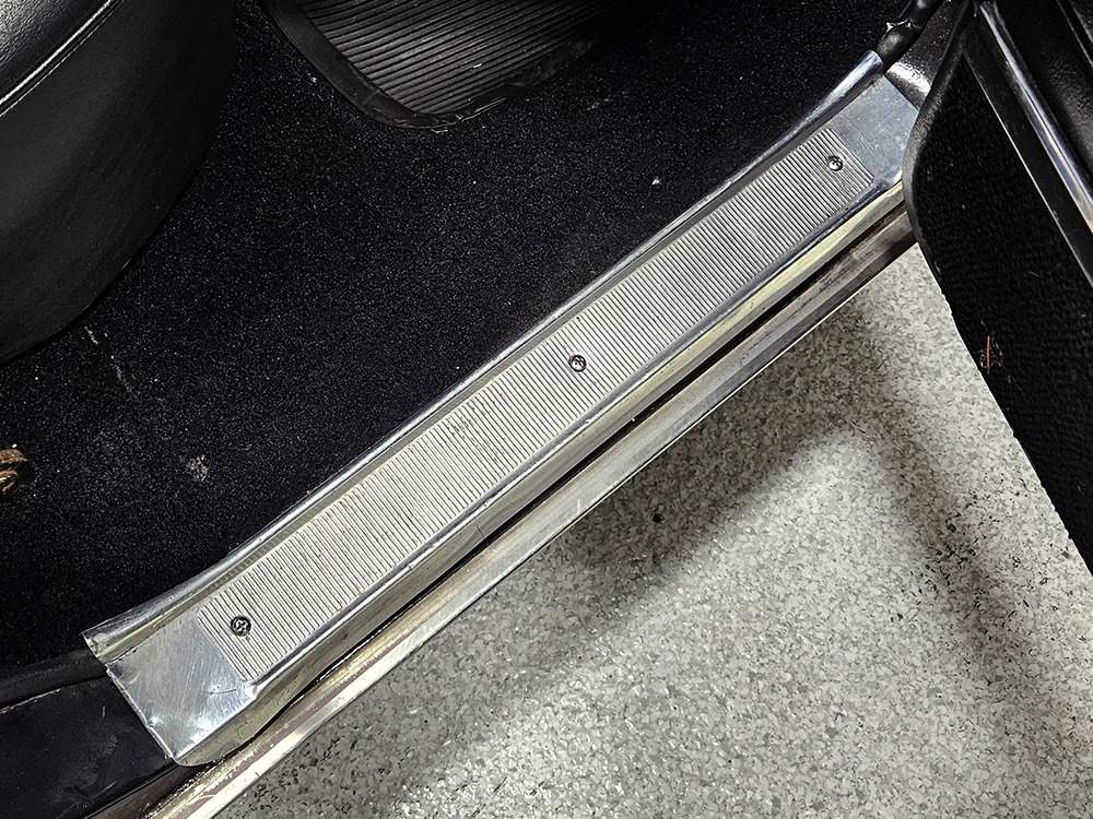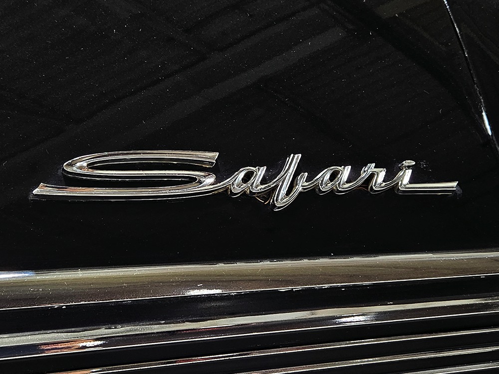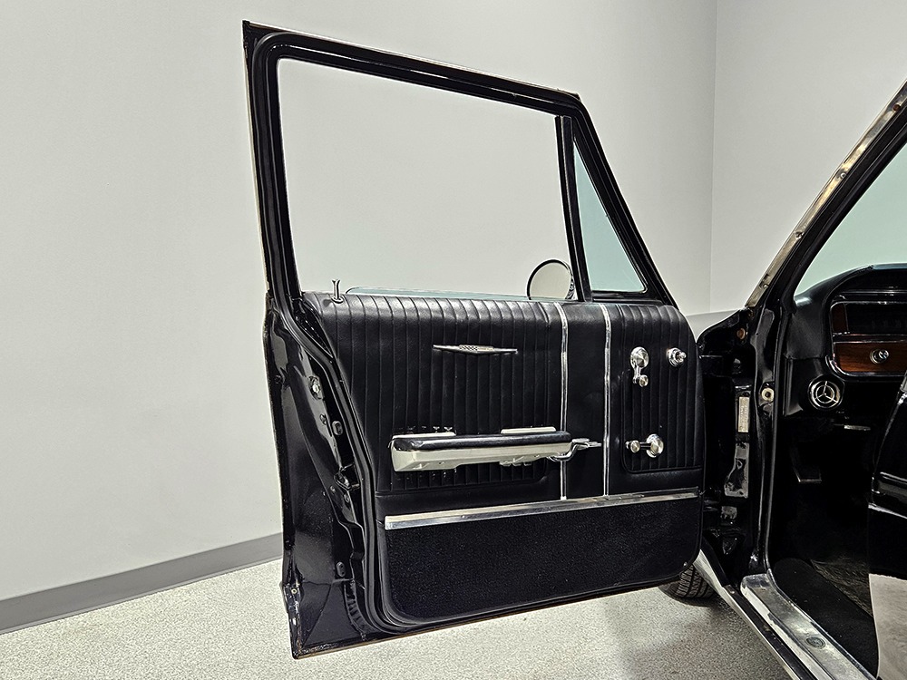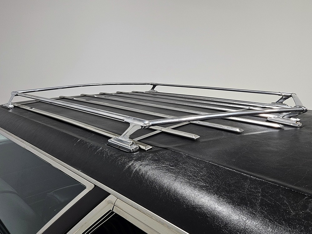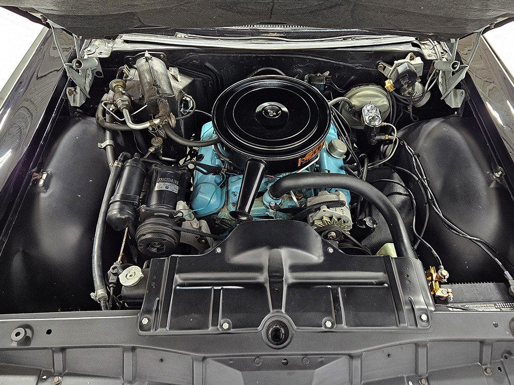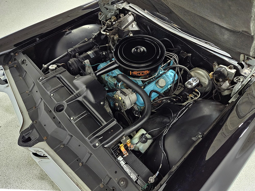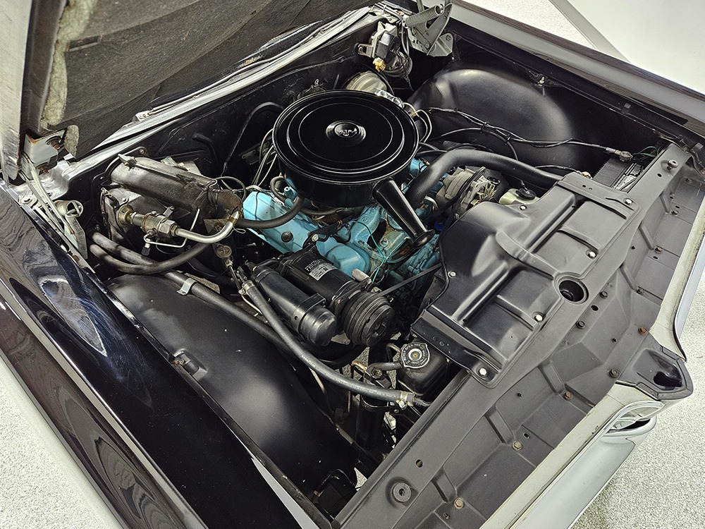 The beautiful black interior is more evidence of Pontiac’s high-style attitude. Three rows of bench seats make this a 9-passenger wagon, with the back seat facing rearward and able to stow itself under the cargo floor. Woodgrained appliques on the dash warm things up a bit, and if you’ve driven a GTO, sliding behind the wheel of this Bonneville might feel familiar. Everything works except the clock, and that means cold A/C and a working AM radio, although the sound of the 389 cubic inch V8 under the hood might be more entertaining. The seats, door panels, and carpets are in excellent condition with minimal wear, and thanks to lots of sound-deadening materials, it’s hushed inside on the highway. The massive headliner is also in fantastic condition with no rips, tears, or sagging, and all the glass is clear with no cracks or delamination. This is a really nice car!