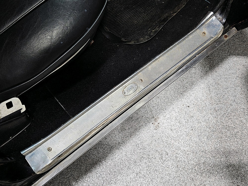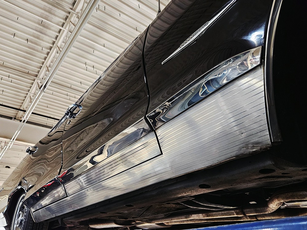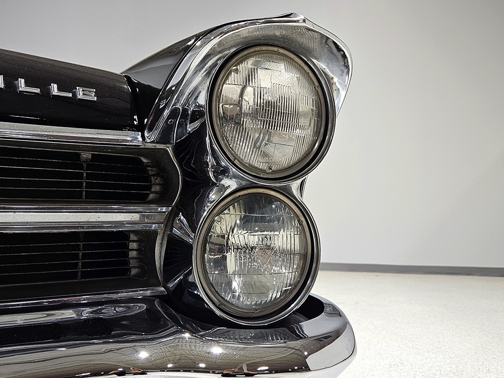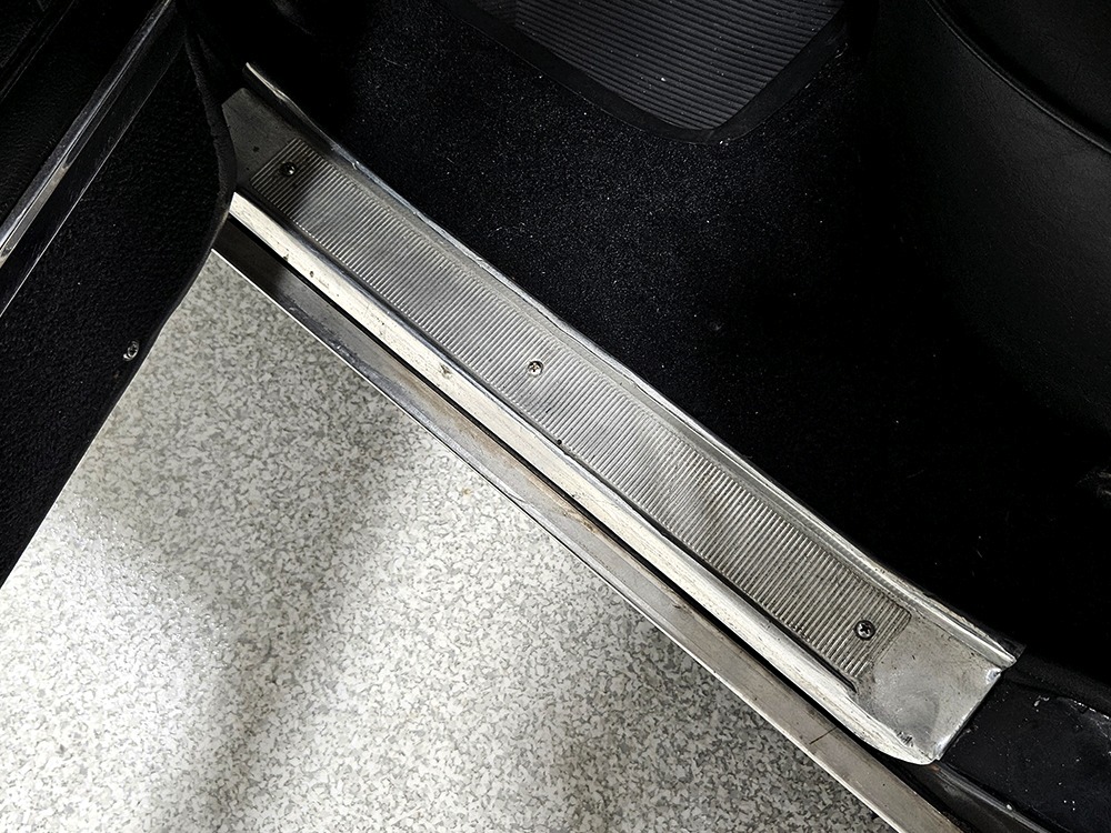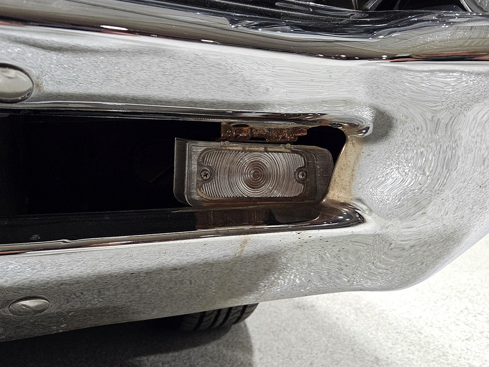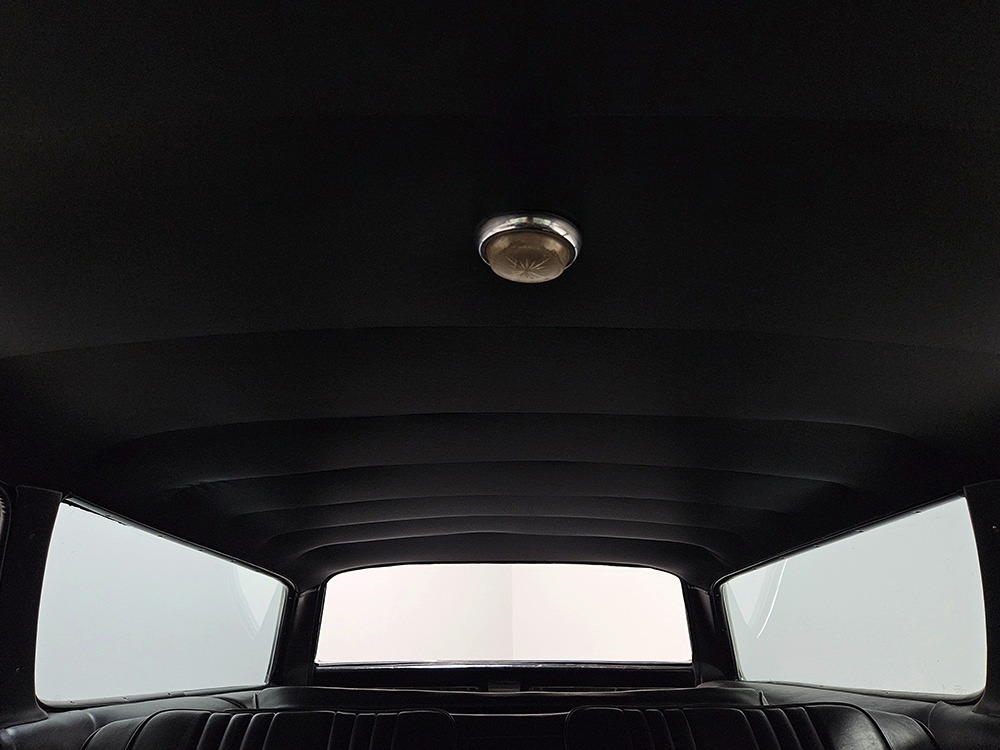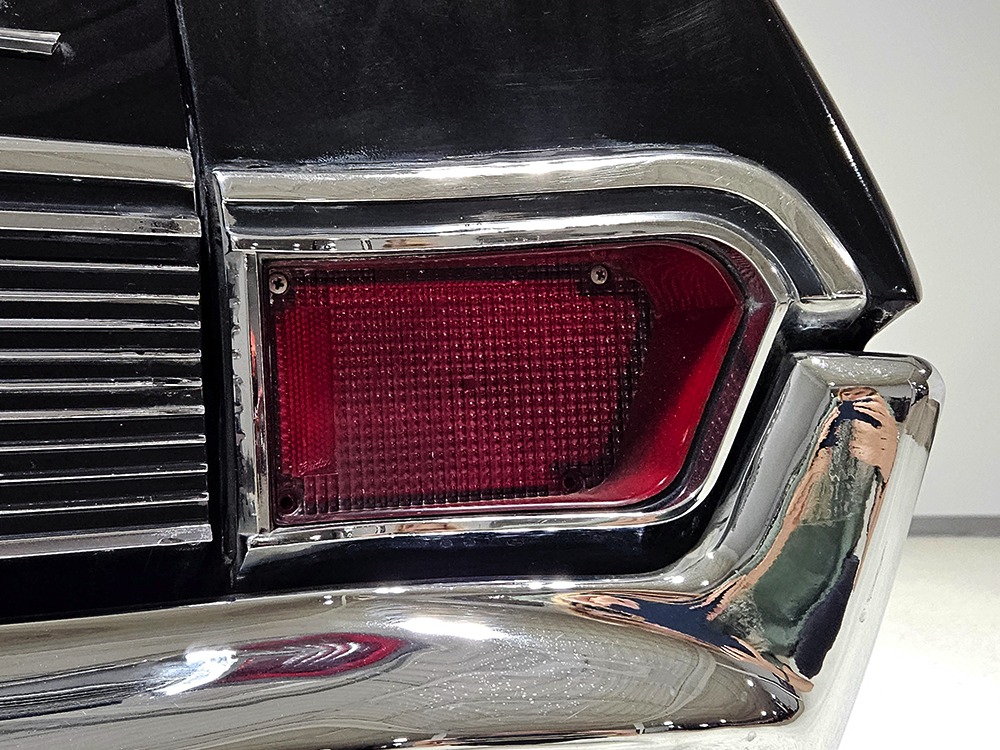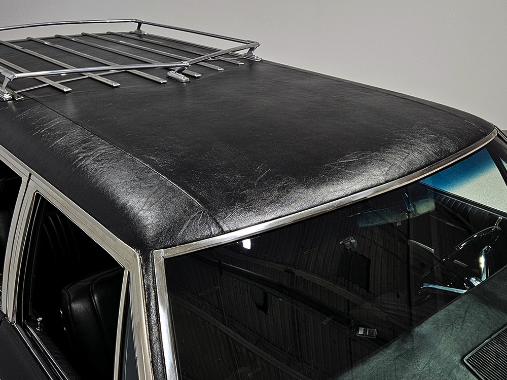 The beautiful black interior is more evidence of Pontiac’s high-style attitude. Three rows of bench seats make this a 9-passenger wagon, with the back seat facing rearward and able to stow itself under the cargo floor. Woodgrained appliques on the dash warm things up a bit, and if you’ve driven a GTO, sliding behind the wheel of this Bonneville might feel familiar. Everything works except the clock, and that means cold A/C and a working AM radio, although the sound of the 389 cubic inch V8 under the hood might be more entertaining. The seats, door panels, and carpets are in excellent condition with minimal wear, and thanks to lots of sound-deadening materials, it’s hushed inside on the highway. The massive headliner is also in fantastic condition with no rips, tears, or sagging, and all the glass is clear with no cracks or delamination. This is a really nice car!