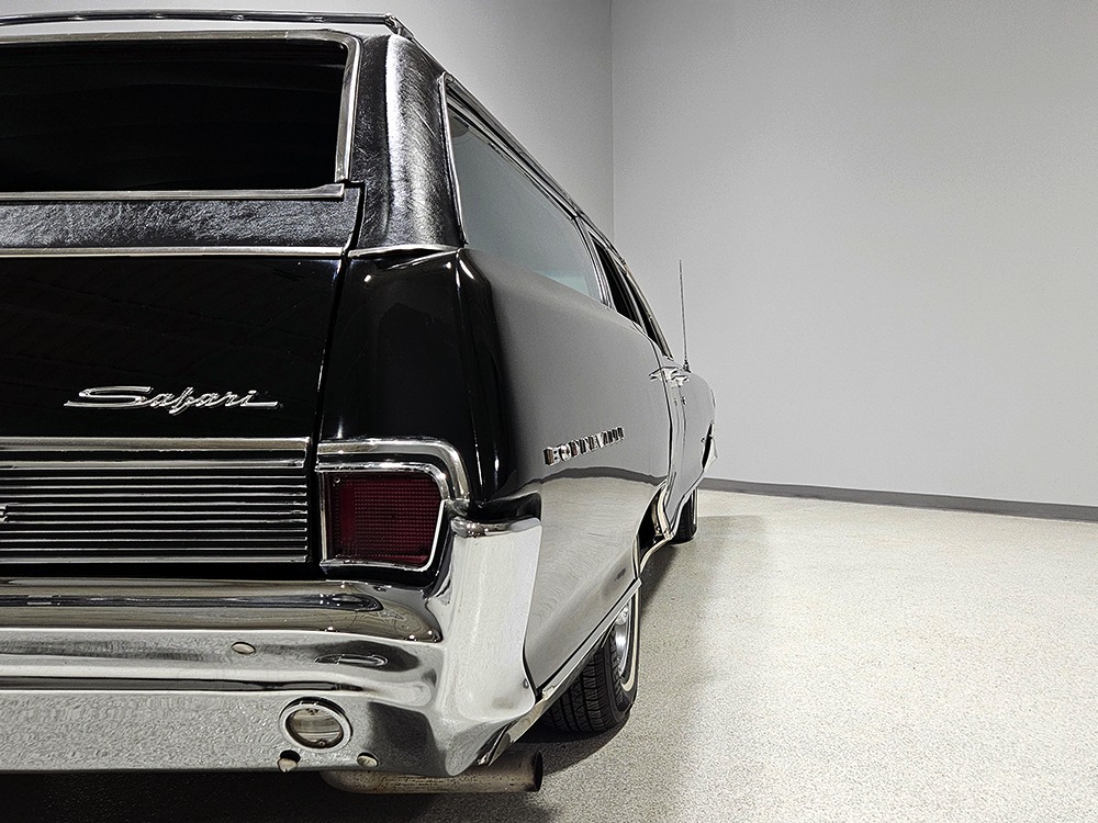 Pontiac was hitting on all eight cylinders in the mid-60s, balancing style, performance, and luxury in a way that other brands couldn’t quite match. If you were a young guy with some money, even if you could afford a Buick or Cadillac, you were shopping at the Pontiac store. This 1965 Pontiac Bonneville Safari wagon is a fantastic example of Pontiac getting everything right. Wagons were supposed to be utilitarian and basic, not stylish, fast, and comfortable like this awesome Safari. Borrowing styling from the rest of the Pontiac lineup, the Safari looks sleek and purposeful, starting with the stacked headlights that were a Pontiac trademark. Add in the sculpted bodywork, the bright rocker molding, and the sleek D-pillar design that makes it look like it’s in motion even when it’s standing still, and you get one of the best-looking wagons we’ve ever seen. The vinyl roof is correct for 1965 and was definitely on the options list, but I bet you’ve never seen it on a wagon before. Cool! The black respray is a few years old, but it was applied over some laser-straight bodywork with evidence that this was ever a rusty or damaged car. All four doors close with a solid THUNK and the tailgate and window work properly. Chrome and stainless trim (and there’s a lot of it!) remains in fantastic condition, glittering against the black bodywork. Even the fluted tail panel between the taillights is in excellent condition, and these were notorious for pitting. Add in the roof rack, and you get an upscale wagon that looks as at home at the theater as it does at the lumber yard.
