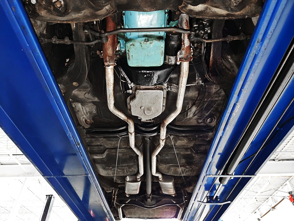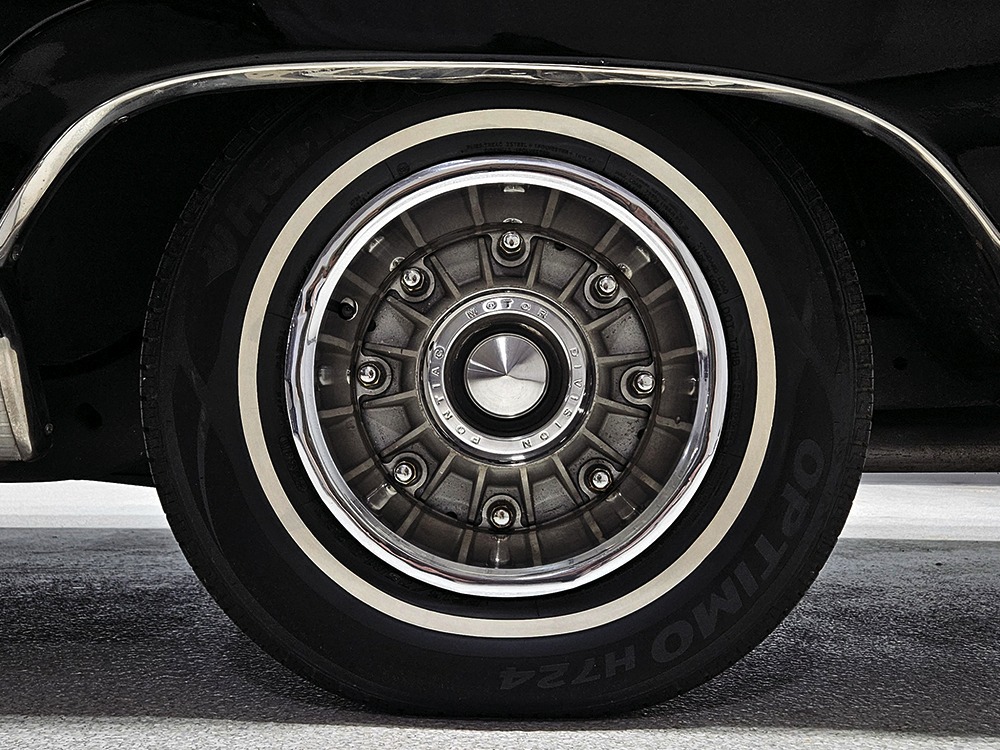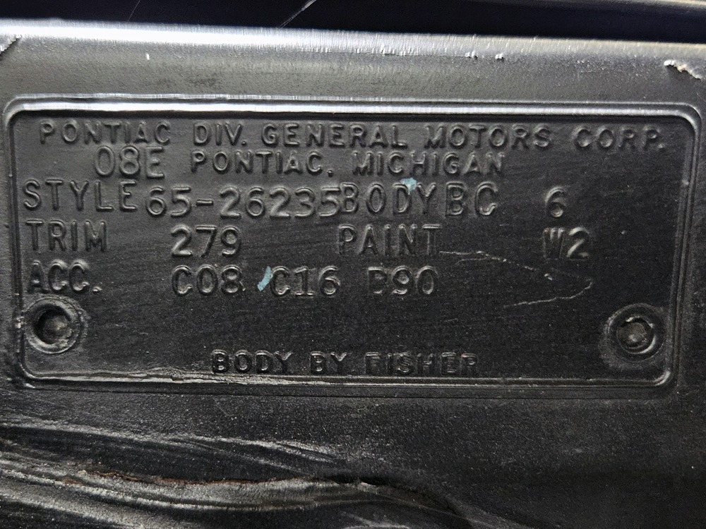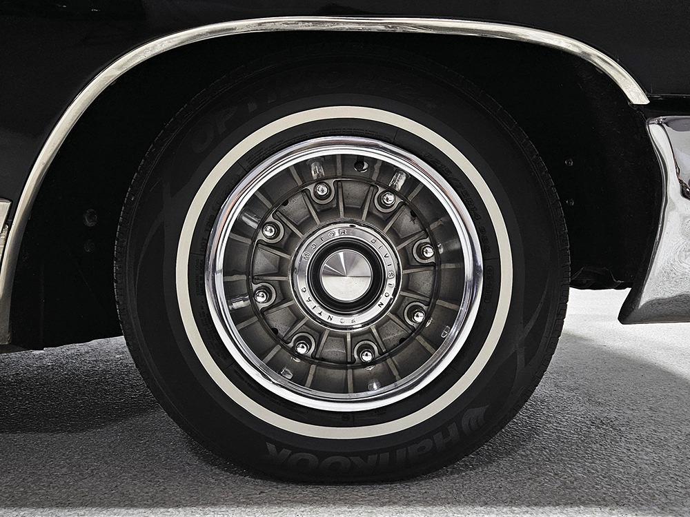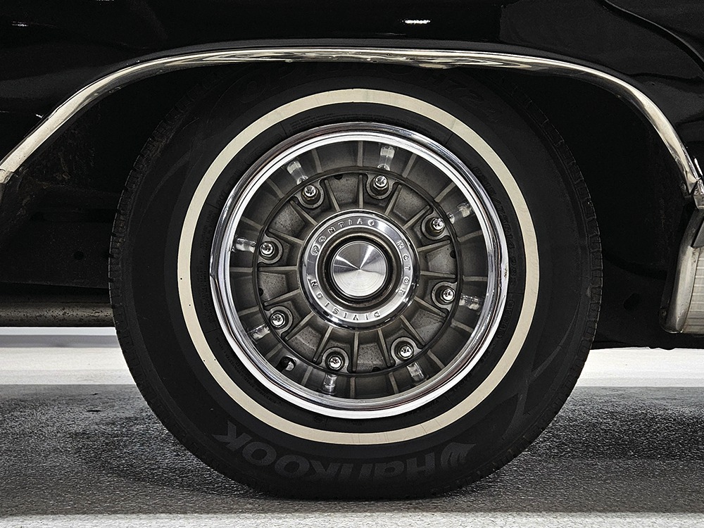 Under the pointed hood beats the heart of a GTO, a correct YF-coded 389 cubic inch V8 with a 4-barrel carburetor and 325 horsepower (matching numbers isn’t possible to determine on a 1965 Pontiac, but we believe this is the car’s original engine). It remains completely stock and acts like it should: easy starts, a nice idle, and plenty of torque to move the big wagon effortlessly. It’s correctly detailed in corporate blue engine enamel, that big air cleaner with reproduction decals, and lots of recent parts like a new alternator and master cylinder. There’s a muscular idle from the dual exhaust, which features stainless Magnaflow mufflers, but on the road it quiets down and remains one of the best road trip vehicles you can own. 1965 was the first year for the TH400 3-speed automatic transmission, perhaps the best automatic ever created, and it shifts crisply with no hesitation or slippage, and feeds a set of 3.42 gears in the 10-bolt rear end, so it’s quick off the line but not too busy on the highway. The body has never been off the frame, but you can see that it wasn’t necessary—the floors and rockers are solid, there’s no evidence of patching or other questionable repairs, and it’s been protected for decades by a light dusting of undercoating to keep it sealed up. Recent work includes suspension components, including new springs and air shocks in the back, plus the aforementioned dual exhaust system. Brakes are massive aluminum drums in front, which are quite effective, so forget all those notions that you “need” disc brakes. Plus they come with those awesome Pontiac 8-lug wheels, which carry recent 215/75/14 whitewall radials for exactly the right ‘60s look.