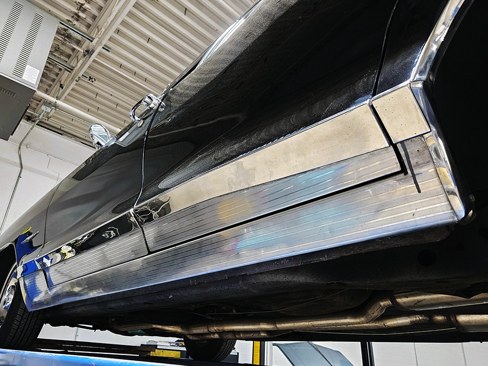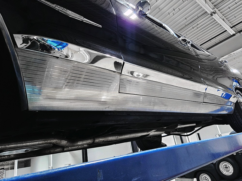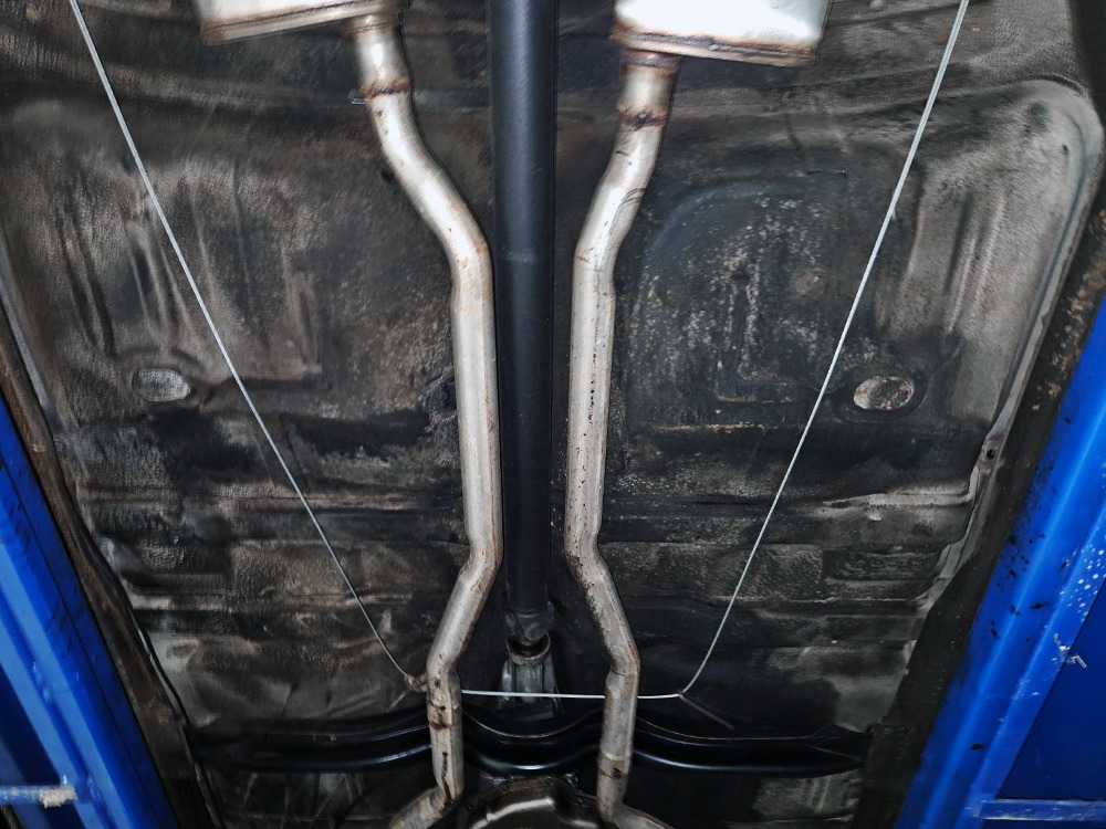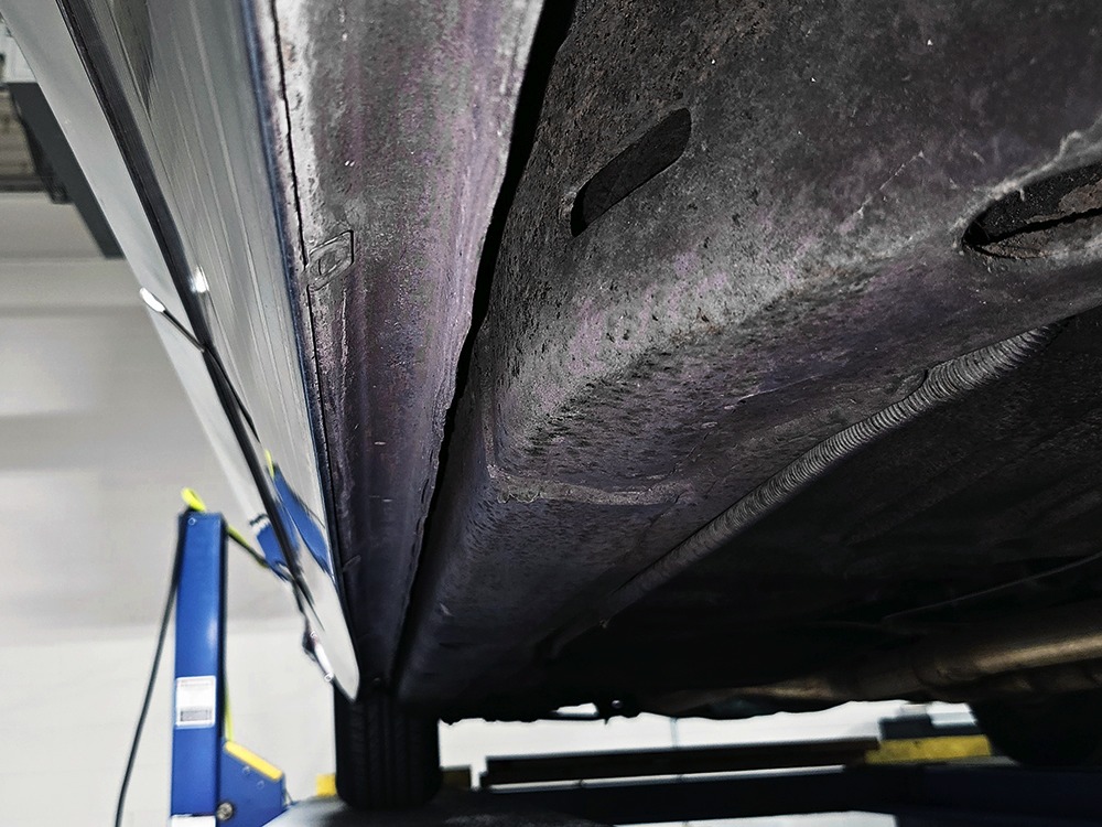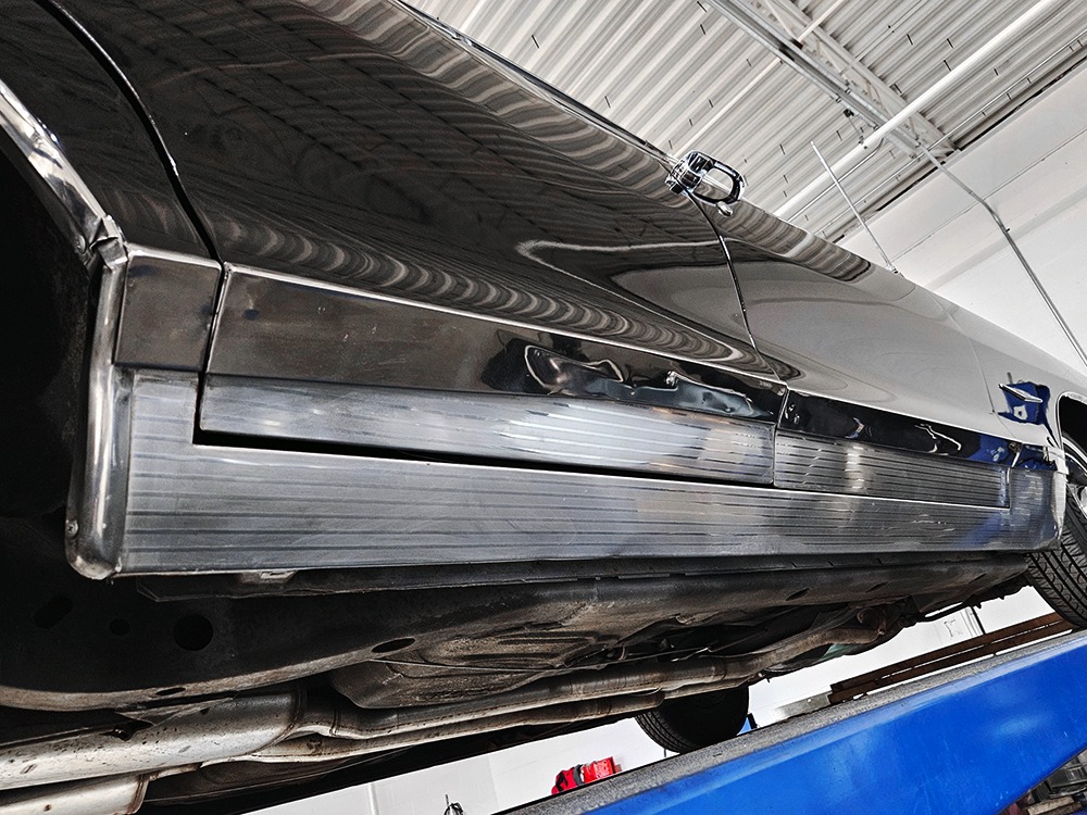 Under the pointed hood beats the heart of a GTO, a correct YF-coded 389 cubic inch V8 with a 4-barrel carburetor and 325 horsepower (matching numbers isn’t possible to determine on a 1965 Pontiac, but we believe this is the car’s original engine). It remains completely stock and acts like it should: easy starts, a nice idle, and plenty of torque to move the big wagon effortlessly. It’s correctly detailed in corporate blue engine enamel, that big air cleaner with reproduction decals, and lots of recent parts like a new alternator and master cylinder. There’s a muscular idle from the dual exhaust, which features stainless Magnaflow mufflers, but on the road it quiets down and remains one of the best road trip vehicles you can own. 1965 was the first year for the TH400 3-speed automatic transmission, perhaps the best automatic ever created, and it shifts crisply with no hesitation or slippage, and feeds a set of 3.42 gears in the 10-bolt rear end, so it’s quick off the line but not too busy on the highway. The body has never been off the frame, but you can see that it wasn’t necessary—the floors and rockers are solid, there’s no evidence of patching or other questionable repairs, and it’s been protected for decades by a light dusting of undercoating to keep it sealed up. Recent work includes suspension components, including new springs and air shocks in the back, plus the aforementioned dual exhaust system. Brakes are massive aluminum drums in front, which are quite effective, so forget all those notions that you “need” disc brakes. Plus they come with those awesome Pontiac 8-lug wheels, which carry recent 215/75/14 whitewall radials for exactly the right ‘60s look.