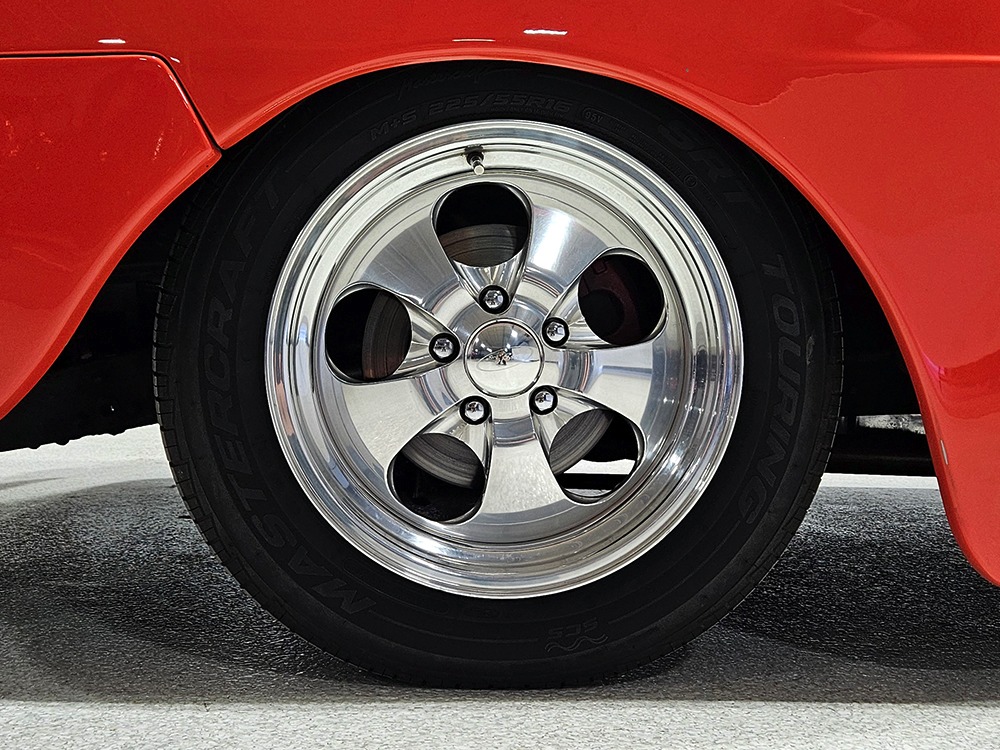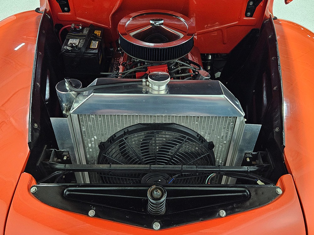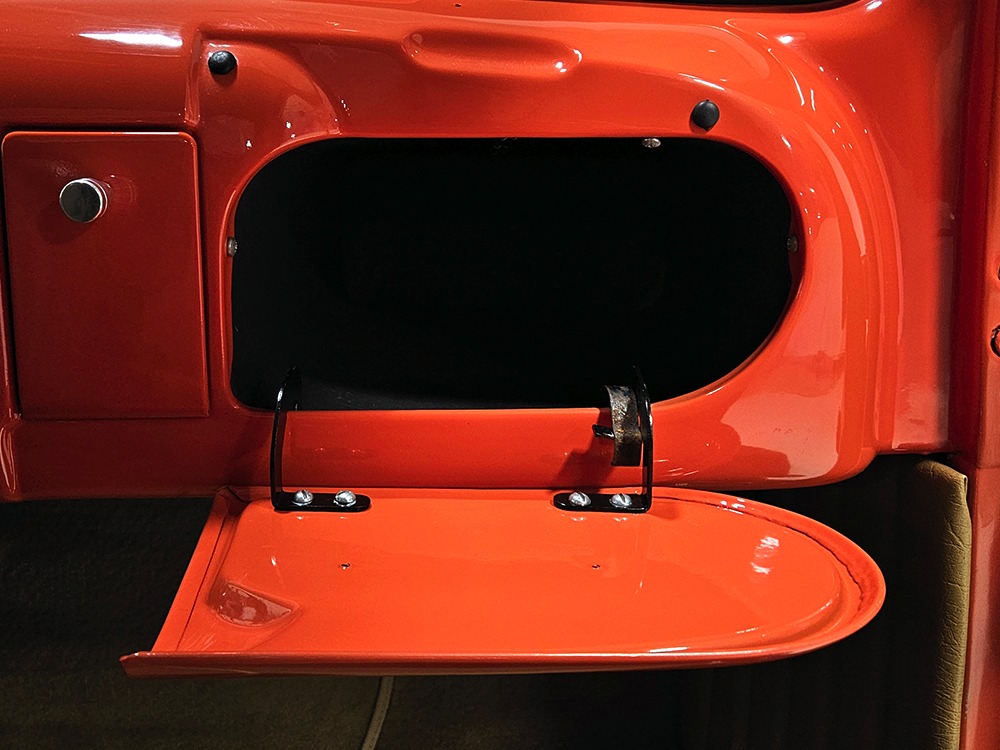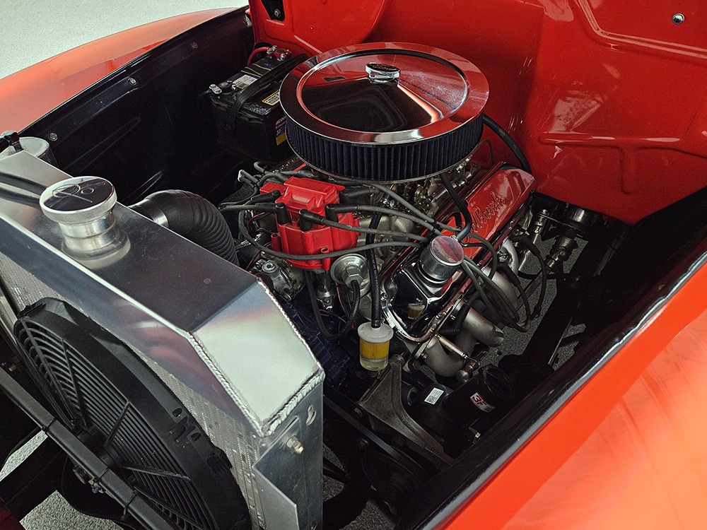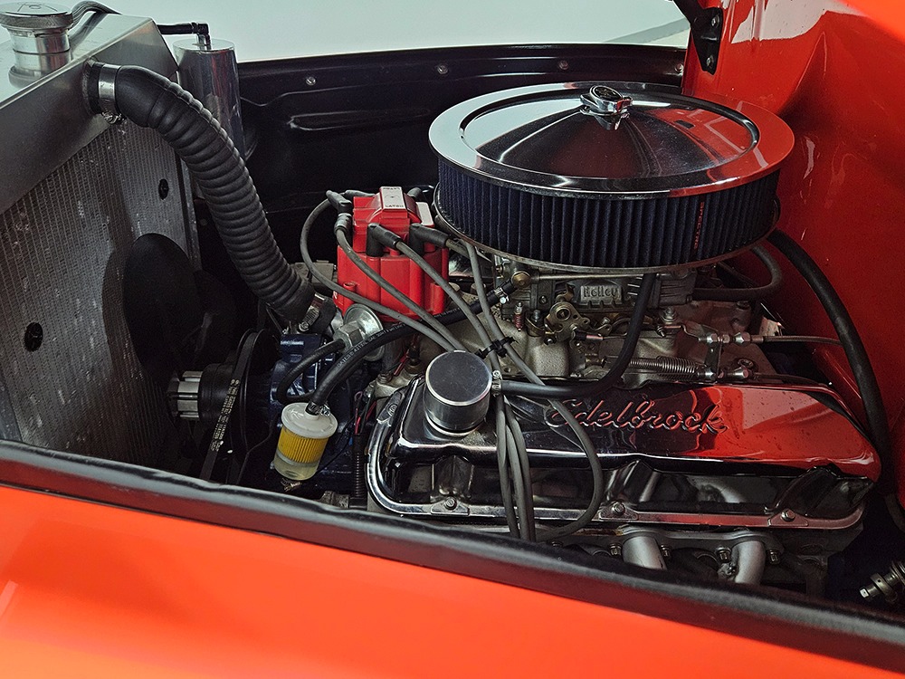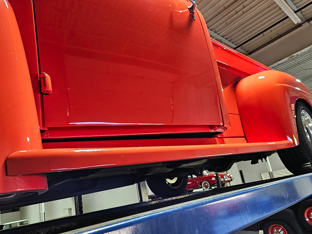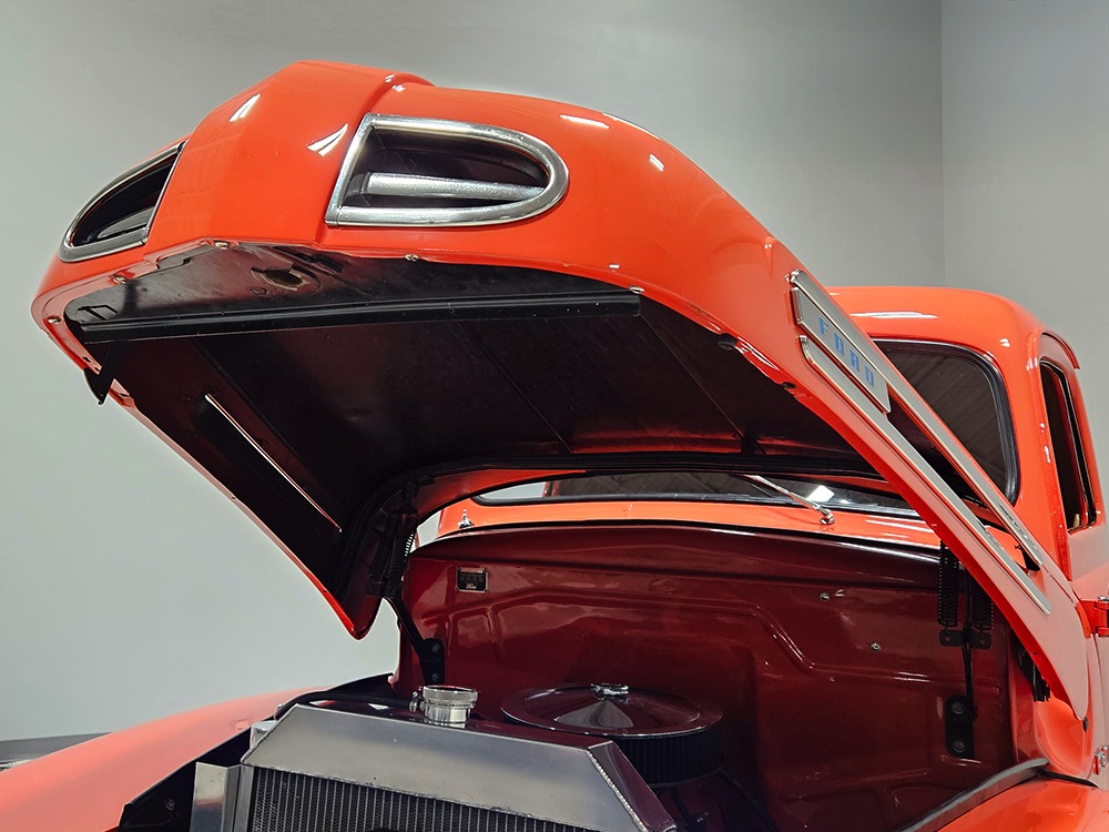 For reasons we don’t quite understand, Ford pickups of this era seem to lag behind their Chevy counterparts in terms of value. That’s good news for you, however, because this slick 1949 Ford F-1 pickup offers a lot of truck for the money. Nicely finished in what Ford fans might call Calypso Coral and GM guys could call Hugger Orange, it’s definitely not subtle. But the build itself doesn’t go over-the-top, resulting in a super clean truck that looks right, works right, and feels right. The cab, hood, and bed are steel, while the fenders are fiberglass, but you can’t tell without rapping your knuckles against it and the paint is really nicely done. There’s a deep gloss, great panel alignment, and someone clearly spent lots of time in the block sanding phase to get it as straight and wave-free as it is. Everything just fits together like it should and the doors close without the need for a hard slam. That’s not always easy to do. The chrome details look like new, including the grille, simple bumpers, and all the Ford stainless trim that really makes the truck sparkle. The bed itself is lined with freshly varnished oak planks, and you’ll note the gas filler cap is built into the bed floor. We especially like that they didn’t over-dress it with graphics or pinstripes that would make it look dated, so this cool little pickup will look awesome for years to come.