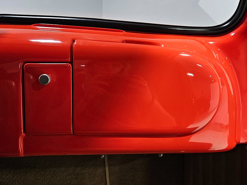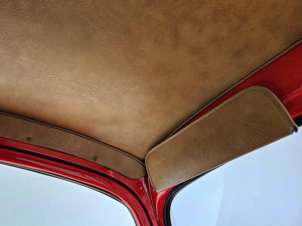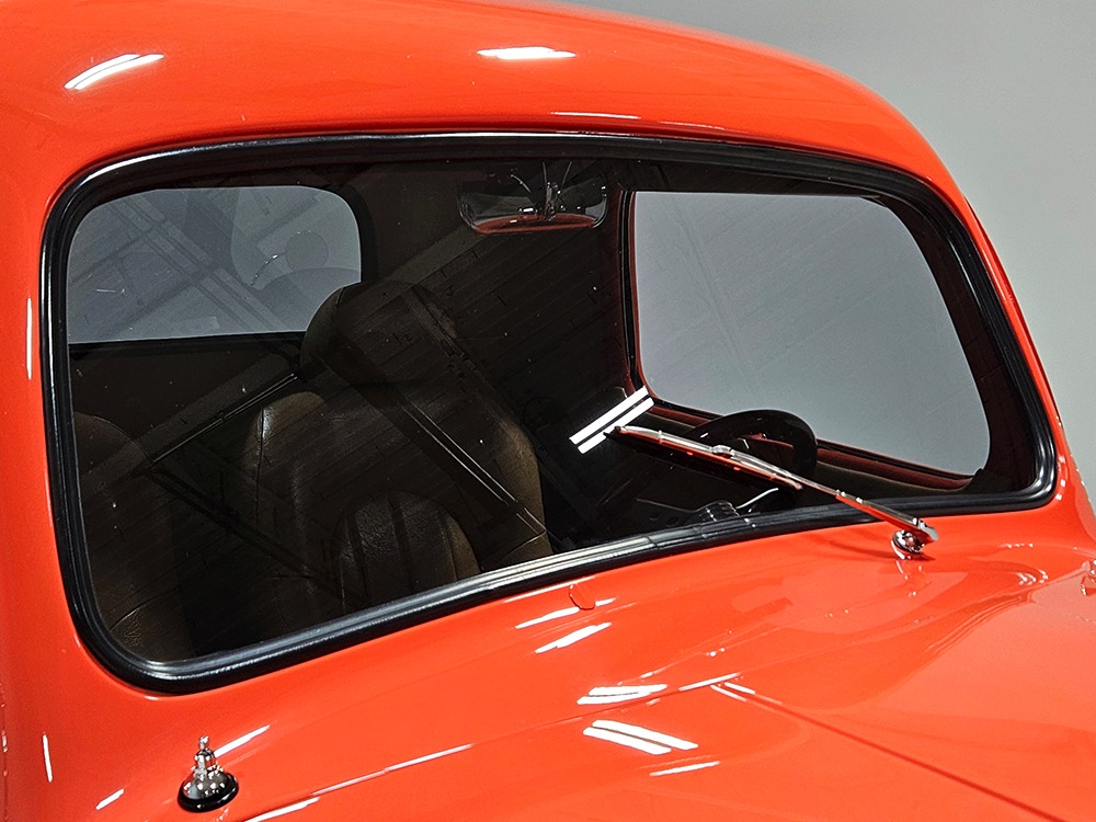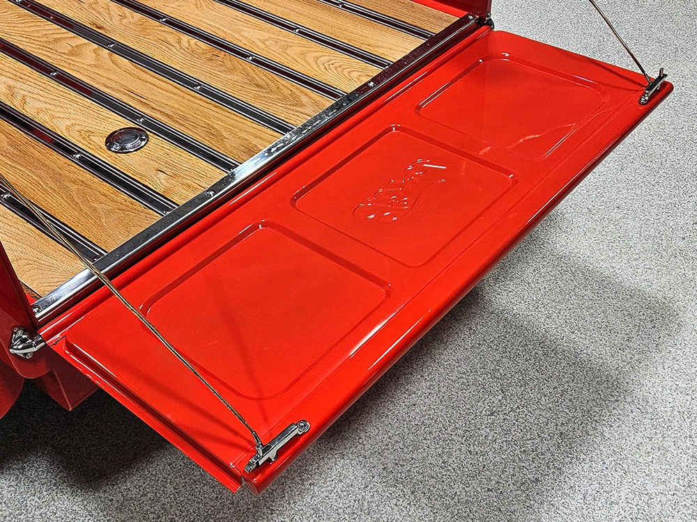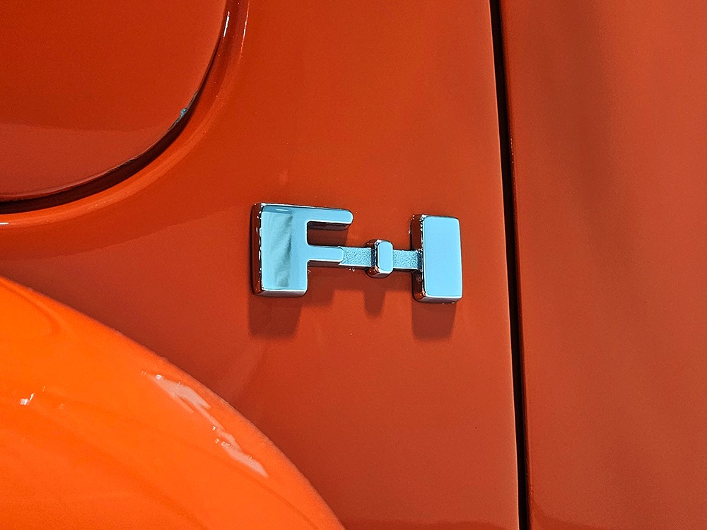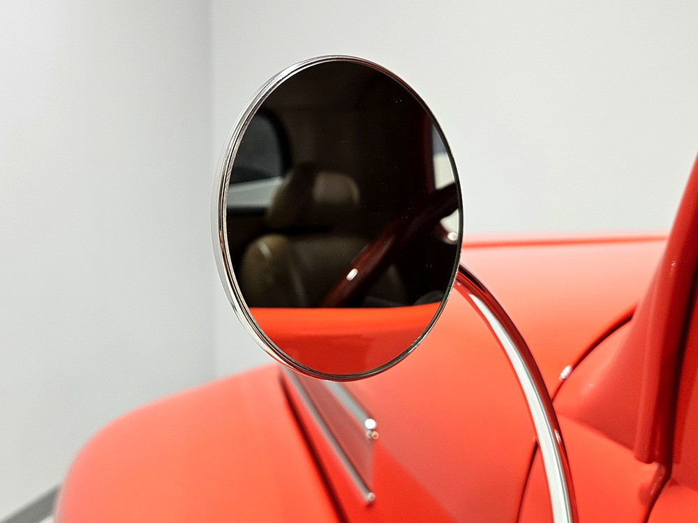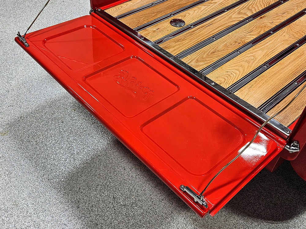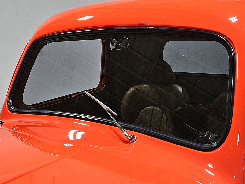 For reasons we don’t quite understand, Ford pickups of this era seem to lag behind their Chevy counterparts in terms of value. That’s good news for you, however, because this slick 1949 Ford F-1 pickup offers a lot of truck for the money. Nicely finished in what Ford fans might call Calypso Coral and GM guys could call Hugger Orange, it’s definitely not subtle. But the build itself doesn’t go over-the-top, resulting in a super clean truck that looks right, works right, and feels right. The cab, hood, and bed are steel, while the fenders are fiberglass, but you can’t tell without rapping your knuckles against it and the paint is really nicely done. There’s a deep gloss, great panel alignment, and someone clearly spent lots of time in the block sanding phase to get it as straight and wave-free as it is. Everything just fits together like it should and the doors close without the need for a hard slam. That’s not always easy to do. The chrome details look like new, including the grille, simple bumpers, and all the Ford stainless trim that really makes the truck sparkle. The bed itself is lined with freshly varnished oak planks, and you’ll note the gas filler cap is built into the bed floor. We especially like that they didn’t over-dress it with graphics or pinstripes that would make it look dated, so this cool little pickup will look awesome for years to come.