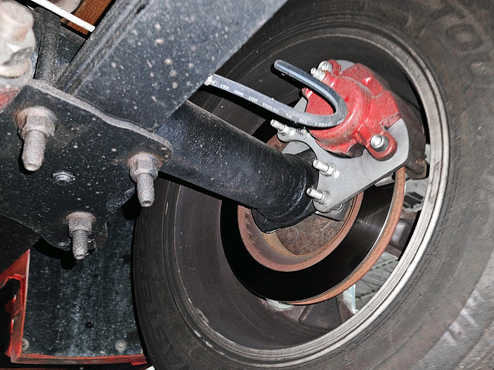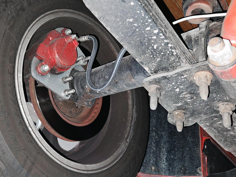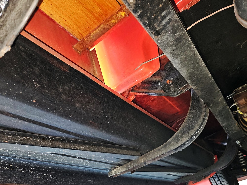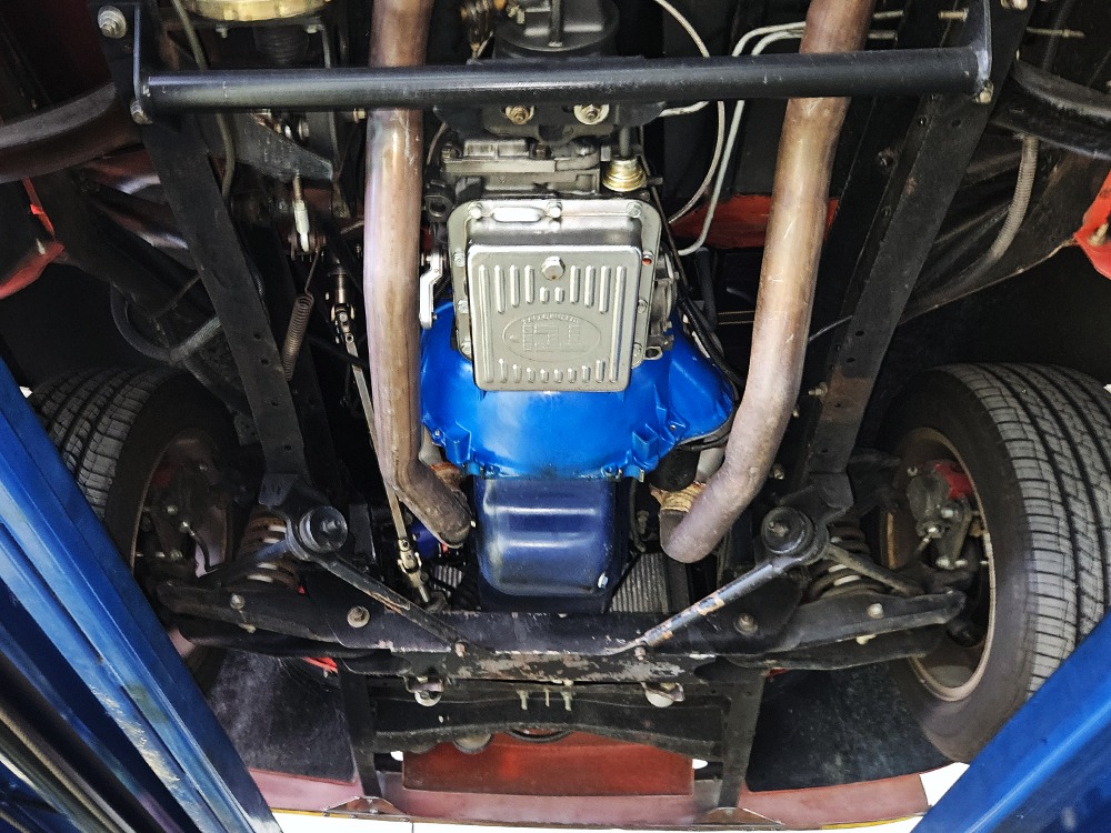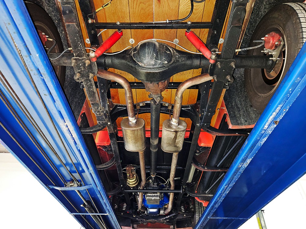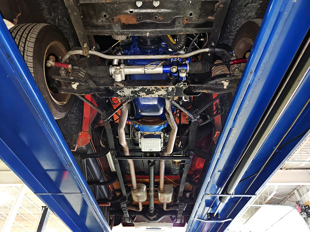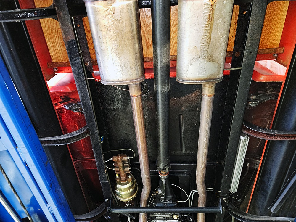 The engine is a 302 cubic inch Ford V8, a refreshing change in a sea of Chevy-powered street rods. The 302 is torquey and reliable, making the right sounds for a truck with an attitude. It’s not complicated, featuring a 4-barrel carburetor, HEI-style ignition, long-tube headers, and a mild cam that gives it a cool idle but never gets fussy. There’s a massive aluminum radiator in front, backed by an auxiliary electric fan, and power steering and 4-wheel disc brakes are part of the package. The front suspension is a Mustang II setup with power rack-and-pinion steering, the dual exhaust system has mellow-sounding Magnaflow mufflers, and the C4 3-speed automatic clips through the gears without any fuss. We believe there are 3.00 gears in the rear end, which is a 9-inch Ford, and the truck is indeed a fantastic highway cruiser that’s a veteran of several long-distance road trips. Again, simple is better, and with leaf springs and tube shocks out back, ride quality is decent and the stance is exactly right. There’s a big stainless gas tank hanging in back and it sits on 16-inch Eagle alloys carrying 225/55/16 performance radials with lots of life left in them.