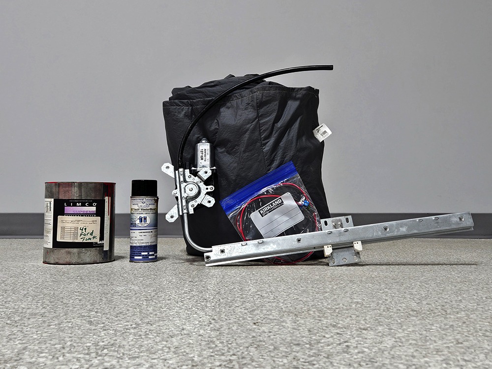 Extras include a full-sized spare tire with matching cover, some touch-up paint, a car cover, a spare power window regulator, and a wiring harness manual.