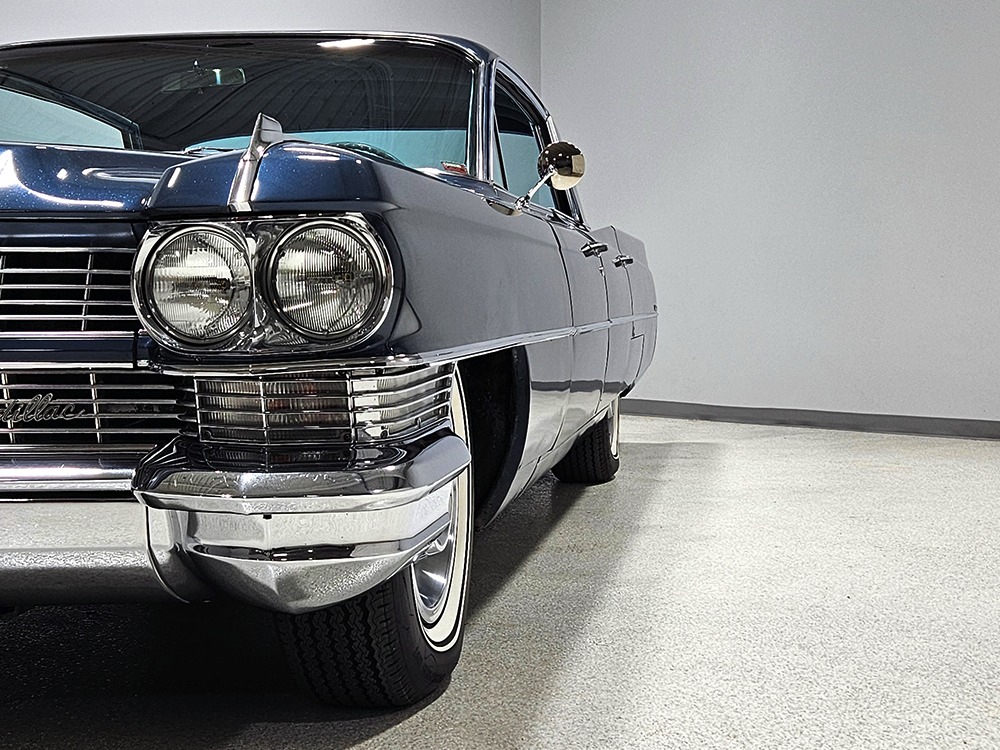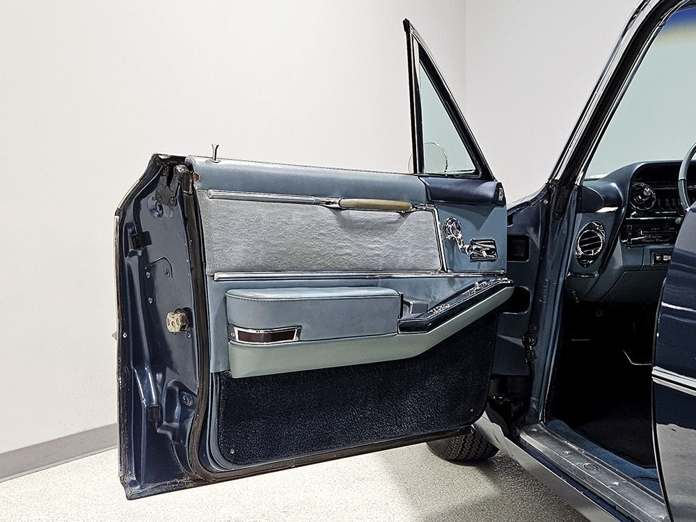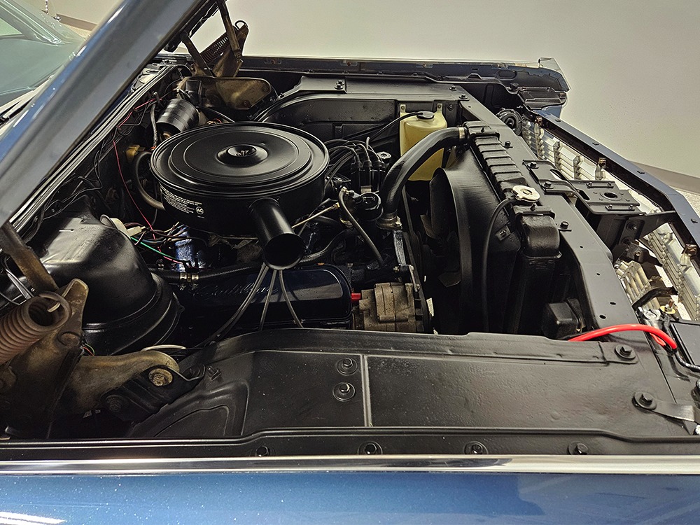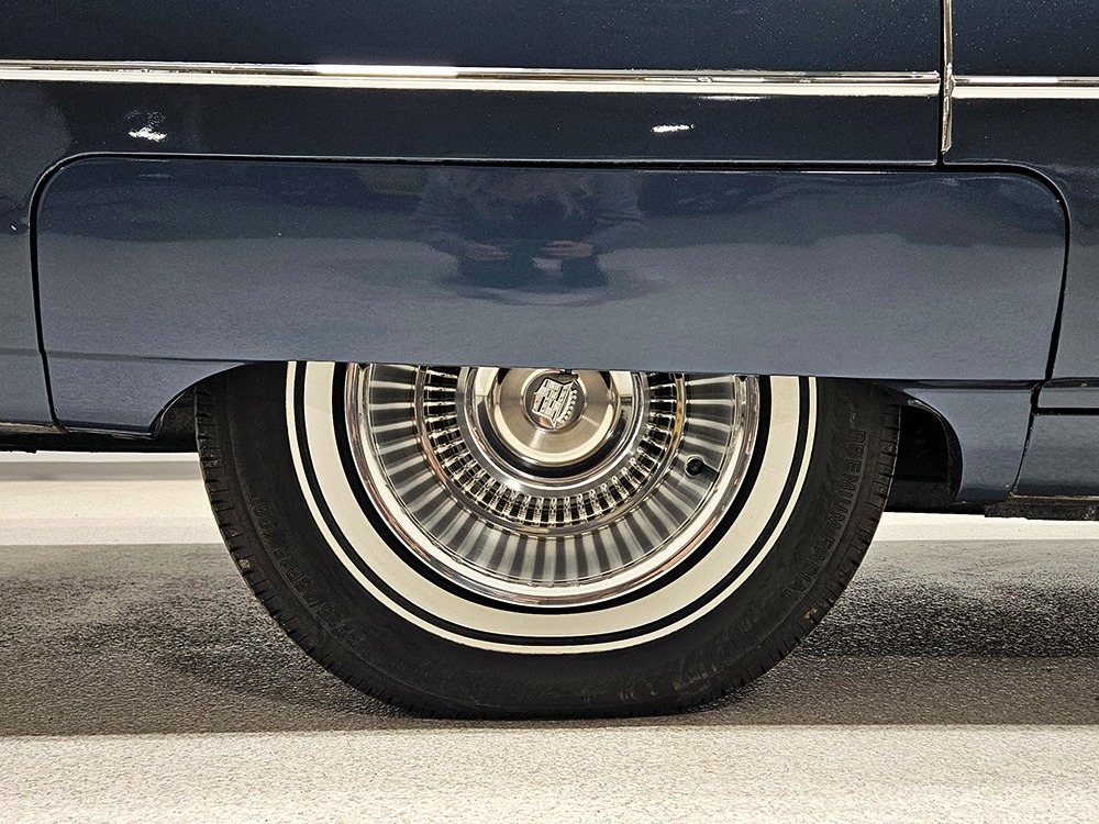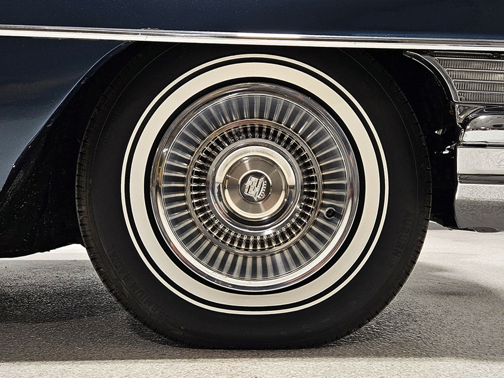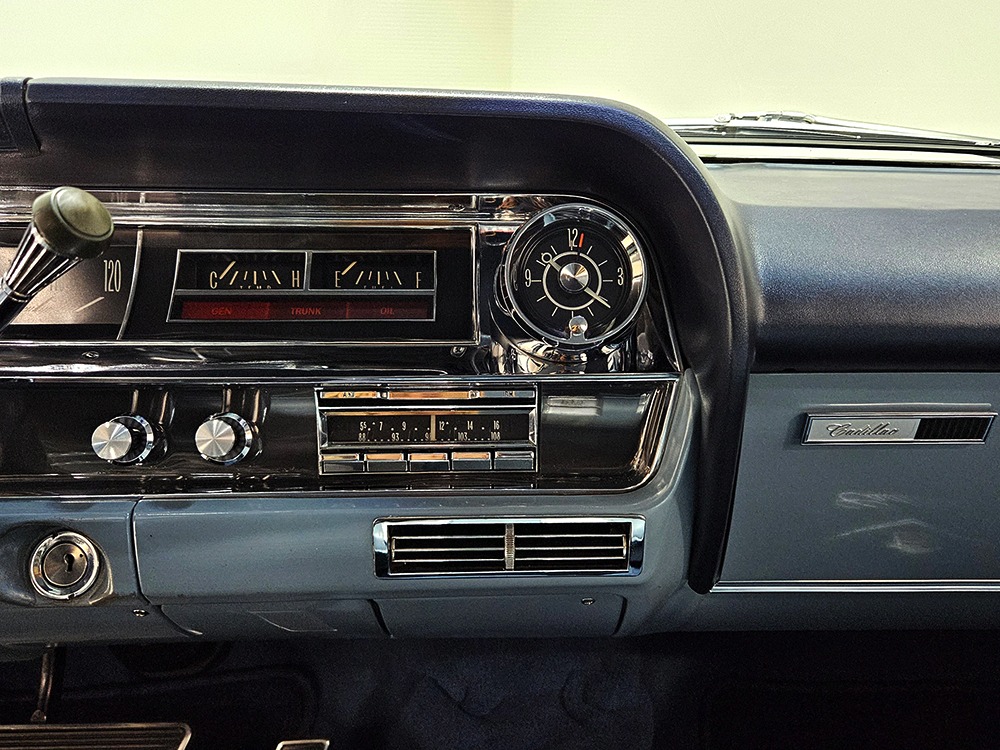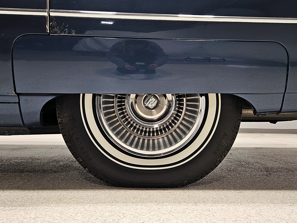 For 1964, the Cadillac’s engine was enlarged to 429 cubic inches and made a stout 340 horsepower and 480 ft-lbs. of torque—enough to make even the biggest sedans feel light on their feet. This one has been recently serviced, including a complete valve job on the heads, and runs nicely. There’s big engine torque available at any RPM, and it cruises easily at modern highway speeds. It’s easy to start and once it warms up, it’s happy to cruise as fast or as slow as you’d like. The engine bay is nicely detailed with Cadillac Blue engine enamel on the block and tinwork, that big air cleaner up top, and lots of new equipment, including belts and hoses, a full tune-up, a dual reservoir master cylinder, and more. Also new for 1964 with the TH400 3-speed automatic, which is arguably the best automatic transmission ever created. It’s the perfect complement to the Deville’s muscular 429 and always seems to find the right gear for effortless motoring. 2.94 gears in the rear end certainly help with the Cadillac’s low-key demeanor, and if you want a car for road trips, there aren’t many better than this. The undercarriage is original but solid—no rot in the floors or rockers, but there is surface scale on the heavy metal parts. There’s a brand new exhaust system that gives it an appropriately hushed tone, new shocks at all four corners, and some new brake components for the power 4-wheel drums. Factory wheels and hubcaps provide just the right look and it carries an expensive set of new 235/75/15 Diamondback Auburn radials with the correct twin stripe whitewalls.